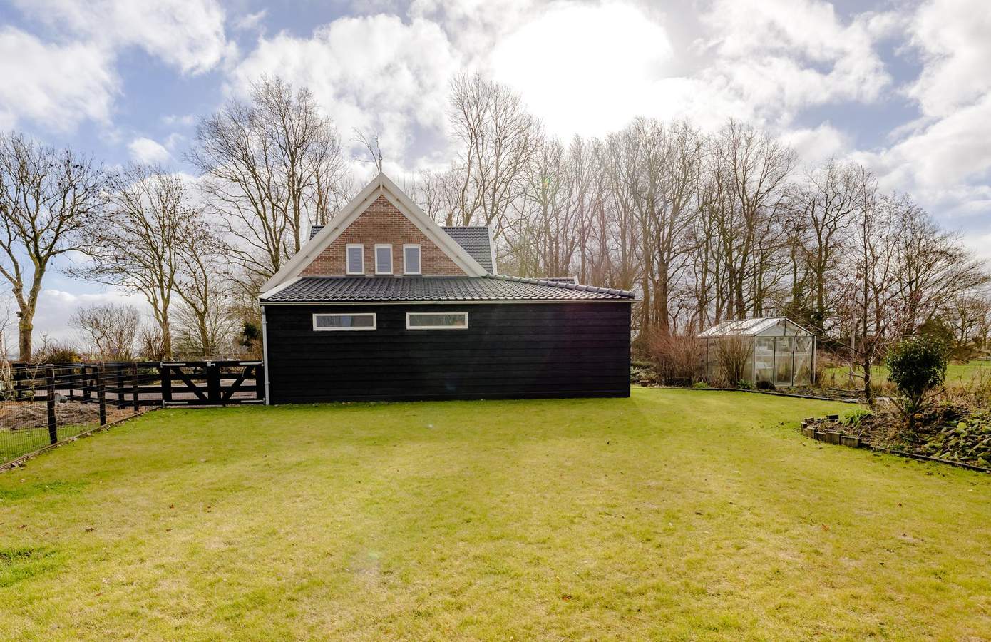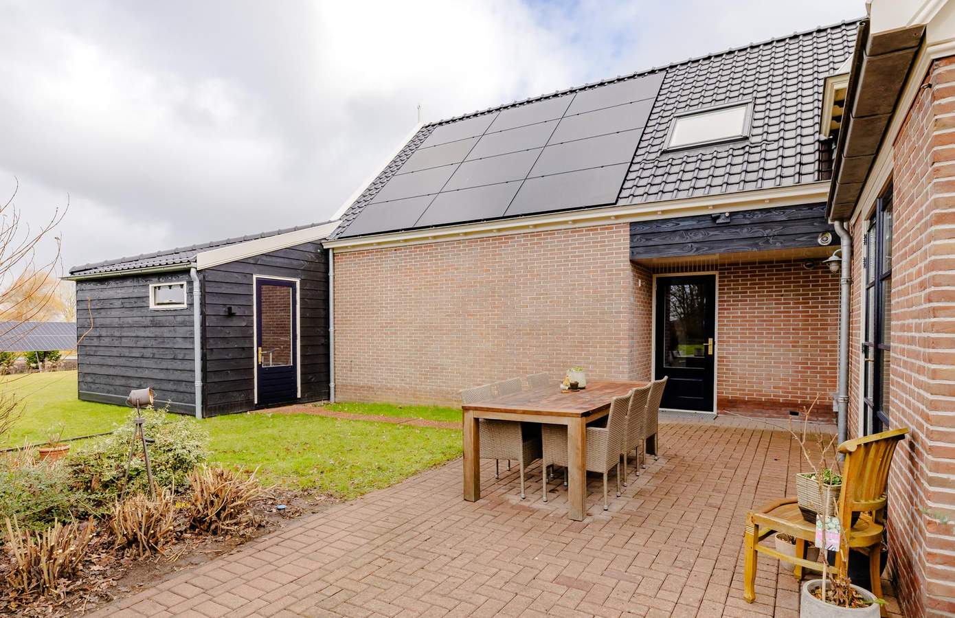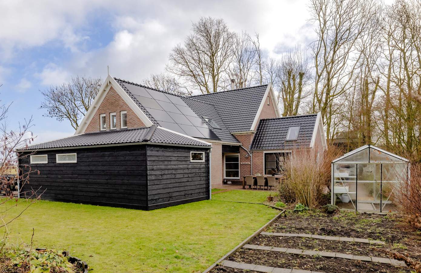 Rondom de woning ligt een verzorgde tuin die privacy en vrijheid biedt. Het royale terras sluit direct aan op de leefruimte en vormt een vanzelfsprekend verlengstuk van het huis. Hier kijkt u uit over het groen. De brede oprit biedt plaats aan meerdere auto’s en onderstreept de royale opzet van het perceel. In de tuin vindt u daarnaast een kas, een kippenhok en een volledig geïsoleerd tuinhuis met elektra. Er is ruimte voor een moestuin, speelplek of ontspanning. Het schilderwerk is recent uitgevoerd (2025), waardoor het geheel een verzorgde en solide uitstraling heeft. De zonnepanelen dragen zichtbaar bij aan het duurzame karakter van de woning, terwijl het vrije uitzicht de ware luxe vormt.