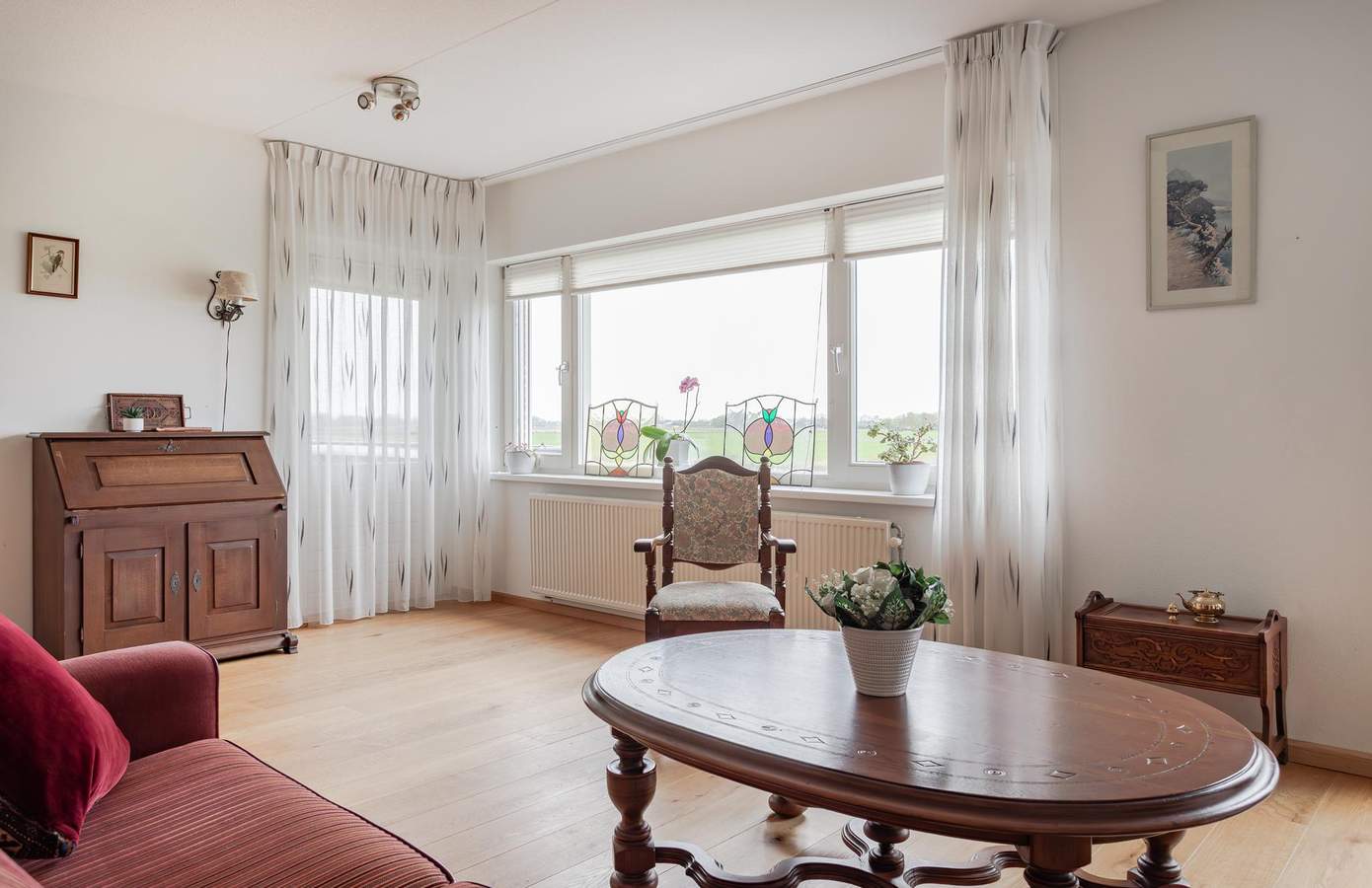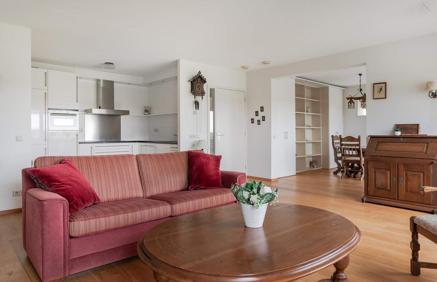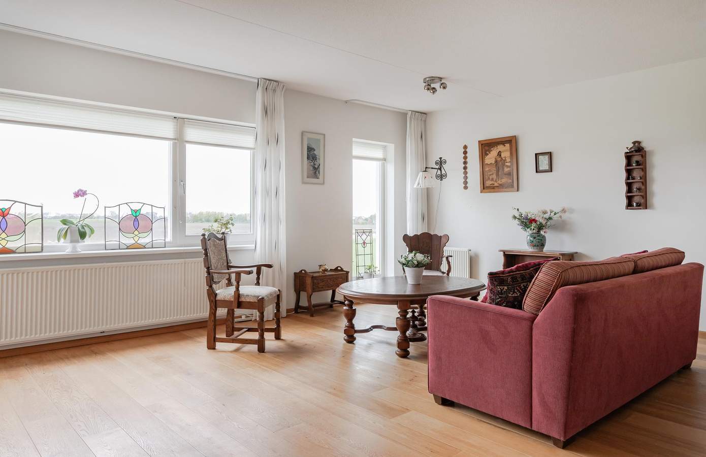 Dit ruime appartement van 107 m² is gelegen op de tweede verdieping. De woonkamer is voorzien van grote raampartijen, waardoor er veel natuurlijk daglicht binnenvalt. Via openslaande deuren vanuit de woonkamer én een schuifpui vanuit de eetkamer bereikt u het zonnige balkon, gelegen op het westen. Hier kunt u in alle rust genieten van het weidse uitzicht en de prachtige zonsondergangen. Het appartement beschikt over twee ruime slaapkamers, beide voorzien van praktische rolluiken. Daarnaast zijn er een nette badkamer, een separaat toilet, een royale inbouwkast op de overloop en een handige berging met ruimte voor opslag en de cv-opstelling.