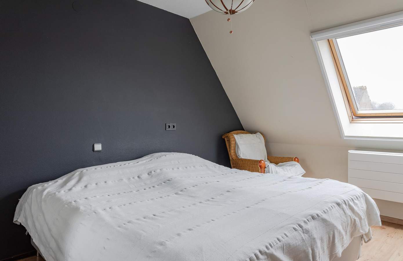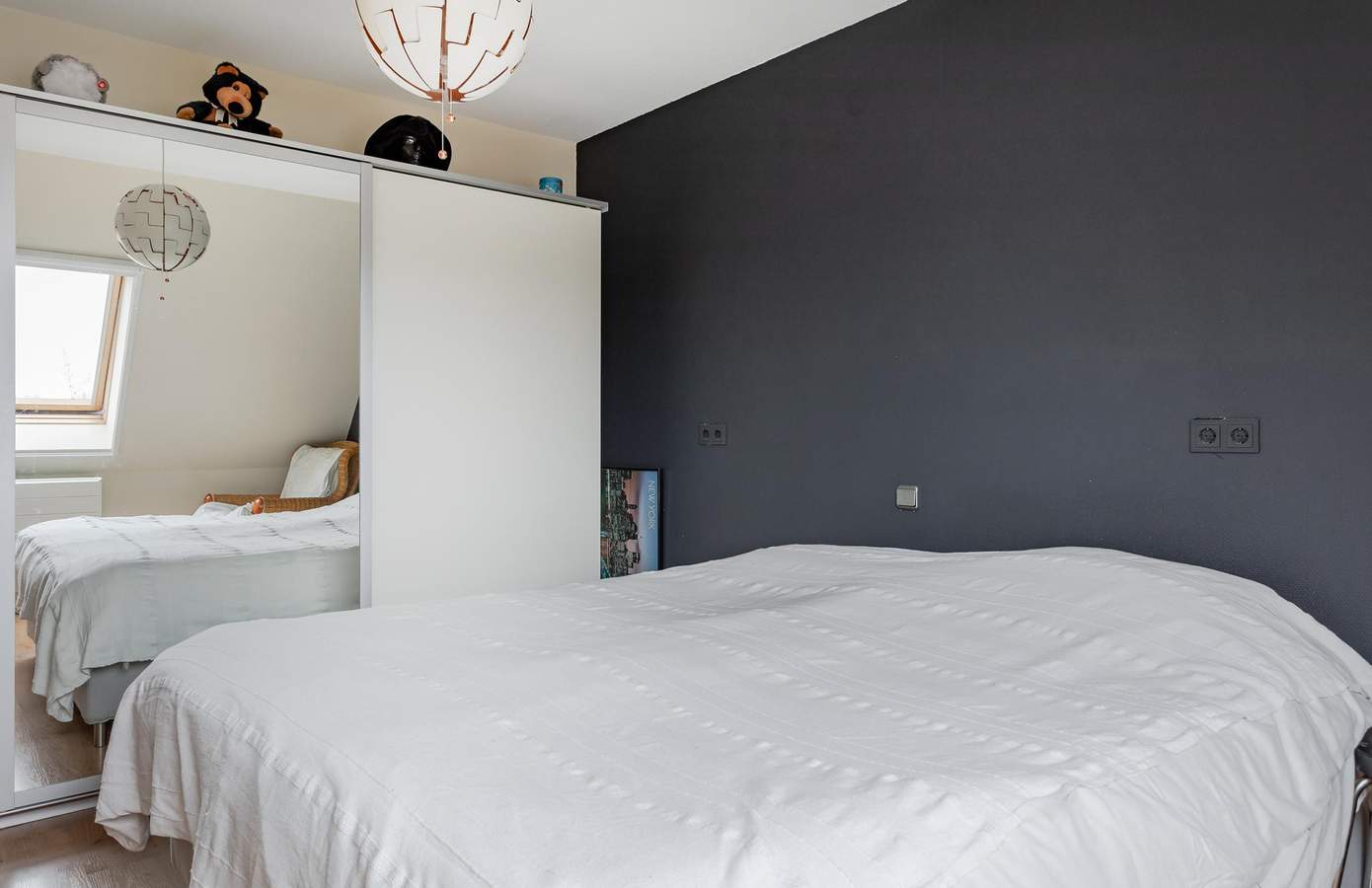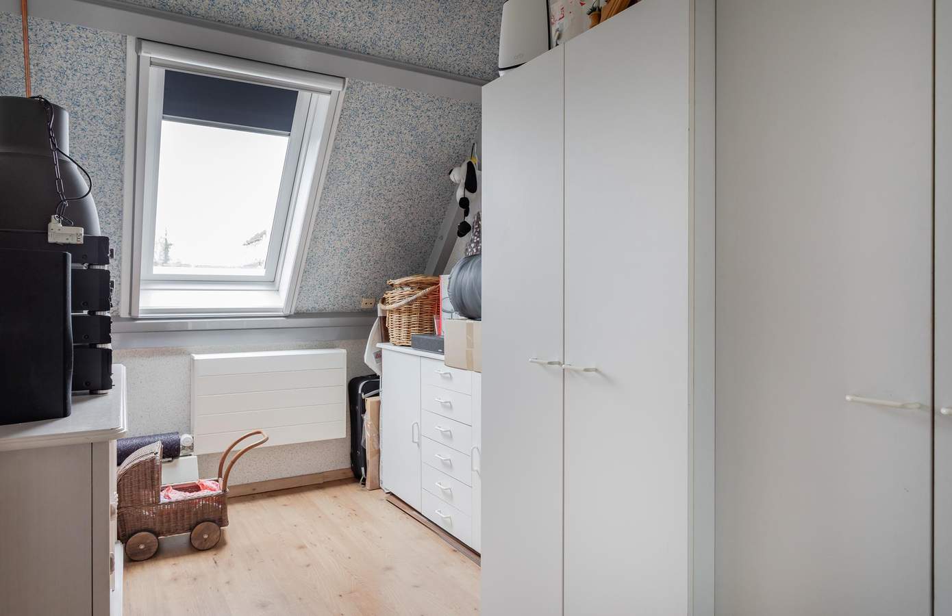 Achter de voordeur van deze gezinswoning schuilt een ruime woonkamer met vloerverwarming, een open keuken, een bijkeuken met de witgoedopstelling en de inpandig bereikbare garage. In de garage staat de technische installatie. Daarnaast is hier ook nog veel bergruimte. Op de eerste verdieping zijn drie slaapkamers en de badkamer. Alle slaapkamers hebben Velux dakramen met zowel verduistering als een horren. Een vaste trap brengt u naar de tweede verdieping waar u naast de voorzolder de vierde slaapkamer vindt. Deze kamer heeft als enorm pluspunt dat aan zowel de voor- als achterzijde een grote dakkapel is.