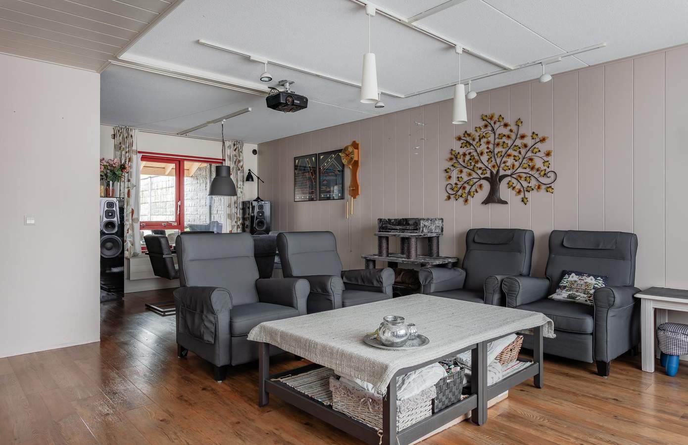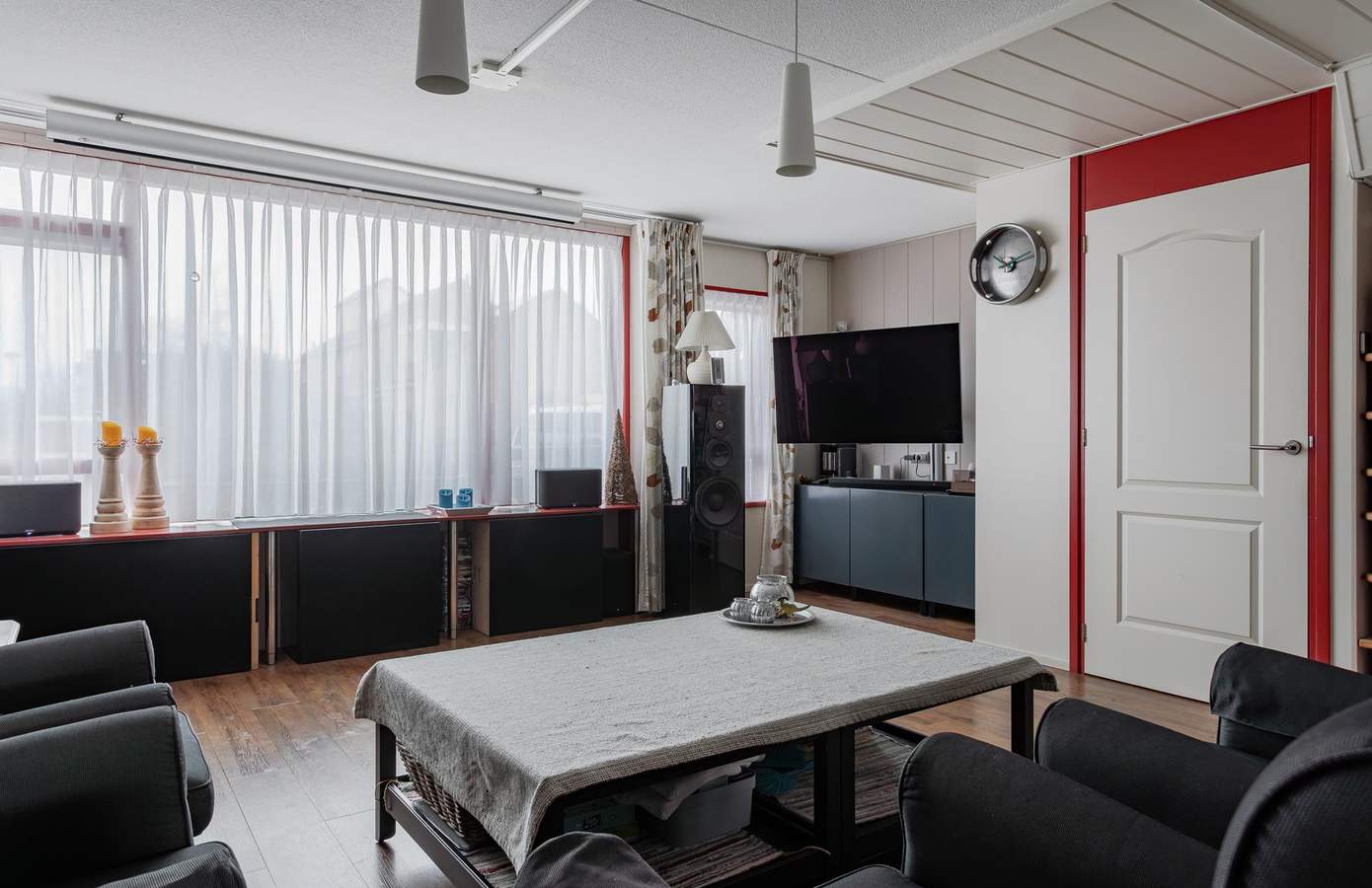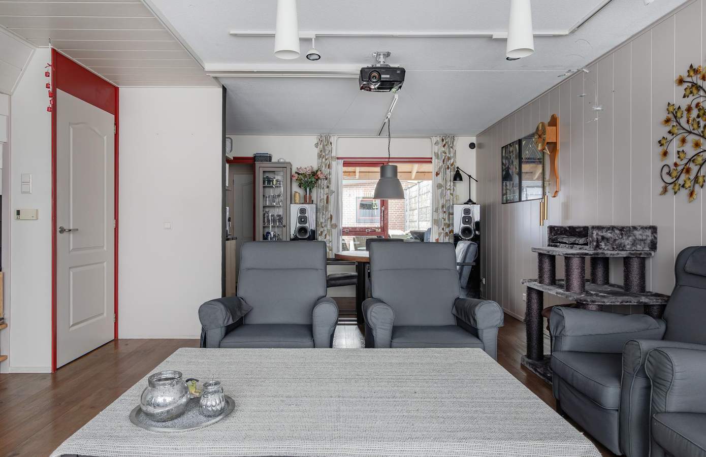 Achter de voordeur van deze gezinswoning schuilt een ruime woonkamer met vloerverwarming, een open keuken, een bijkeuken met de witgoedopstelling en de inpandig bereikbare garage. In de garage staat de technische installatie. Daarnaast is hier ook nog veel bergruimte. Op de eerste verdieping zijn drie slaapkamers en de badkamer. Alle slaapkamers hebben Velux dakramen met zowel verduistering als een horren. Een vaste trap brengt u naar de tweede verdieping waar u naast de voorzolder de vierde slaapkamer vindt. Deze kamer heeft als enorm pluspunt dat aan zowel de voor- als achterzijde een grote dakkapel is.