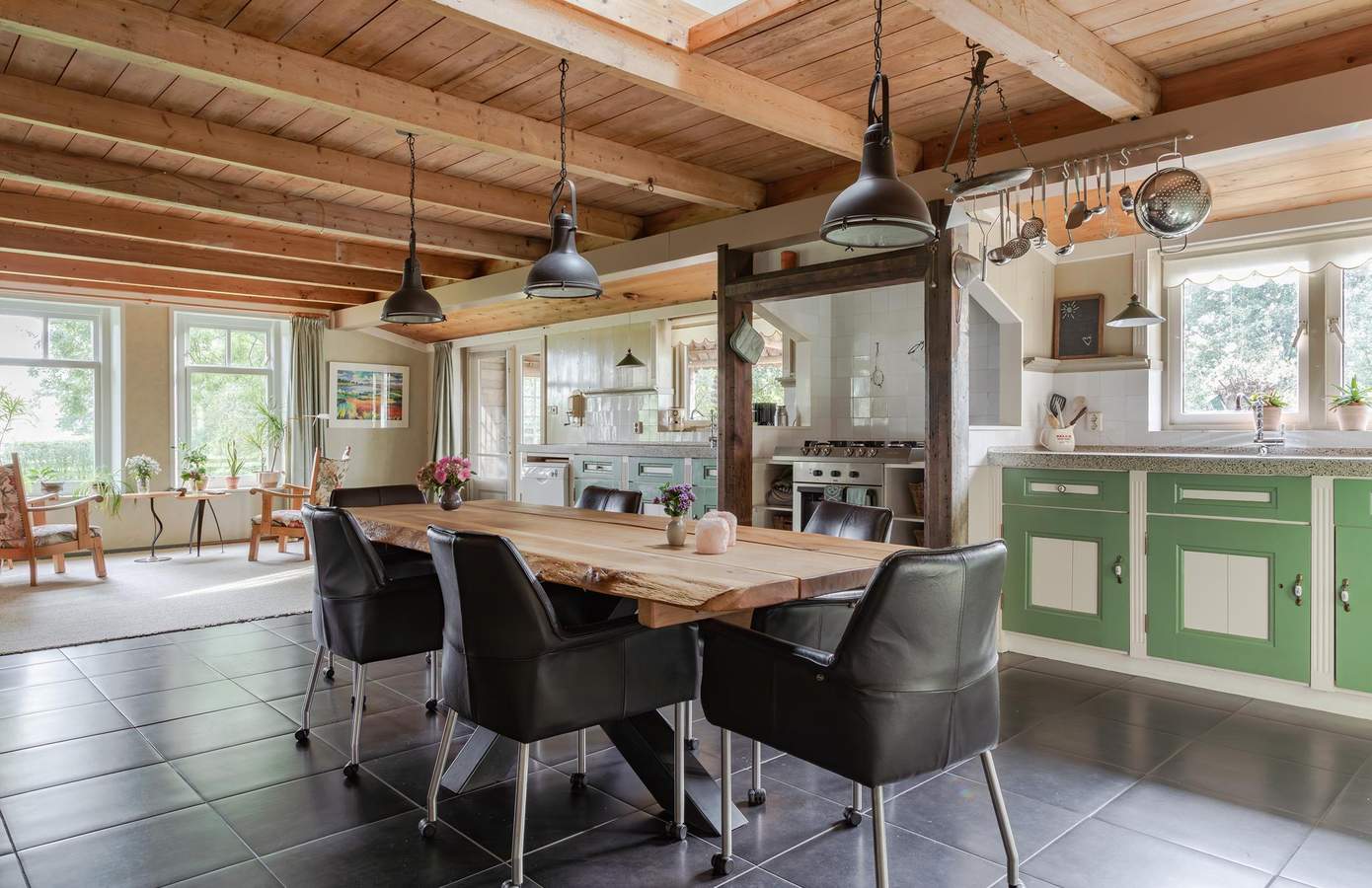 Wanneer u binnenkomt wordt u gelijk begroet door een warme en authentieke sfeer. In tegenstelling tot de meeste stolpboerderijen, is deze tuingericht in plaats van straatgericht, wat zorgt voor privacy en zicht op de prachtige tuin. De charme van de woning wordt versterkt door het rieten dak, in de zomer blijft het er redelijk koel en in de winter blijft de warmte binnen.