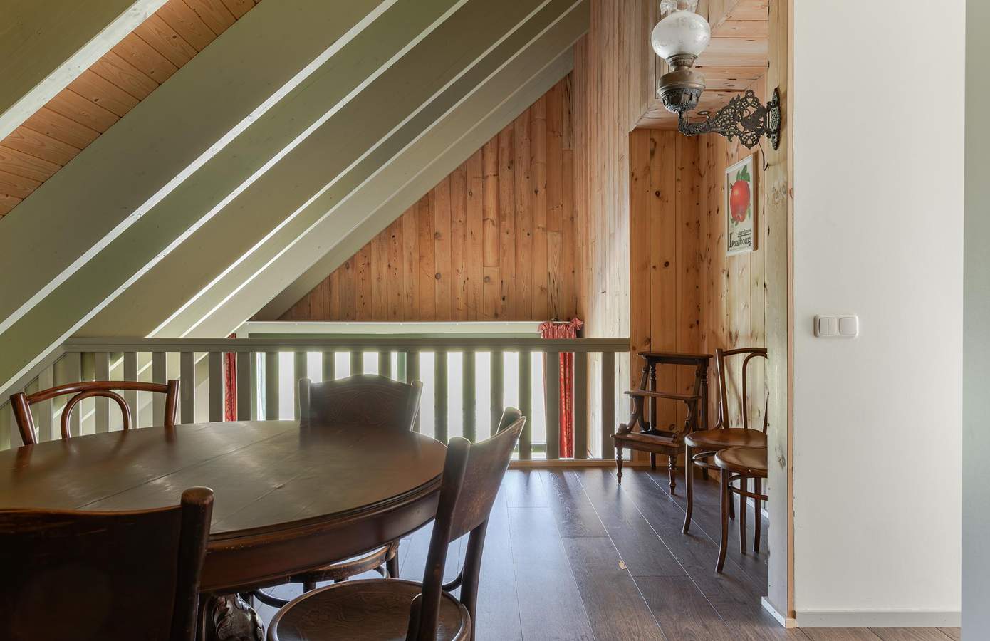 Boven de schuur is een appartement gerealiseerd. Deze heeft een aparte opgang, ook ideaal om gasten te ontvangen. Het appartement bestaat uit een woonkamer met open keuken, een badkamer en een slaapkamer. Het appartement is modern ingericht en kan zo worden bewoond.