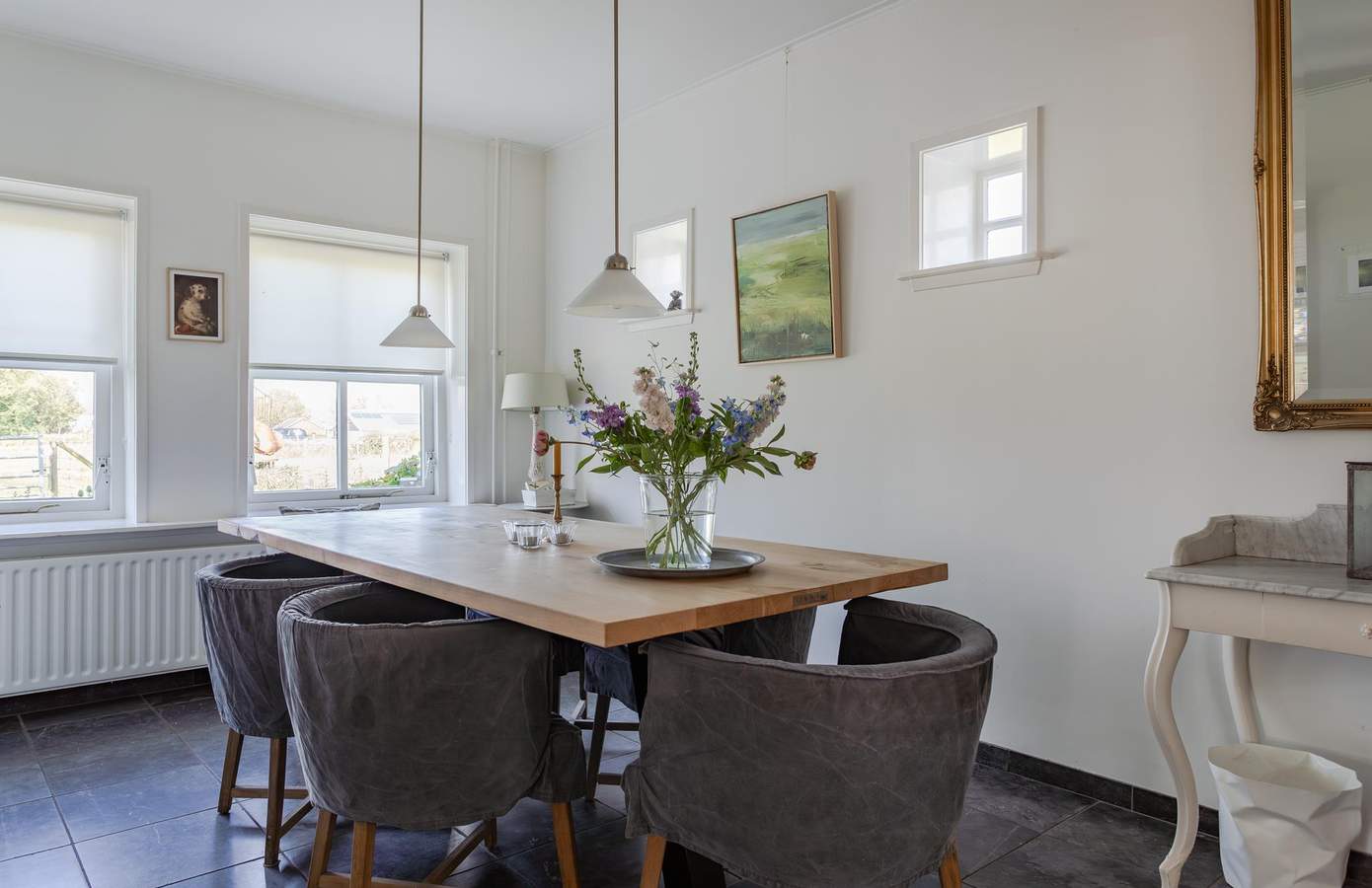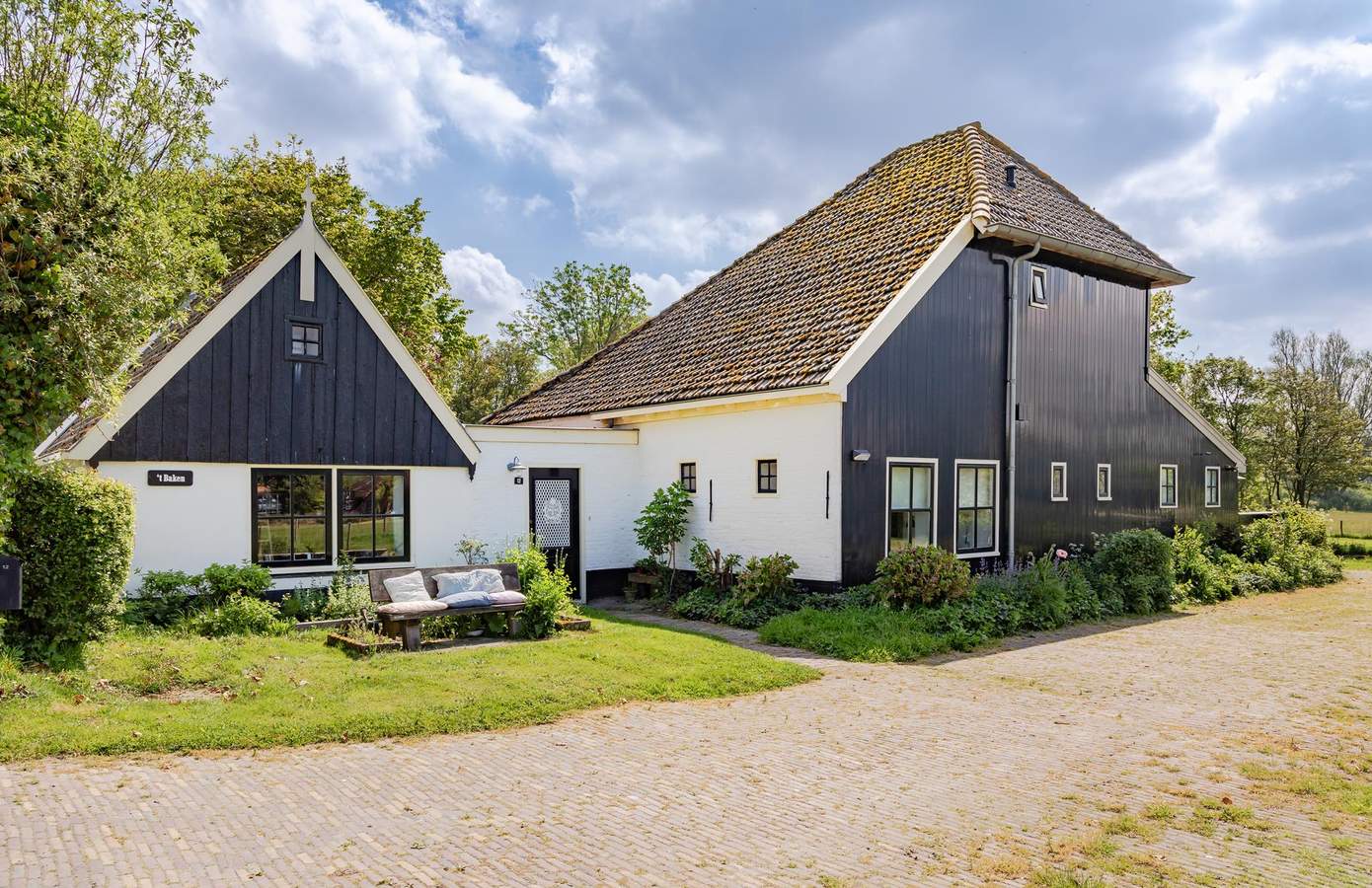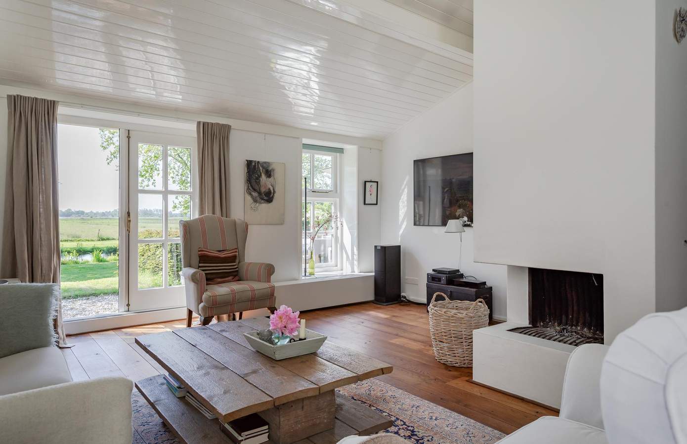 De entree bevindt zich tussen de boerderij en het voorhuis. Hier is een toilet, de meterkast en toegang tot het voorhuis, dat in gebruik is als studio. Deze ruimte kan op verschillende manieren ingezet worden, bijvoorbeeld als atelier, praktijk of kantoor, maar ook kan hier geslapen worden. Er is een verdieping waar een bed geplaatst kan worden. Bij binnenkomst in de boerderij treft u eerst de eethoek, deze is gesitueerd naast de keuken. Hier kunt u lekker kokkerellen met mooi uitzicht op de moestuin. De keuken is voorzien van diverse inbouwapparatuur. Via de keuken is de bijkeuken te bereiken, waar de wasmachine en een vriezer geplaatst kunnen worden. Aansluitend aan de bijkeuken bevindt zich nog een klompenhok met toegang naar buiten. De woonkamer is richting de achterzijde gelegen, hier is een deel van het mooi intact zijnde vierkant zichtbaar. De open haard zorgt voor extra warmte en sfeer. Via een gang met vaste kastenwand is de slaapkamer met en suite badkamer te bereiken. De slaapkamer kijkt uit op de tuin en de landerijen, een prachtig plaatje als u ’s morgens de gordijnen open doet. De badkamer is voorzien van een ligbad, douche en dubbele wastafel. Een tweede toilet bevindt zich separaat op de gang.