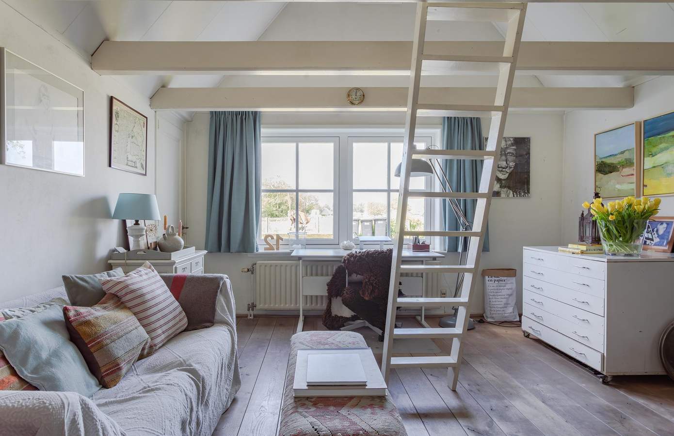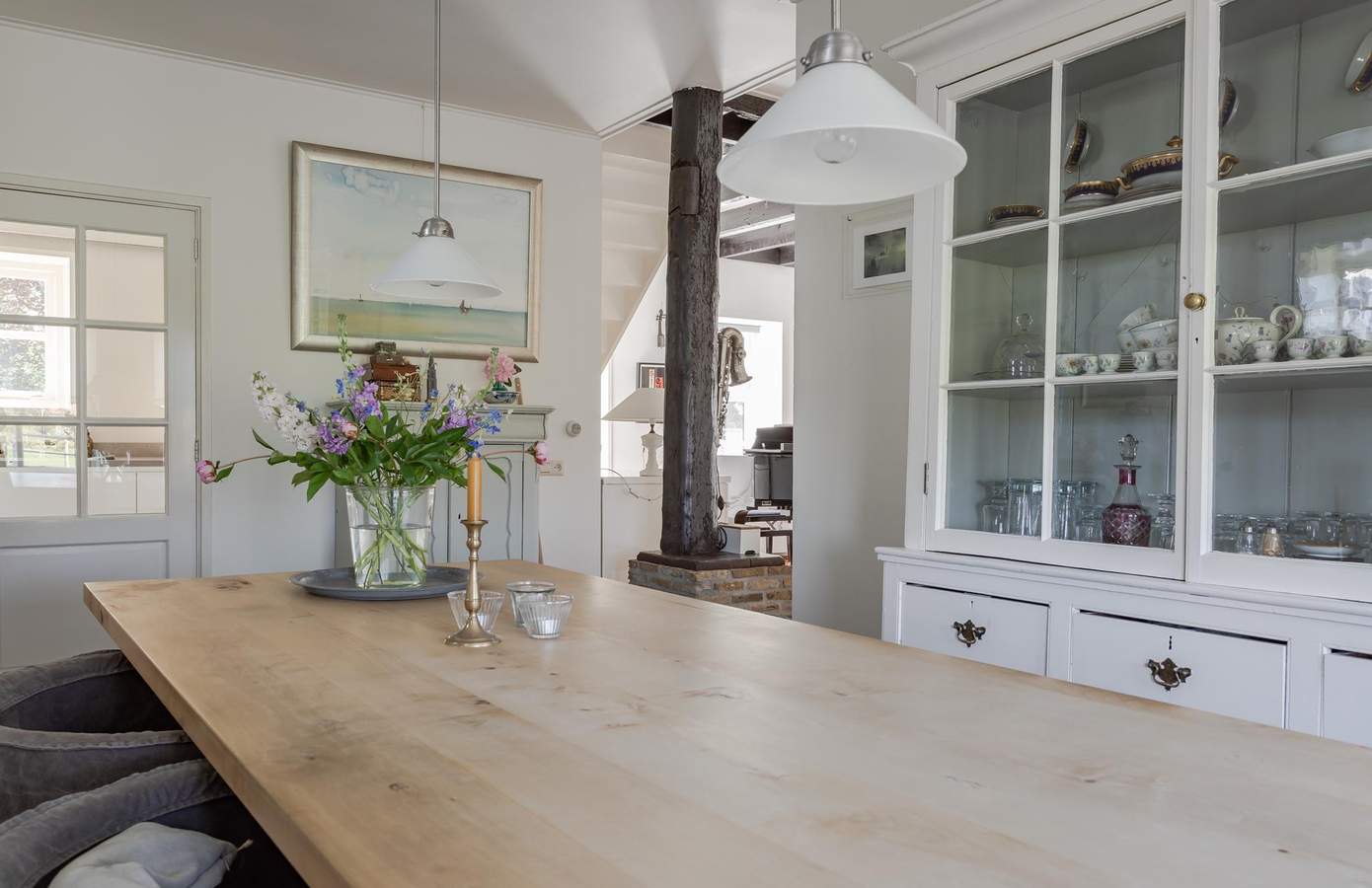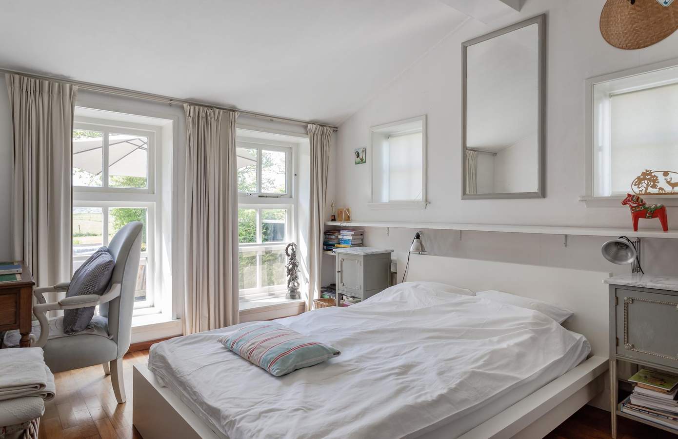 De entree bevindt zich tussen de boerderij en het voorhuis. Hier is een toilet, de meterkast en toegang tot het voorhuis, dat in gebruik is als studio. Deze ruimte kan op verschillende manieren ingezet worden, bijvoorbeeld als atelier, praktijk of kantoor, maar ook kan hier geslapen worden. Er is een verdieping waar een bed geplaatst kan worden. Bij binnenkomst in de boerderij treft u eerst de eethoek, deze is gesitueerd naast de keuken. Hier kunt u lekker kokkerellen met mooi uitzicht op de moestuin. De keuken is voorzien van diverse inbouwapparatuur. Via de keuken is de bijkeuken te bereiken, waar de wasmachine en een vriezer geplaatst kunnen worden. Aansluitend aan de bijkeuken bevindt zich nog een klompenhok met toegang naar buiten. De woonkamer is richting de achterzijde gelegen, hier is een deel van het mooi intact zijnde vierkant zichtbaar. De open haard zorgt voor extra warmte en sfeer. Via een gang met vaste kastenwand is de slaapkamer met en suite badkamer te bereiken. De slaapkamer kijkt uit op de tuin en de landerijen, een prachtig plaatje als u ’s morgens de gordijnen open doet. De badkamer is voorzien van een ligbad, douche en dubbele wastafel. Een tweede toilet bevindt zich separaat op de gang.