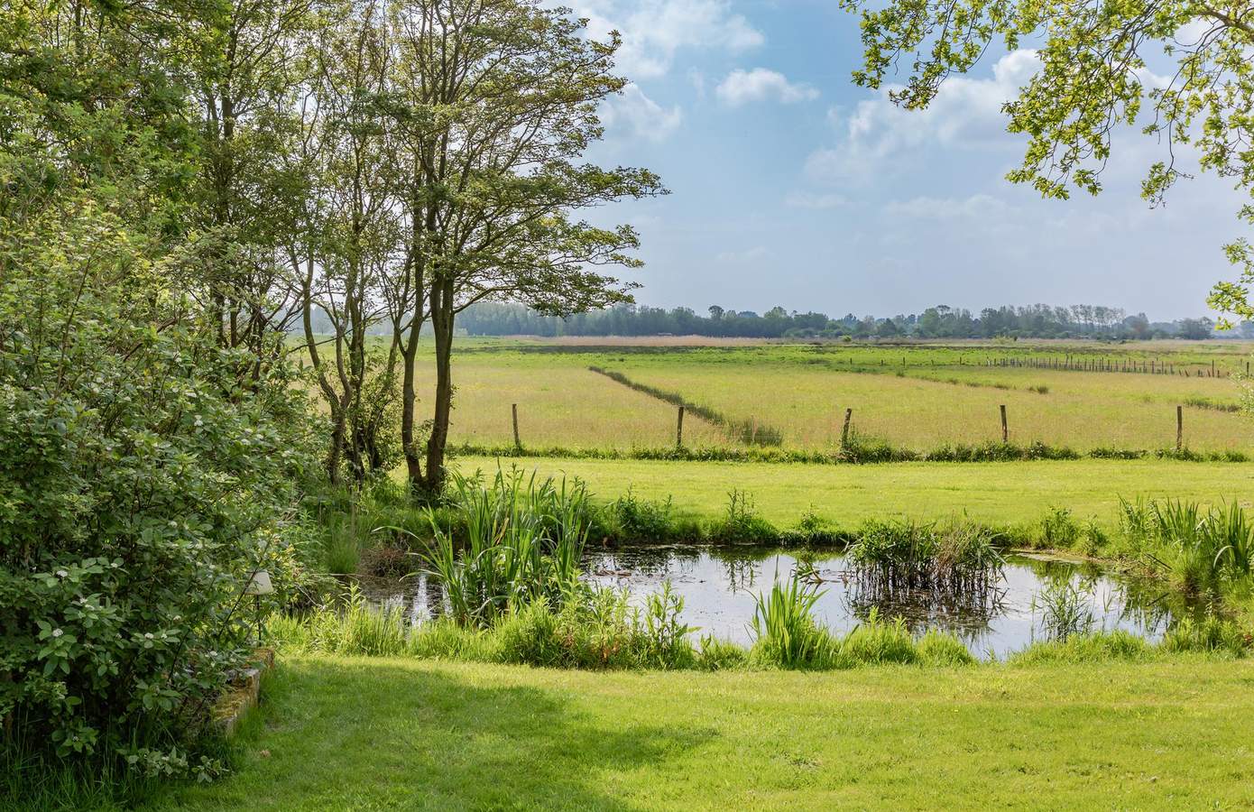 De prachtige tuin op het zuiden grenst aan het natuurgebied Zuurvenspolder, dat door Landschap Noord-Holland is toegevoegd aan het Natuurnetwerk Nederland. De waterberging van het Hoogheemraadschap vormt er een onderdeel van. Het is een juweeltje van bijzondere flora en fauna, waar het heerlijk wandelen is.