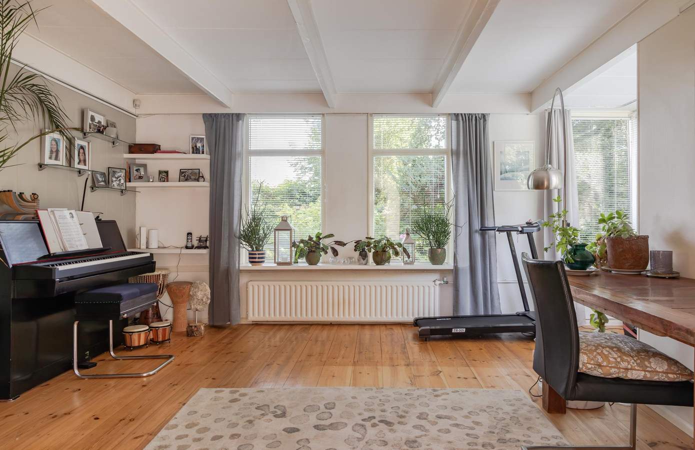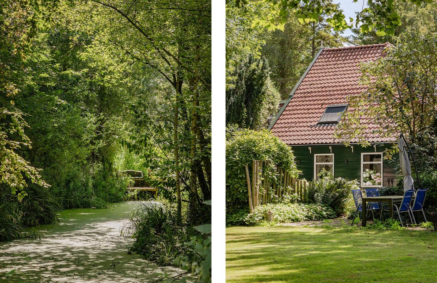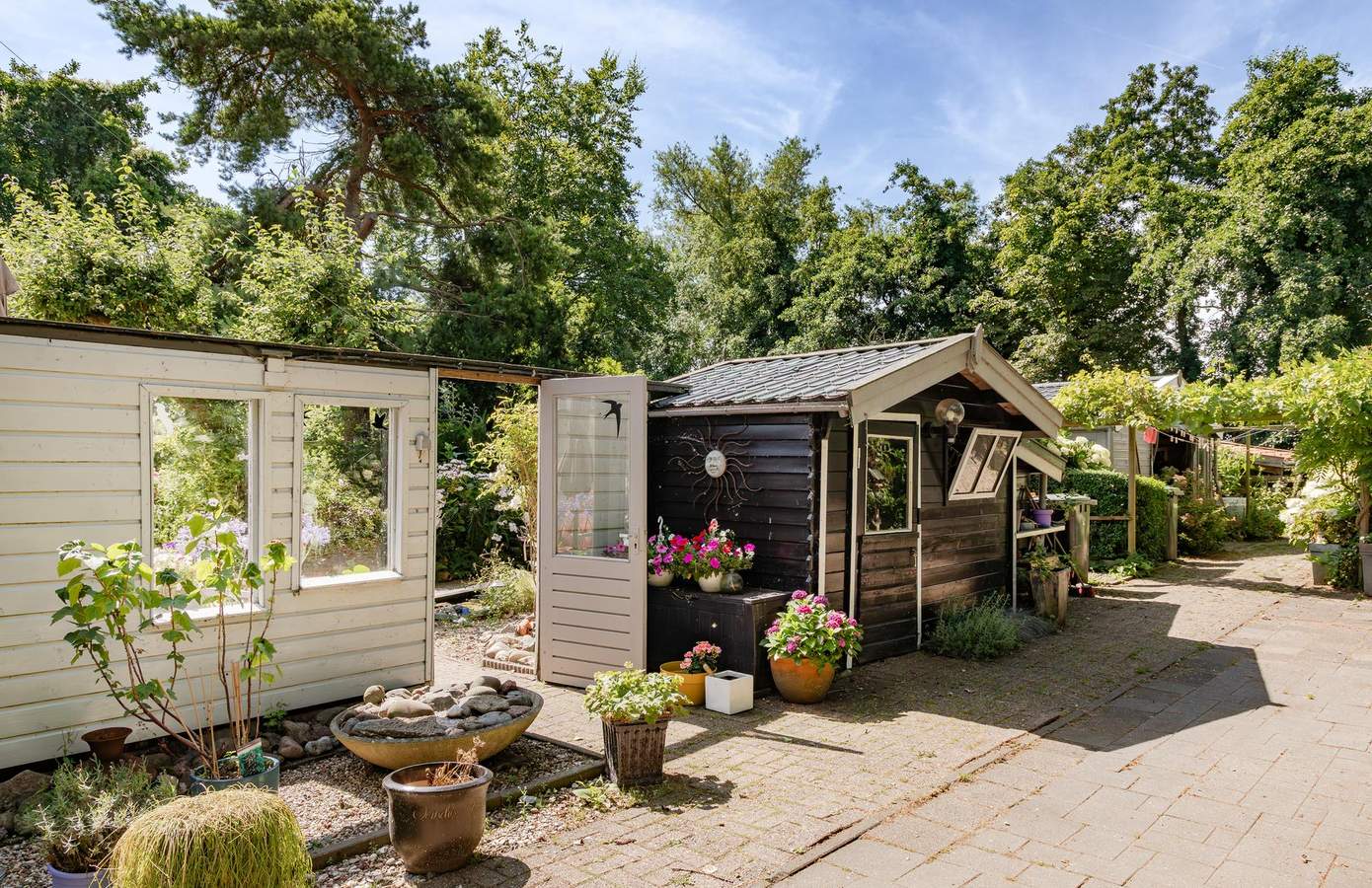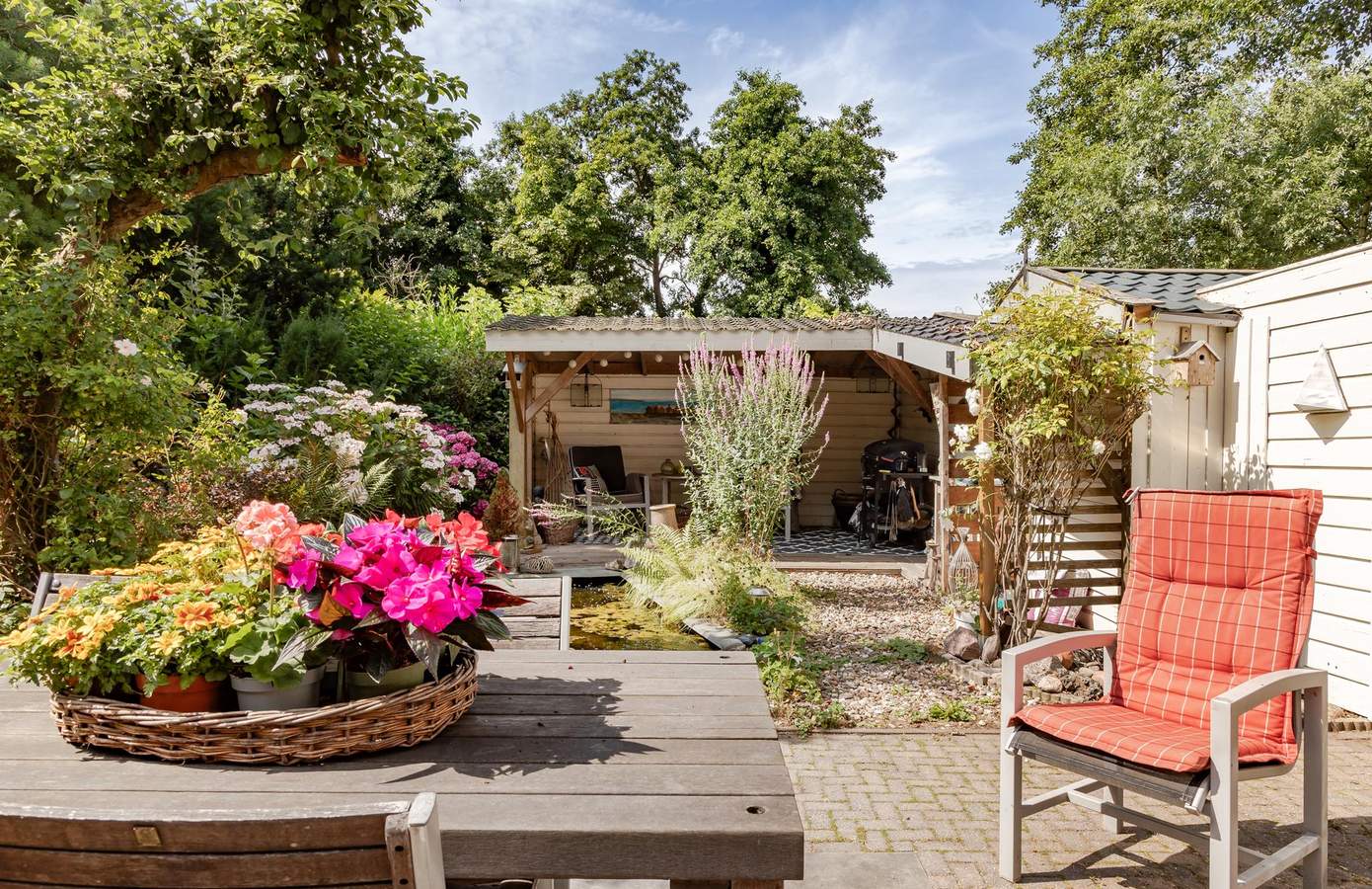 De tuin rondom de woning voelt als een groene wereld op zichzelf – rijk, ruim en met verrassende doorkijkjes. Een plek die uitnodigt om te dwalen, te ontdekken en tot rust te komen. Van oude fruitbomen tot verborgen zitplekken, alles heeft hier een eigen verhaal. U vindt er onder andere seringen, een elstar- en stoofperenboom, pruimen, vijgen, rozenstruiken, hortensia’s, zwarte, rode en kruisbessen en een walnotenboom boom. Een vijver van maar liefst 25 meter lang vormt het hart van de tuin, met aan de rand een steiger waar u zich in alle rust kunt terugtrekken. Achter op het perceel is volop ruimte voor wilde begroeiing en biodiversiteit – een plek waar de natuur haar gang mag gaan. De bijgebouwen op het terrein zijn eenvoudig van opzet, maar bieden volop potentie. Wie met creativiteit kijkt, ziet hier kansen voor een atelier, een gastenverblijf of zelfs een kleinschalig bedrijf aan huis.
