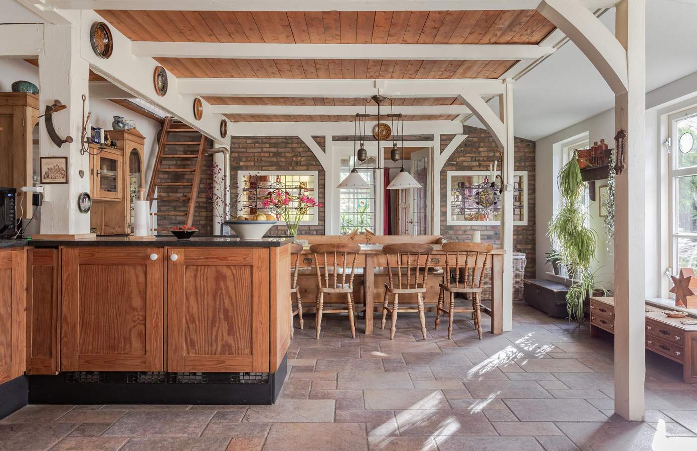 Via de zijentree betreedt u de woning en komt u in de ruime hal. Vanuit de hal komt u in de open keuken, de keuken heeft een groot hardstenen werkblad en diverse inbouwapparatuur, waaronder een 6-pits Boretti fornuis, afzuigschouw, koelkast, vriezer, vaatwasmachine en een Quooker voor direct kokend water. De woonkamer is gelegen in het staartstuk, aan de achterzijde van de woning. Dankzij de spekstenen houtkachel is het hier altijd sfeervol. De openslaande deuren verbinden de woonkamer met het terras, waar u kunt genieten van het uitzicht aan de achterzijde. Via de tussenhal, met een praktische garderobe-/voorraadkast, is er toegang tot het toilet en de badkamer. De badkamer is compleet uitgerust met een ligbad, douche, toilet en een wastafel. De eetkamer grenst aan de keuken en via mooie glas-in-lood deuren is er toegang tot de ruime slaapkamer aan de voorzijde. Op de eerste verdieping zijn in totaal drie slaapkamers, allen met een dakraam. Via een vlizotrap bereikt u de zolder.
