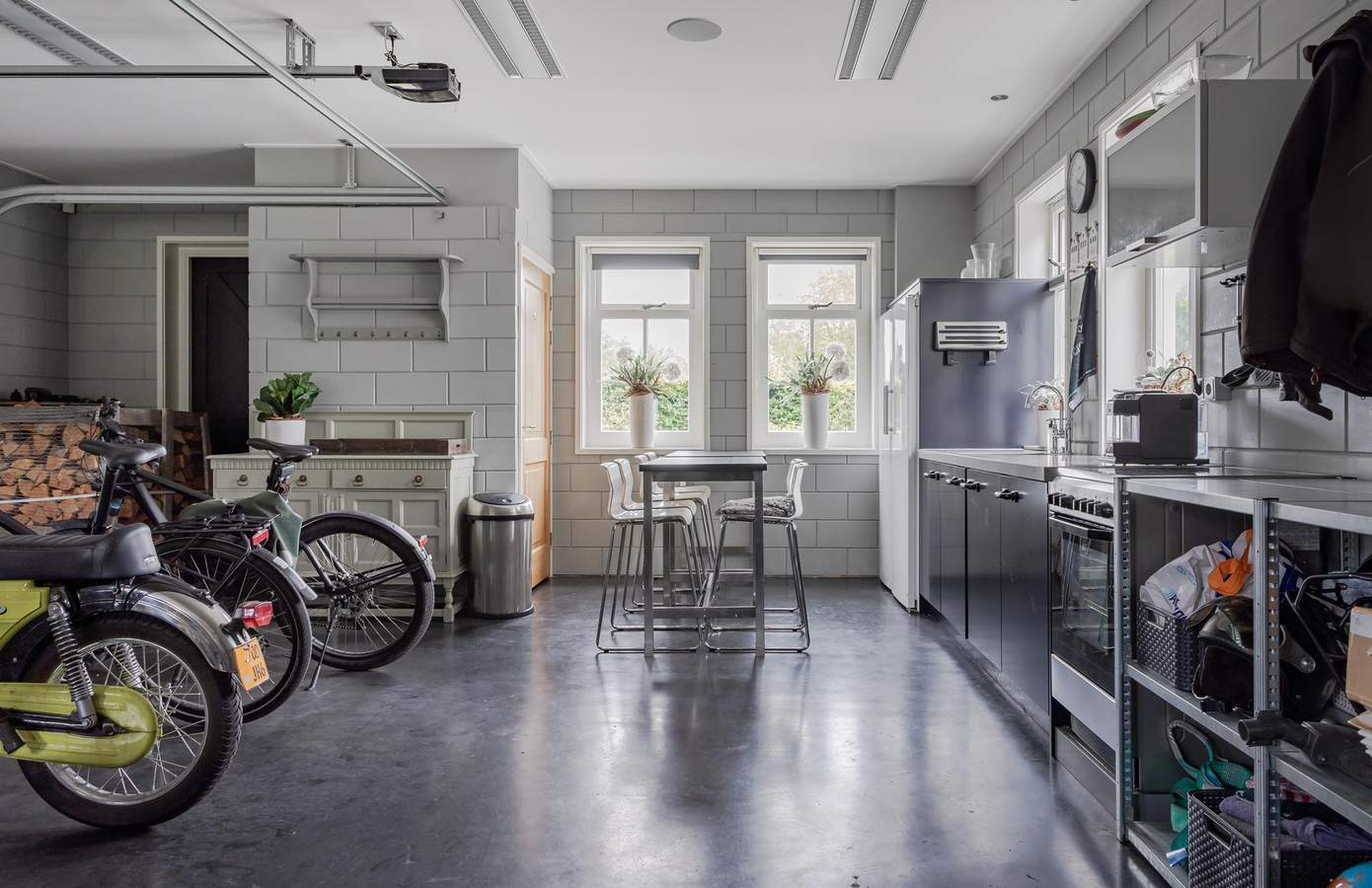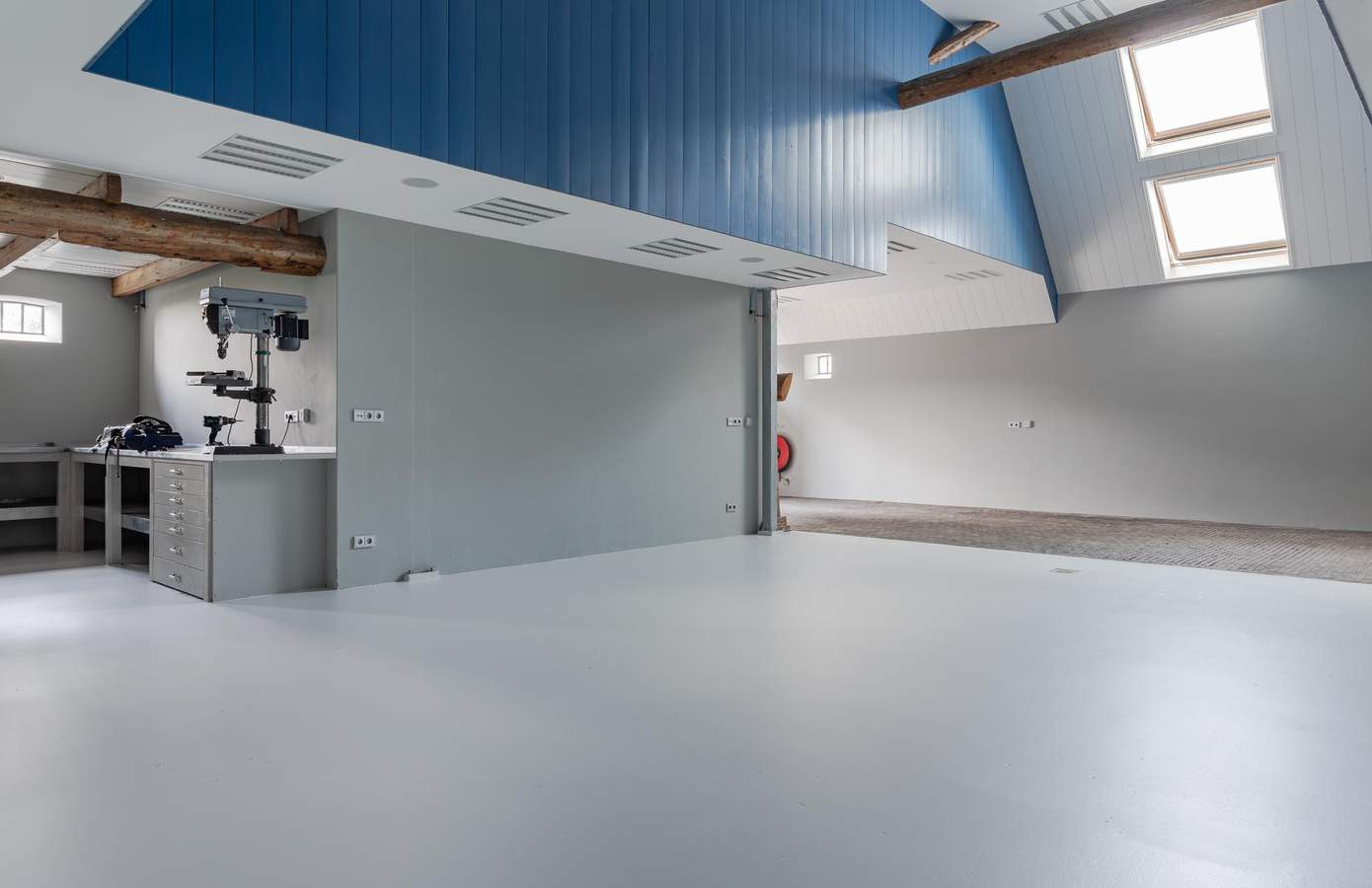 Het is volledig geïsoleerd en voorzien van vloerverwarming op de begane grond. Behalve veel ruimte biedt het alle denkbare gemakken zoals overheaddeuren, een keuken en een toilet.