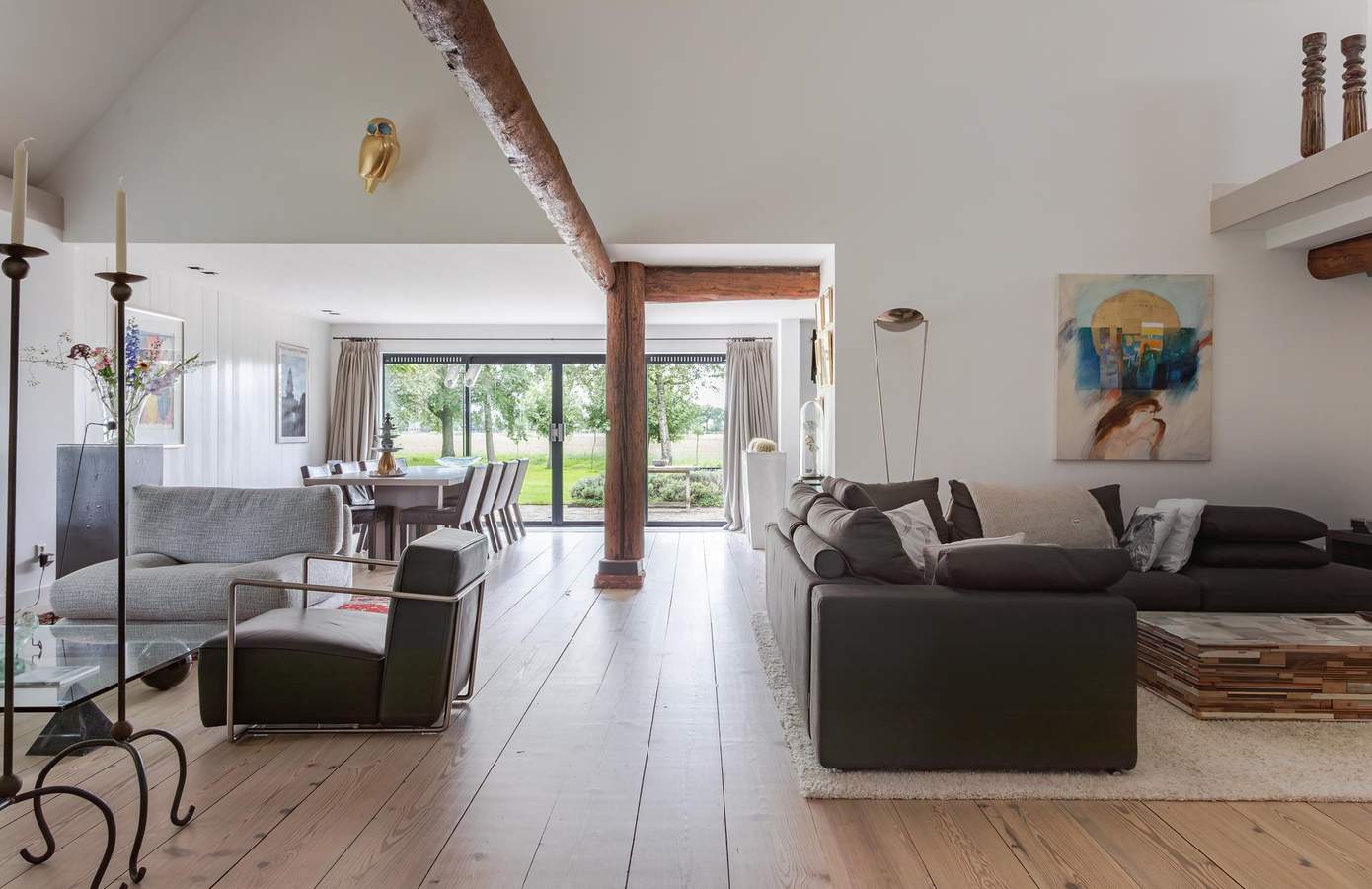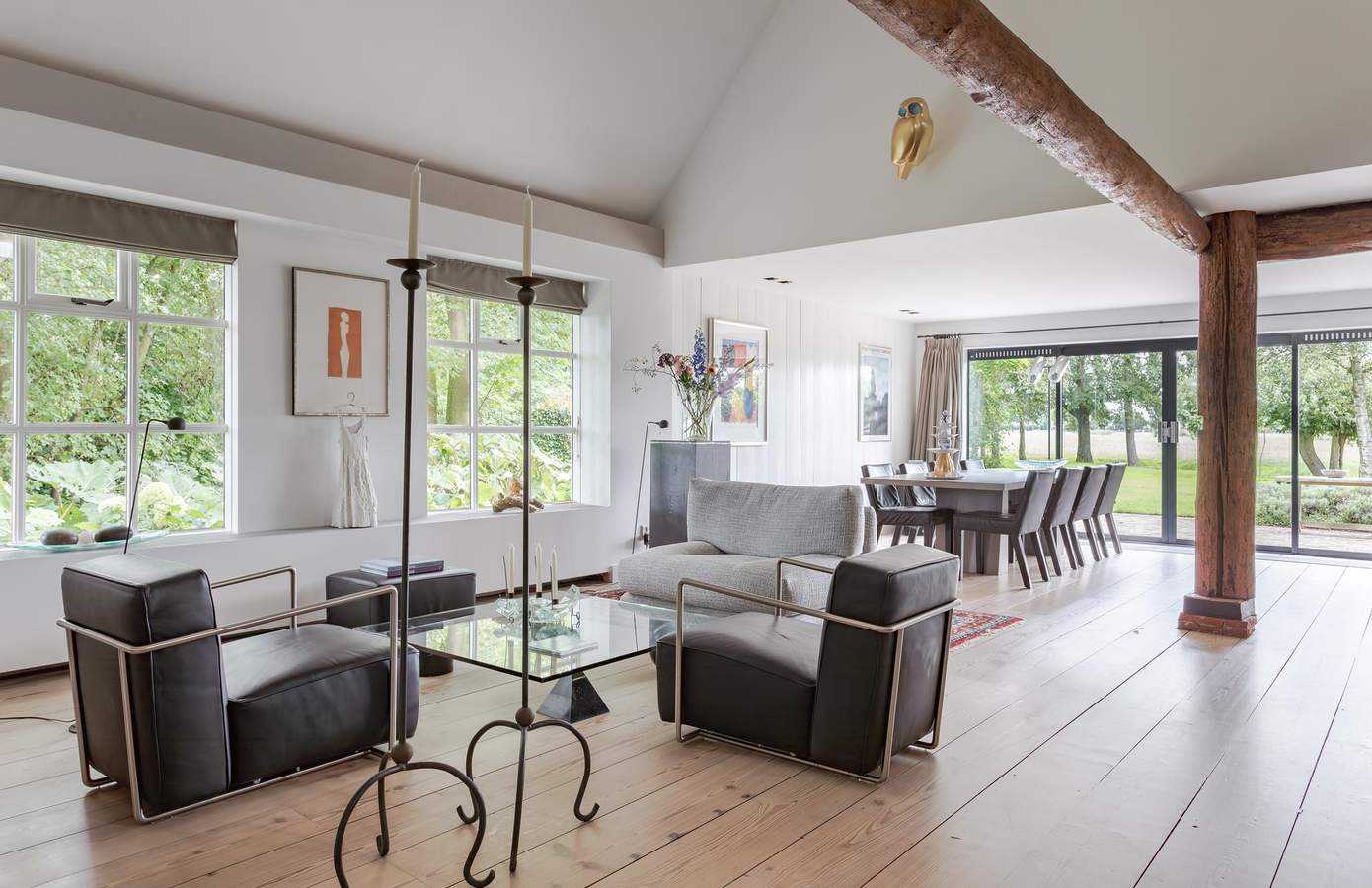 Deze unieke woning, verbouwd onder architectuur door de meubel- en interieurontwerper Piet Boon in zowel 1980 als 2006, is een ware parel die u betovert met zijn tijdloze schoonheid. Tijdens de verbouwingen zijn historische details bewaren gebleven zoals de plek van de ramen en de grote staldeur. De stolpboerderij is een toonbeeld van de traditionele vierkante vorm die nog steeds in het zicht is. Bij het betreden van het erf op uw eigen oprij pad wordt u omringd door groen en ruimte met voldoende parkeergelegenheid. De tuin van de stolpboerderij is een oase van rust, waar u kunt genieten van een weids en prachtig uitzicht over de omliggende landerijen.