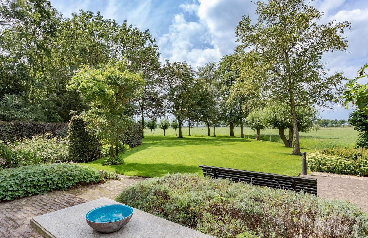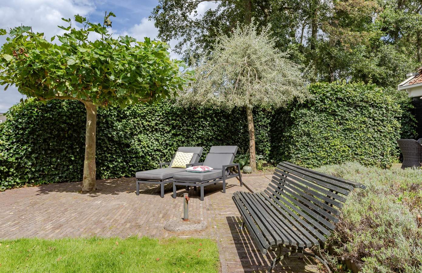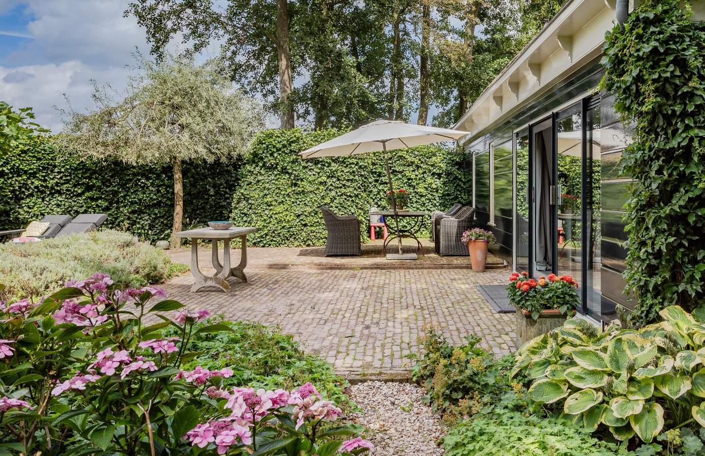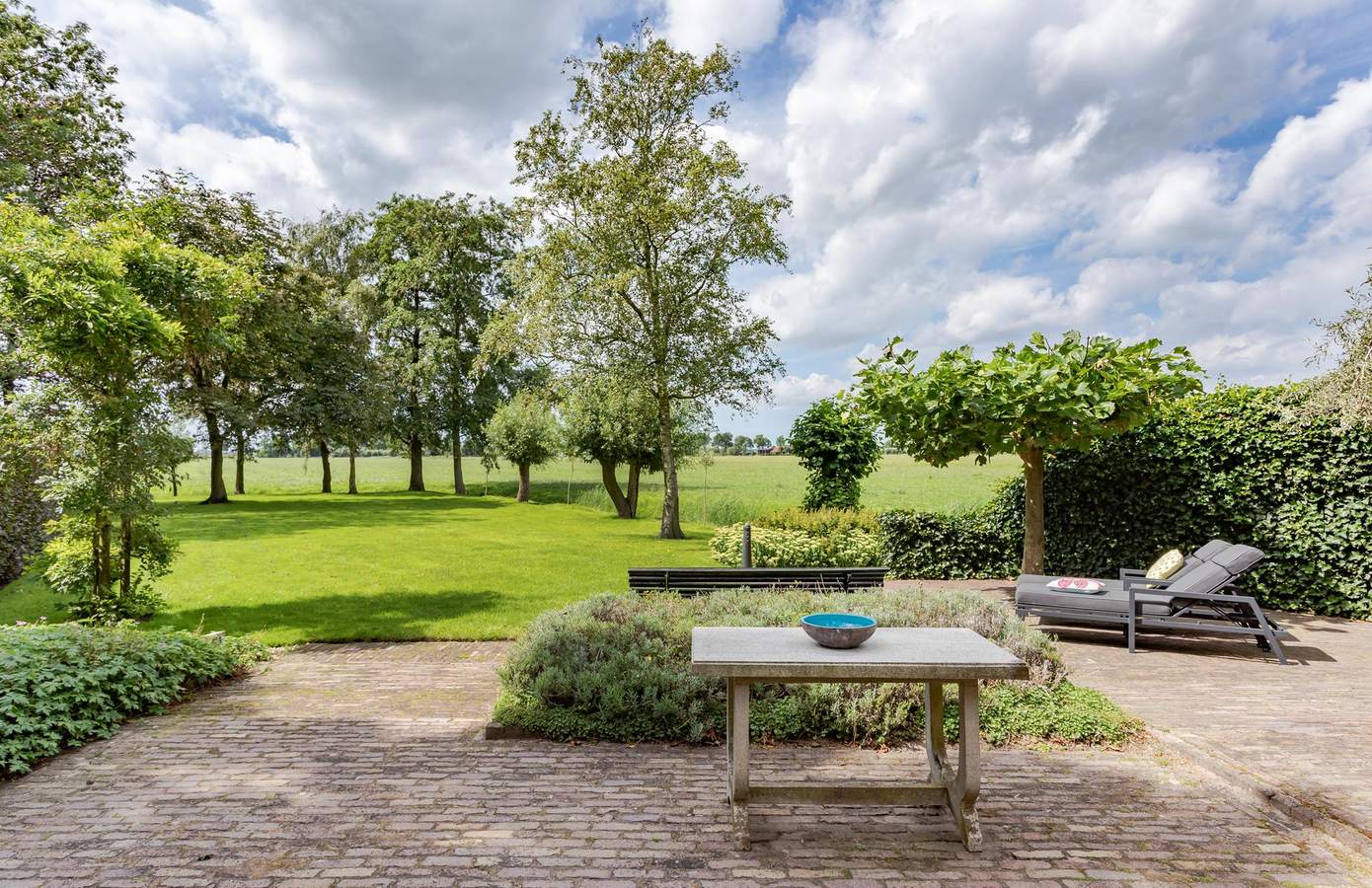 De glazen schuifpui nodigt u uit om vanuit de woonkamer direct naar het terras te stappen. Hierdoor wordt optimaal gebruik gemaakt van de verbinding tussen binnen met buiten. De weelderige tuin rondom de woning, het vrije uitzicht over de landerijen en de privacy maken deze woning tot een favoriet! Een extra pluspunt is de achtertuin die gelegen is op het zuidwesten, waar u kunt genieten van de zon.