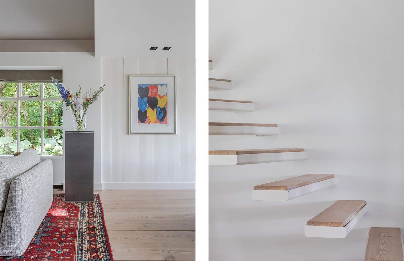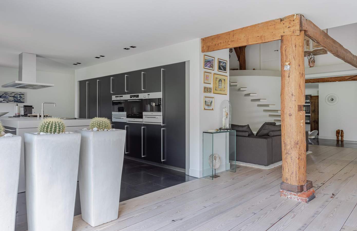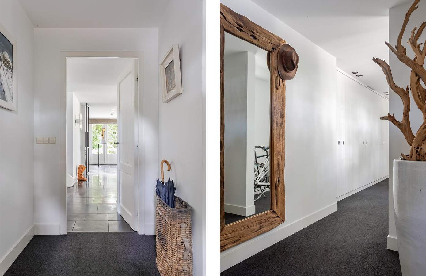 Zodra u deze woning binnenstapt voelt u direct de stempel van Piet Boon. Lichte ruimtes en strakke lijnen. Bij het betreden van de woonkamer wordt uw aandacht direct getrokken naar de zwevende traptreden naar de open bovenverdieping. Vanuit de woonkamer heeft u prachtig vrij uitzicht over de landerijen van Hoogwoud. Een royaal kookeiland, grote eettafel en gezellige zithoek wat als hart van de woning fungeert. Naast de keuken vindt u een ruime bijkeuken met een overvloed aan kastruimte. Hierachter bevindt zich ook de wasmachine. Een ruim kantoor wordt aan de voorkant van de woning gescheiden door elegante glazen deuren.