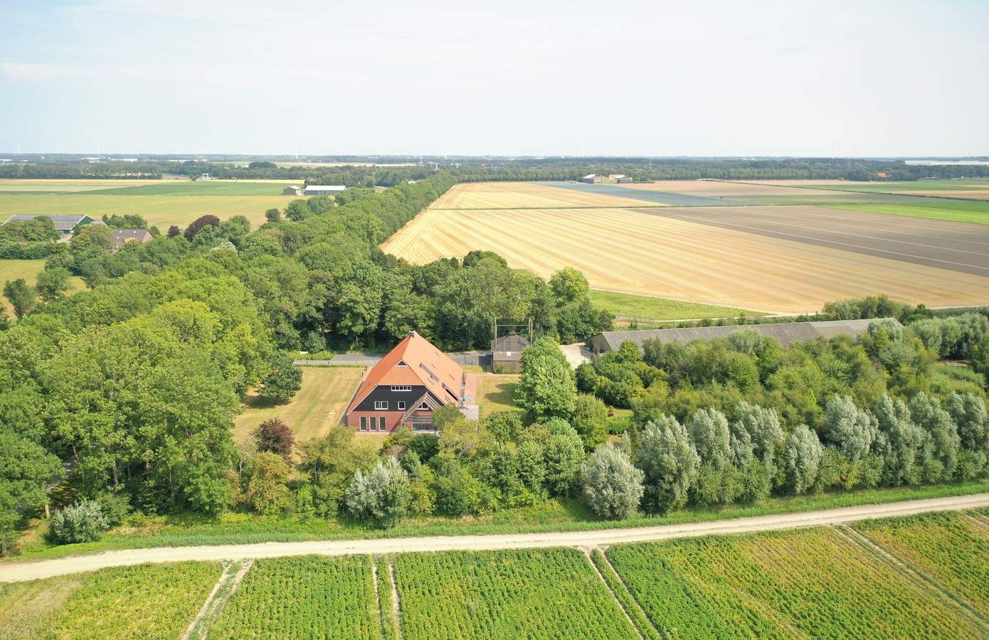 De boerderij ligt aan de rand van windpark Wieringermeer, wat resulteert in een maandelijkse vergoeding van circa €120,-. De windmolens zijn vanuit de woning niet zichtbaar en ook niet hoorbaar. Voor de gashaard in de woonkamer en een gaspit in de keuken is er een gastank op het perceel aanwezig.