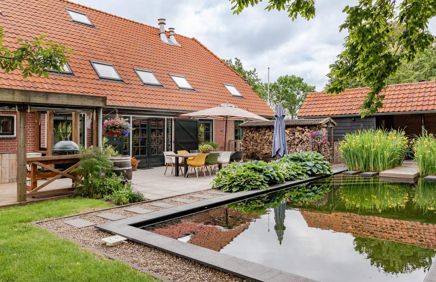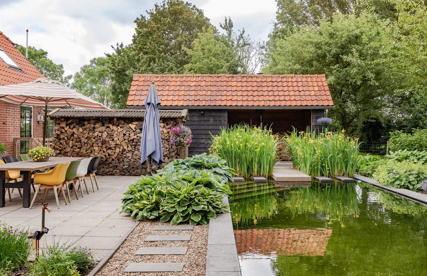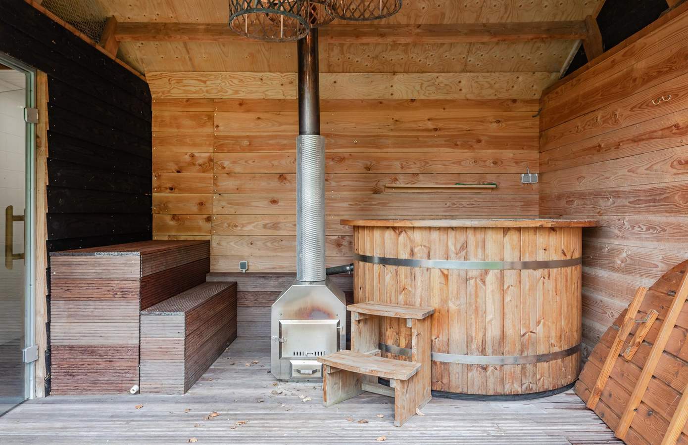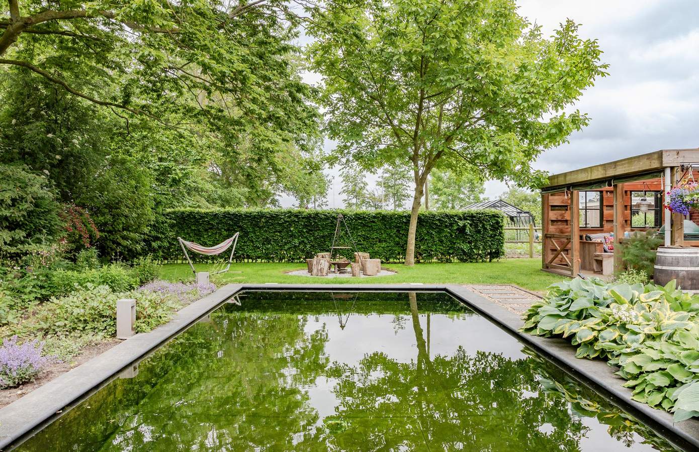 Geniet van een puur wellness-gevoel in eigen tuin door het bijgebouw met de houtgestookte sauna en hottub. De zwemvijver is een heerlijke verkoeling in de warme maanden en voor een verfrissende duik na uw saunabezoek. De vijver heeft een pomp en wordt op natuurlijke wijze gefilterd door de beplanting. Het heeft hierdoor een zelfreinigend vermogen.