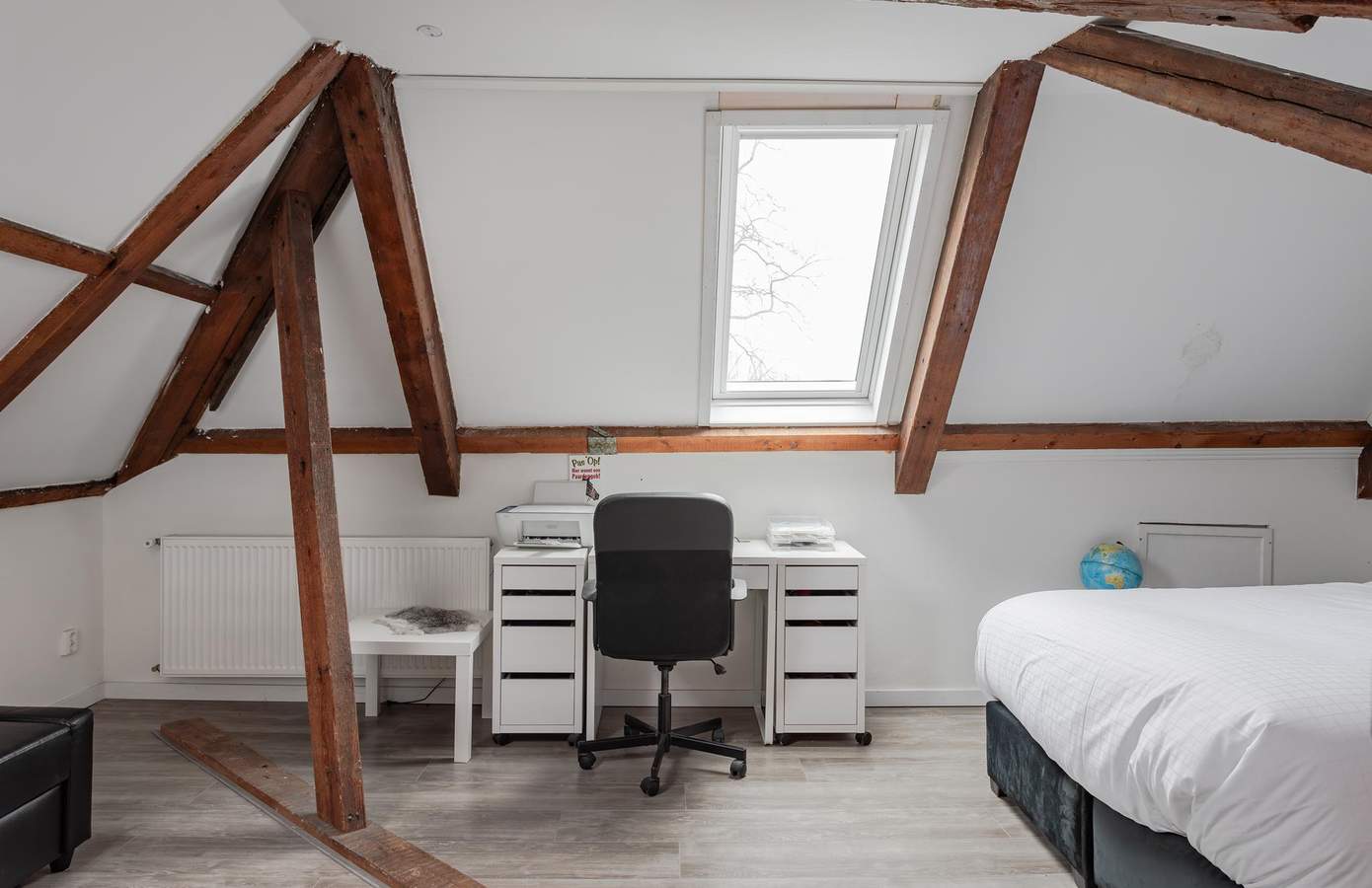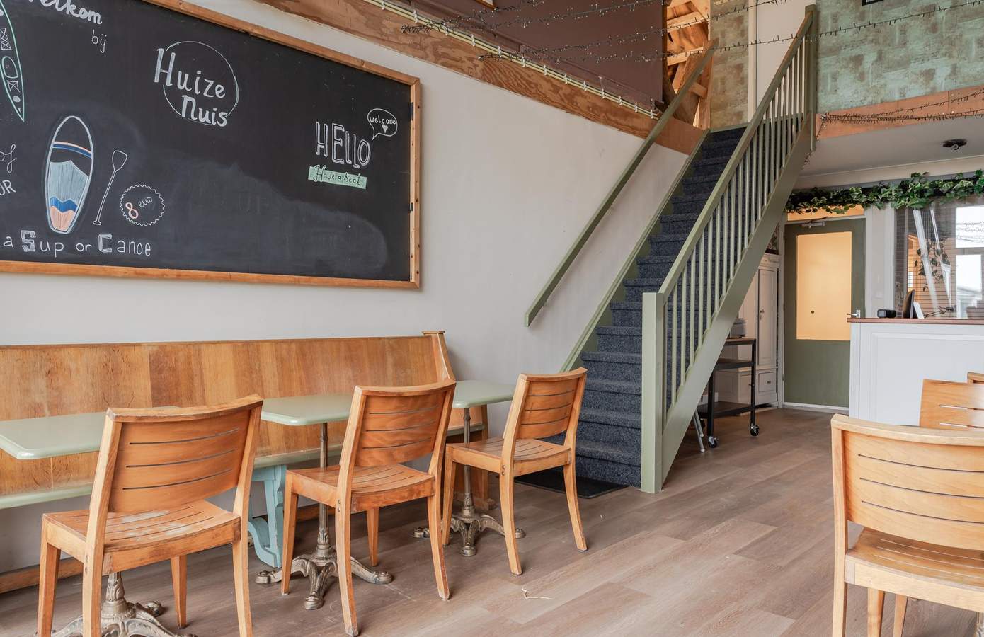 Op de verdieping bevinden zich twee ruime slaapkamers en een royale overloop die, indien gewenst, kan worden omgebouwd tot een vijfde slaapkamer. De originele rouw- en trouwdeur is met een creatieve twist omgevormd tot de uitgiftebalie van de theetuin. Deze unieke ruimte is in de zomermaanden een geliefde ontmoetingsplek, waar gasten genieten van verfrissende drankjes en ijsjes. De theetuin is ook een populaire locatie voor high tea’s, babyshowers en andere groepen. Dankzij de aanwezigheid van picknicktafels, een toiletkar, en een sfeervolle foodtruck heeft de theetuin een uitstekende reputatie opgebouwd in de regio en is het een begrip geworden onder zowel bewoners als bezoekers.