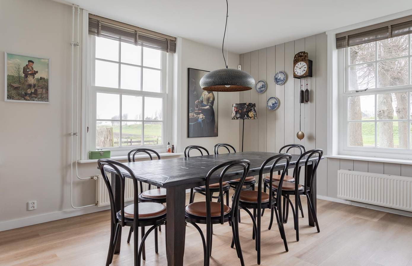 Deze is voorzien van een eigen huisnummer (6). Deze woning mag een zelfstandige woonruimte worden met een woonvormingsvergunning. Liever een groot woonhuis van maken? Verschillende opties zijn mogelijk om het voor, -en achterhuis tot een mooi geheel te maken. Het achterhuis is een volwaardige woning voorzien van drie slaapkamers, een badkamer, een keuken en een woonkamer met een prachtig uitzicht over de landerijen.