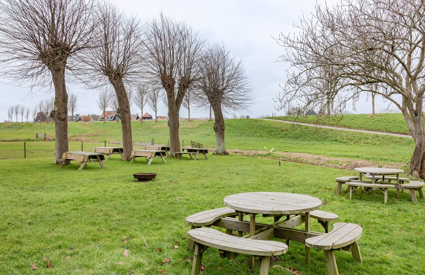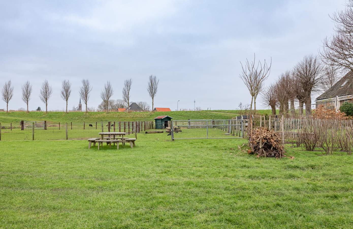 Een paradijs voor jong en oud, gelegen op een “eigen eiland”. Walnotenbomen, bloesems, bessenstruiken en weelderig groen creëren een oase van schaduw en sfeer. Aan de zuidzijde vindt u een privéterras en de dieren. Aan de westkant staan picknicktafels en een vuurkorf klaar voor de gasten. Op de oostzijde staat een royale schuur voor opslag en een open veld waar al vergunning voor kleinschalig kamperen en safari tenten is verleend. Hier geniet u dagelijks van de meest adembenemende zonsopkomsten en zonsondergangen. Aan de dijk bevinden zich twee vergunde aanlegsteigers, waarmee u met een boot via de Beemsterringvaart zo het IJsselmeer op vaart. Een unieke plek waar rust, natuur en recreatie samenkomen.