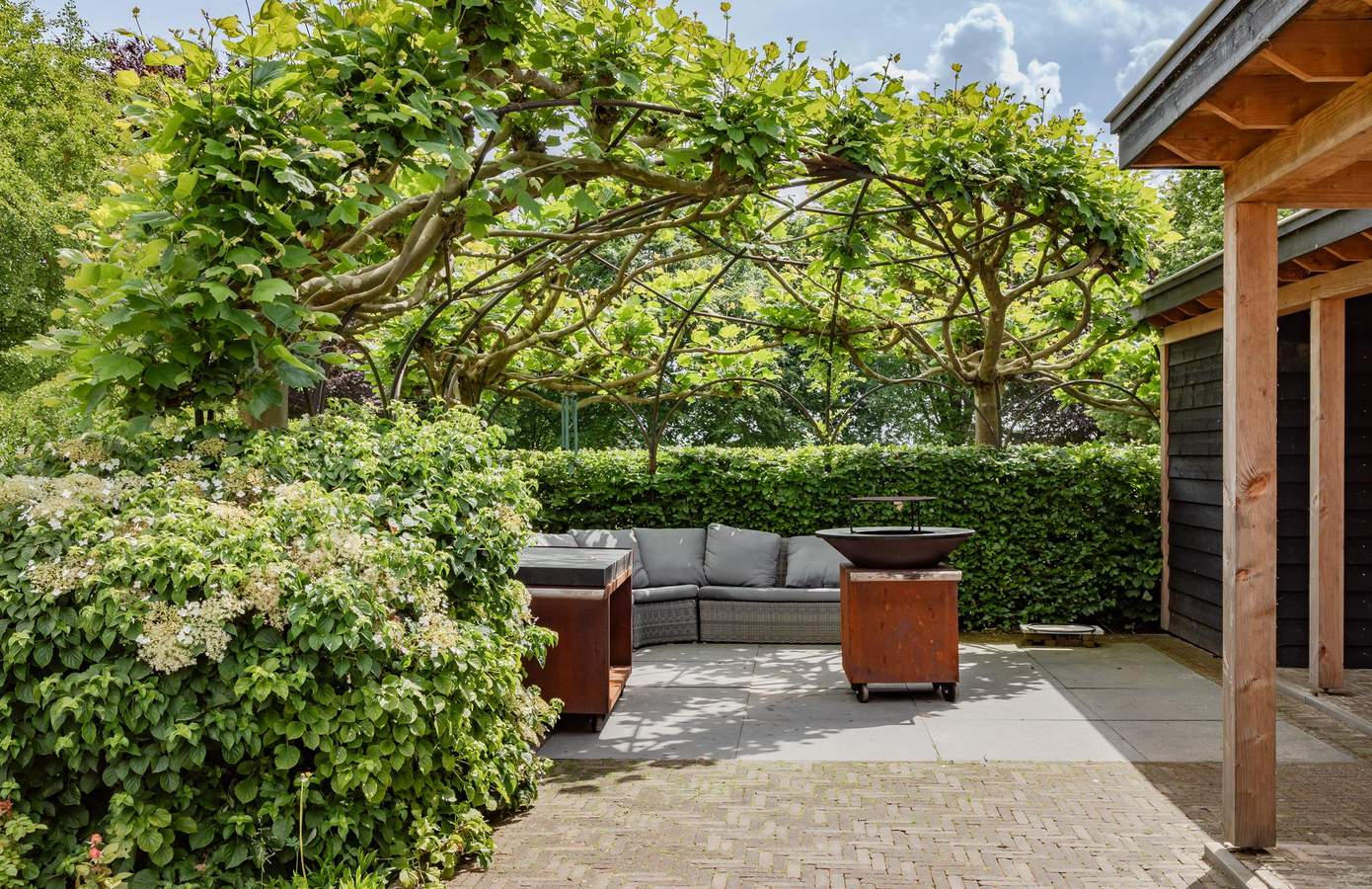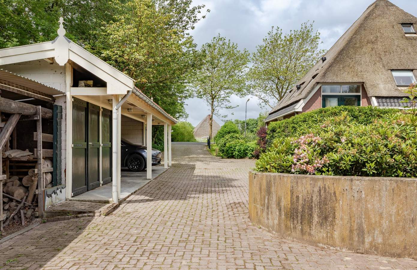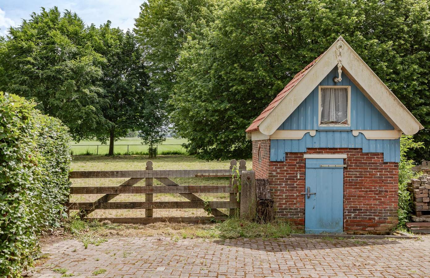 Via een elektrische poort bereikt u het erf. Een carport voor twee auto’s (met laadpalen), een schuur, een moestuin, een weiland, een boomgaard, diverse borders, u treft het hier allemaal. Een heerlijke veranda. een hyper modern en verwarmd zwembad met allerlei functies zorgen voor comfort. De voormalige stal en vijzelberg zijn in 2008 getransformeerd tot twee gastenverblijven. In 2021 zijn deze gerenoveerd. Deze ruimtes zijn ook goed te gebruiken als B&B of generatiewoning.