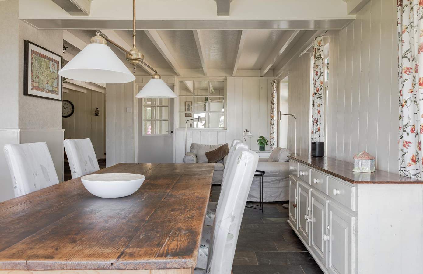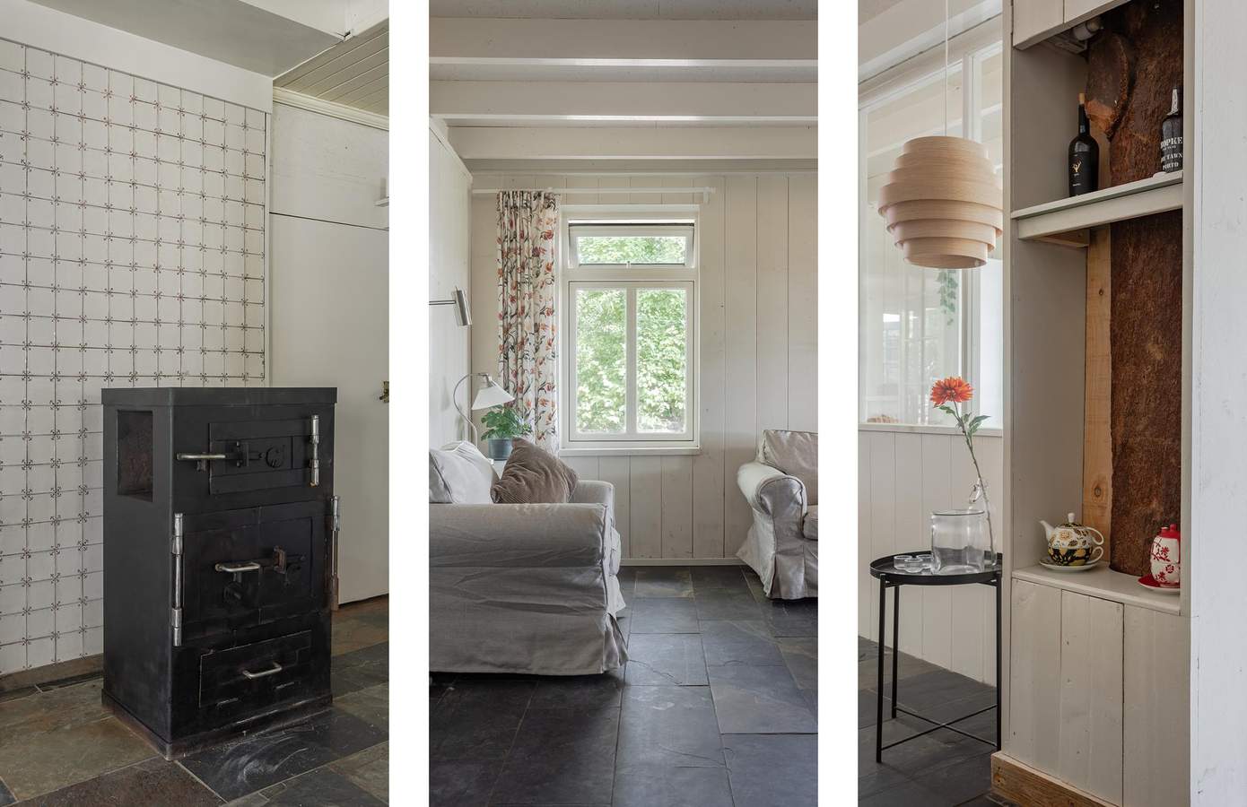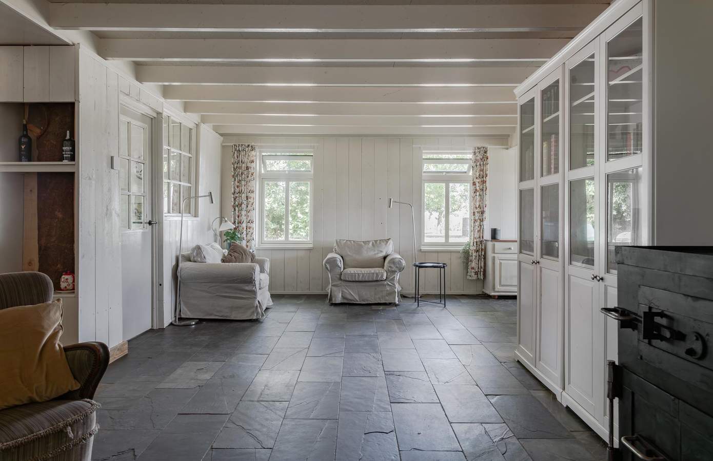 U komt binnen via de entree aan de zijkant van de stolp, waar u direct toegang heeft tot een multifunctionele ruimte. Deze ruimte leent zich goed als kantoor, werk- of studeerkamer. De aangrenzende woonkamer is zoals het een stolp betaamt ruim van formaat en heeft een open verbinding met het eetgedeelte en de landelijke woonkeuken met AGA-fornuis. Hier geniet u van een fenomenaal uitzicht op het omliggende landschap en de vaart. Aan de achterzijde bevindt zich een royale tuinkamer met openslaande deuren naar buiten, een heerlijke plek om elk seizoen van het buitenleven te genieten. Aan de voorzijde vindt u een multifunctionele kamer welke nu in gebruik is als kantoor maar welke ook uitstekend ingericht kan worden als slaapkamer. Via de centrale gang komt u bij de badkamer met infrarood sauna, een separaat toilet en een bijkeuken met de wasmachineopstelling. Via een vaste trap bereikt u de bovenverdieping. Hier treft u twee volwaardige slaapkamers, een toilet en een riante open ruimte met pantry. Deze ruimte is volledig naar eigen wens in te delen en te gebruiken en biedt talloze mogelijkheden. Zo kan dit een perfecte plek zijn voor een atelier, hobbyruimte of als tweede woonkamer voor (ouder wordende) kinderen of gasten.