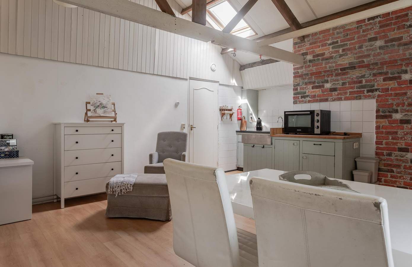 Een veelzijdige ruimte met eigen voorzieningen. Het gastenverblijf heeft een eigen entree en is ingericht met een volwaardige keuken, een tweetal slaapkamers en een badkamer met douche en toilet. Dankzij de zelfstandige opzet biedt dit verblijf tal van gebruiksmogelijkheden. Zo is het uitermate geschikt als logeerruimte voor familie of vrienden, maar ook als mantelzorgwoning, B&B of werkruimte aan huis. De privacy en eigen voorzieningen zorgen ervoor dat gasten of bewoners volledig onafhankelijk kunnen verblijven, terwijl ze toch dicht bij huis zijn.