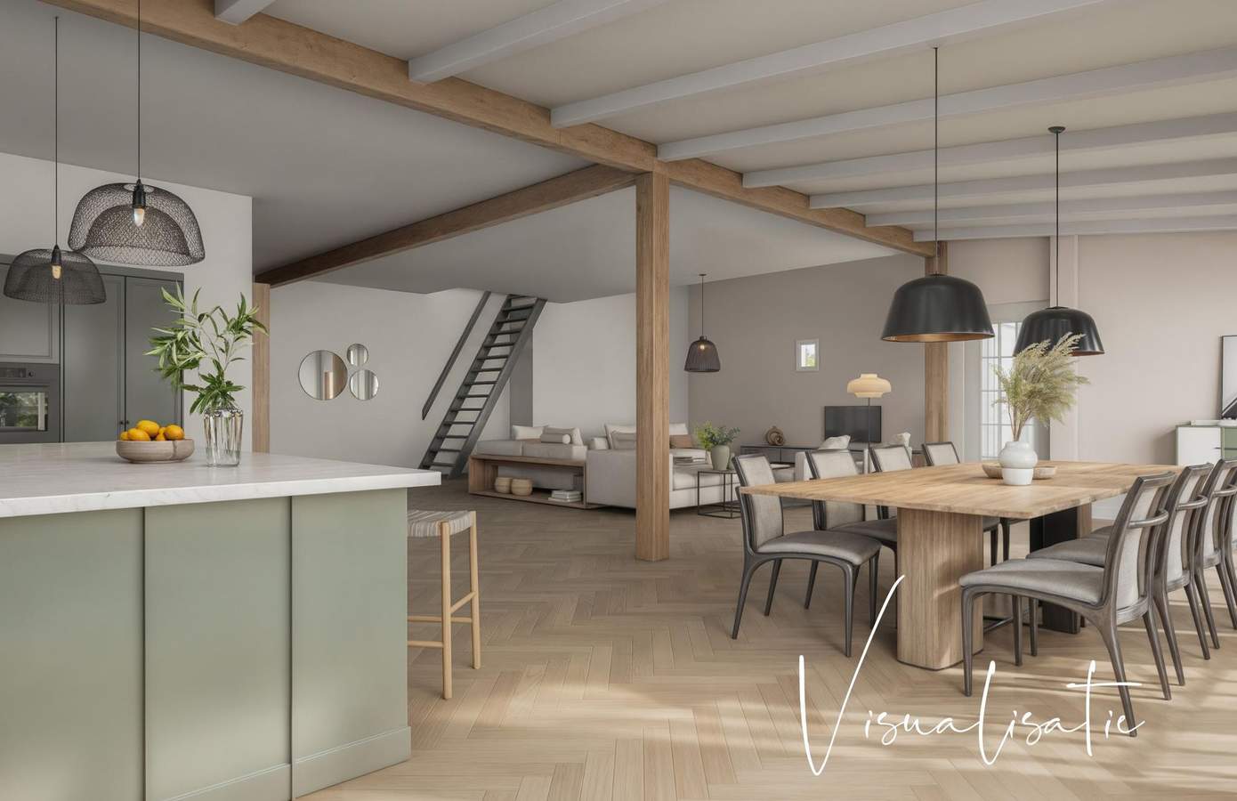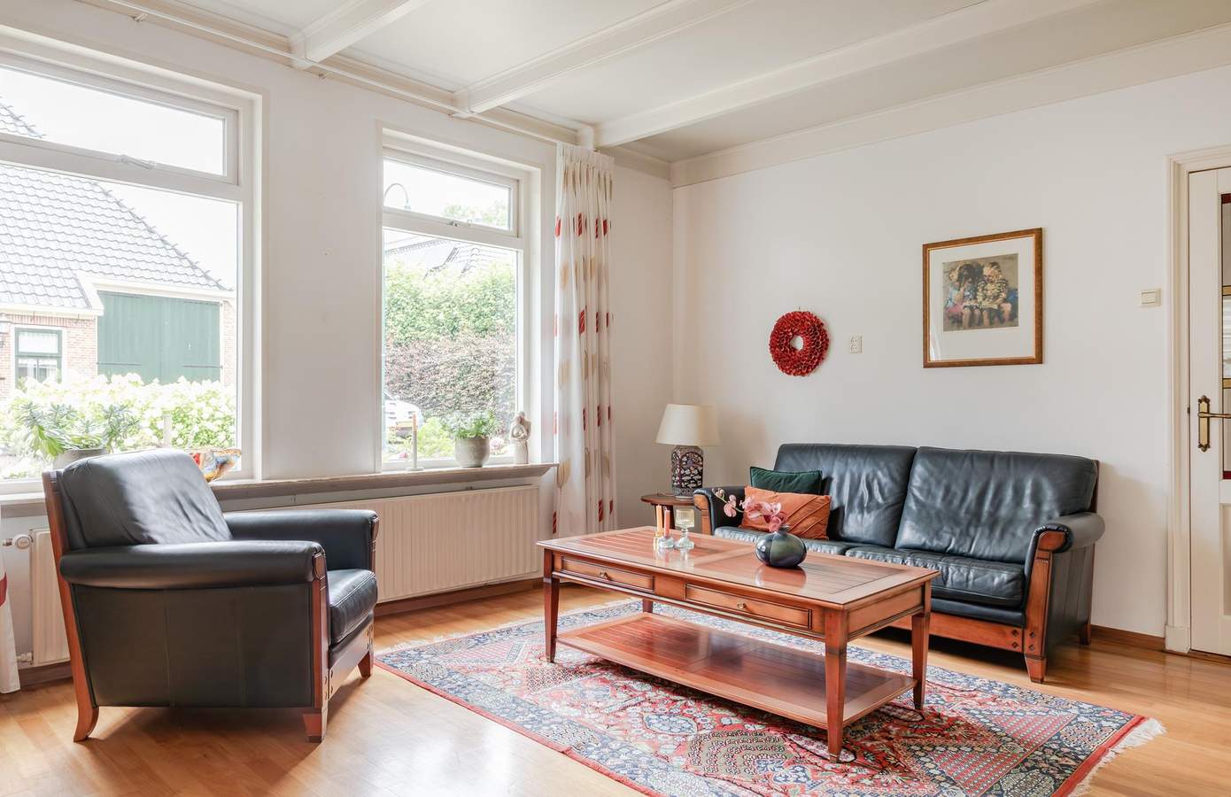 Binnenkomen in deze woning voelt als thuis! De warme, landelijke sfeer is direct voelbaar: een houten vloer, een klassieke haard en een knusse zithoek vormen het hart van de boerderij. De grote raampartijen in zowel de woonkamer als de keuken, zorgen voor een prettige lichtinval. De keuken is eenvoudig maar functioneel, met uitzicht op de Dorpsstraat — precies zoals het ooit bedoeld was. Op de begane grond bevinden zich, naast de woonkamer, twee slaapkamers, een badkamer en een praktische bijkeuken. Op de verdieping treft u nog twee charmante slaapkamers en een royale tweede badkamer met ligbad. De indeling is overzichtelijk en degelijk, met volop mogelijkheden voor een nieuwe invulling. De ruime dars en schuur vormen een waardevolle uitbreiding van het geheel. Hier stonden ooit koeien langs de riggel, nu ideaal voor klussen of opslag, maar ook zeer geschikt om bij het woongedeelte te betrekken. In de visualisaties ziet u hoe deze karakteristieke ruimtes naadloos kunnen worden geïntegreerd in het wooncomfort.