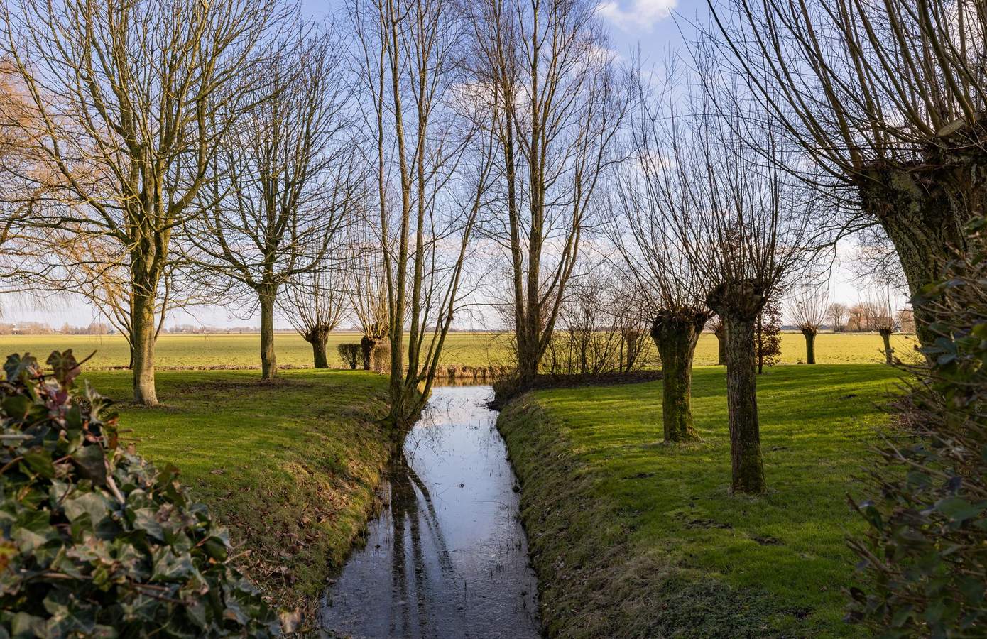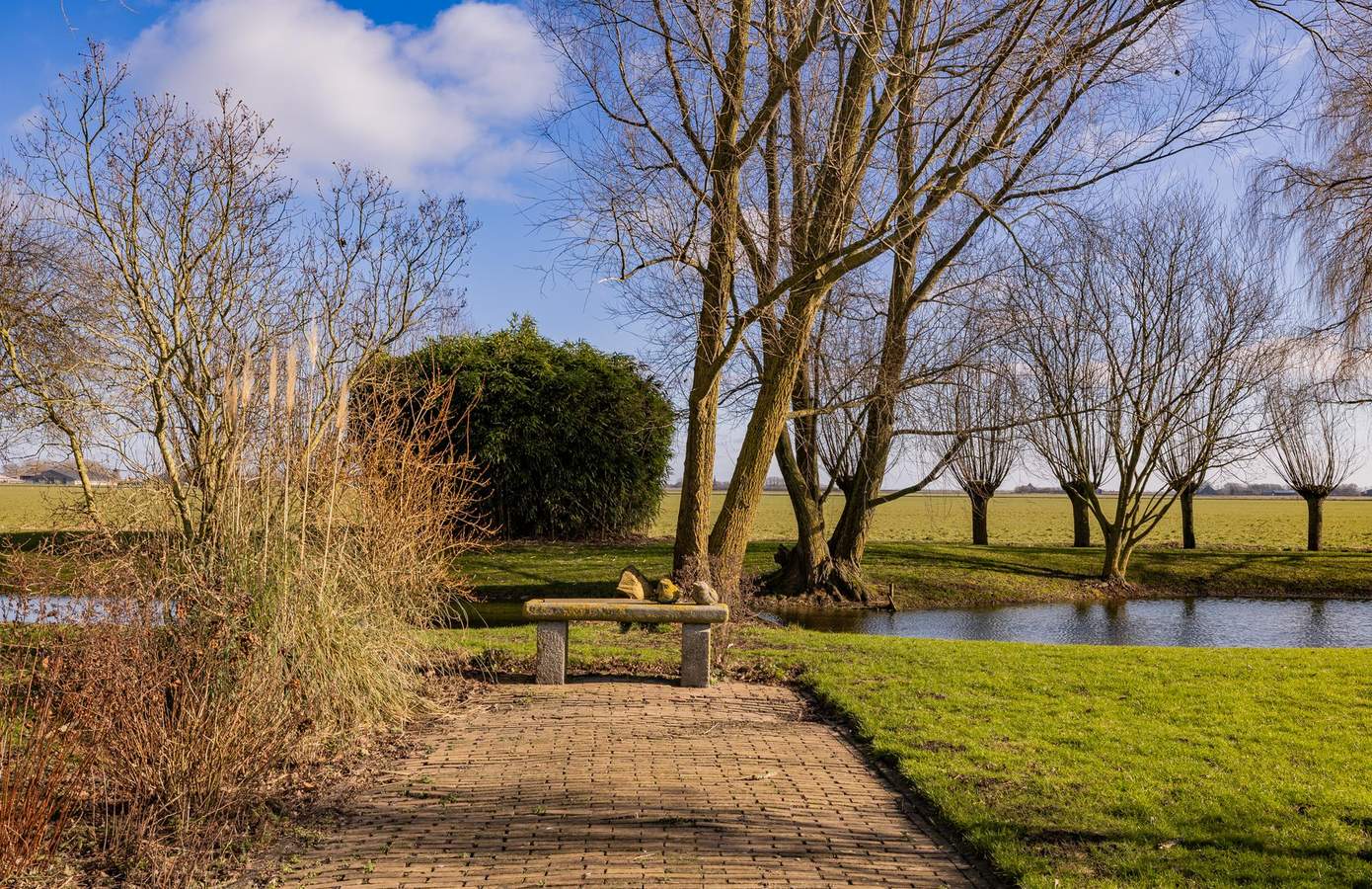 Als u het erf op rijdt is via de brug is de eerste ca. 15 meter mandelig met de achtergelegen stolp (Notweg 2). Samen maakt u gebruik van de oprit en bent u verantwoordelijk voor het onderhoud. De tuin is met zorg aangelegd, met gazons, volwassen bomen, een boomgaard met fruitbomen en natuurlijke waterpartijen die het licht en de luchten weerspiegelen. Elzen, populieren en knotwilgen omzomen het perceel en zorgen voor beschutting en privacy, terwijl doorkijkjes juist het weidse landschap benadrukken. Verspreid over het perceel bevinden zich meerdere plekken om te zitten, te genieten van de zon of juist de schaduw op te zoeken. Er is een monumentale gasbron die herinnert aan het agrarische verleden van deze plek. Hier woont u op uw eigen omsloten domein van rust, door water en natuur, met rondom het uitgestrekte Noord-Hollandse landschap als adembenemend decor.