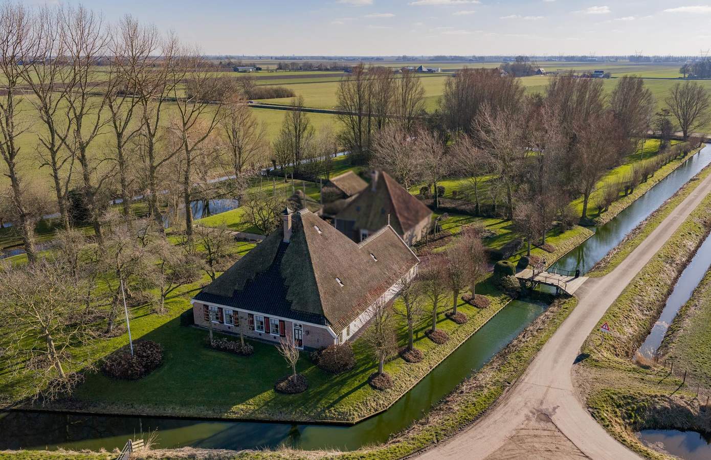 Daar waar de Noordschermerdijk en de Notweg samenkomen, ligt een uniek perceel midden in het open polderlandschap. Aan de voorzijde van dit bijzondere geheel staat de Rijksmonumentale stolphoeve ’t Hoeveke, een markante verschijning met een rijke historie die teruggaat tot 1770. De uitstraling is direct indrukwekkend. De voorgevel is verfijnd uitgevoerd met metselwerk in kruisverband en een ambachtelijke knipvoeg, subtiele details die het geheel een zekere elegantie geven. Het donkere trasraam, de sierlijke gevelankers en de getoogde kozijnen met roedeverdeling versterken het authentieke karakter. De karakteristieke rouw- en trouwdeur met gietijzeren rooster en levensboom vormt daarbij een bijzonder en symbolisch element. Omgeven door water, groen en weidsheid ervaart u hier rust, ruimte en historie in haar meest pure vorm. Tegelijkertijd is het comfort volledig van deze tijd: de stolp is gasloos, voorzien van een warmtepomp en beschikt over een energielabel A. Een zeldzame combinatie van monumentale klasse en duurzaam wonen.