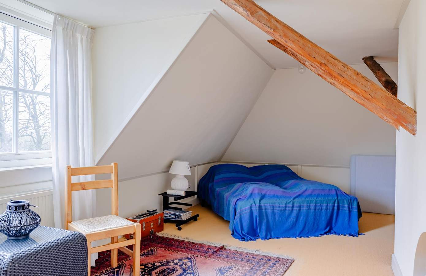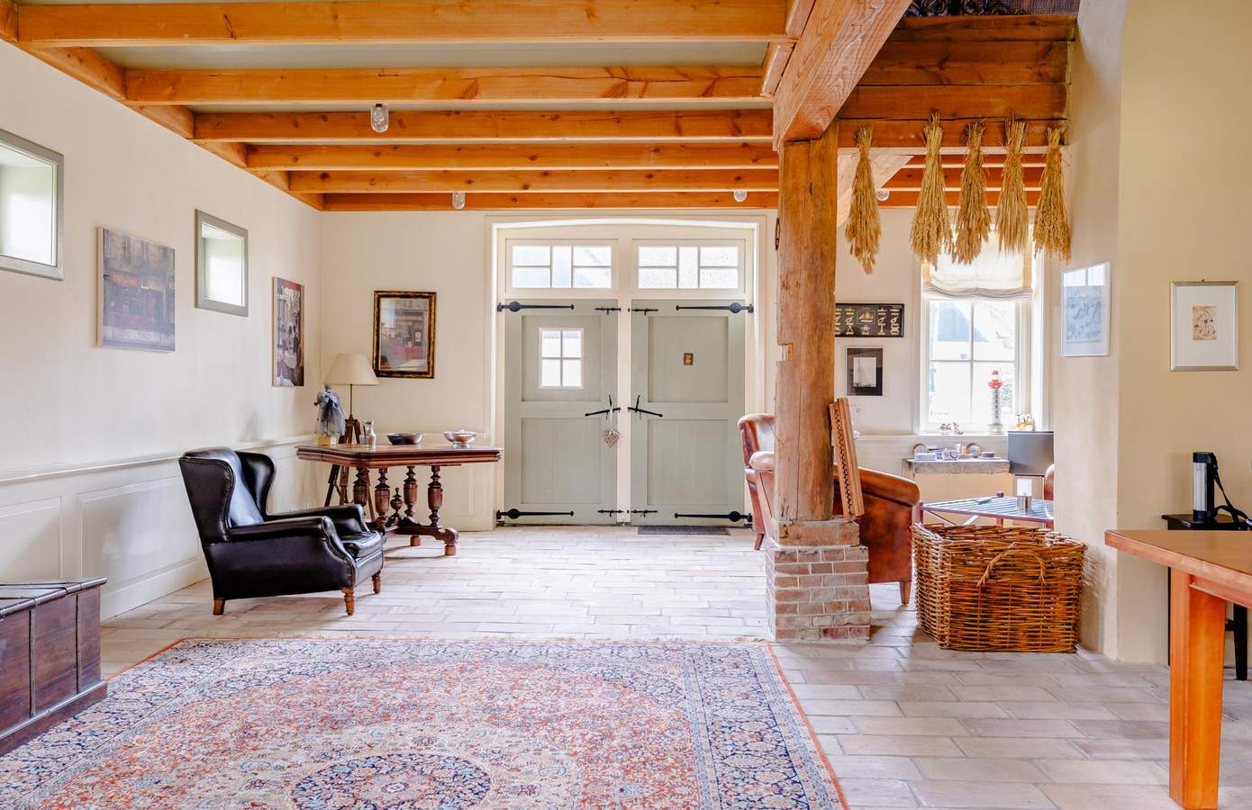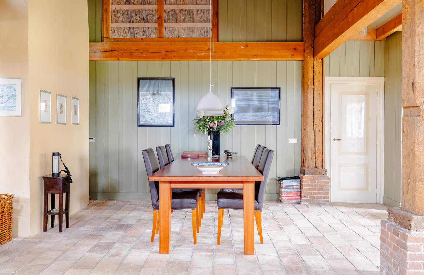 Achter op het erf bevindt zich de tweede monumentale stolp, jarenlang in gebruik geweest als gastenverblijf en werkruimte. Ook hier is de constructie prachtig zichtbaar gebleven. De authentieke gebinten, houten balklagen en het zicht op het rietbeschot laten de ambacht van weleer zien. Op de begane grond is een royale verblijfsruimte aanwezig. Er is een compacte keukenopstelling aanwezig evenals sanitair, waardoor zelfstandig gebruik mogelijk is. Op de verdieping is een slaapkamer aanwezig. Deze kamer is aan de achterzijde gelegen en heeft een dakkapel. Daarnaast is ook in deze stolp nog eens 56 m² naar wenst in te delen ruimte aanwezig. Dankzij de indeling en aanwezige voorzieningen is deze stolp ook uitermate geschikt als gastenverblijf, atelier, kantoor aan huis of mantelzorgruimte. Een volwaardige tweede stolp op het erf, met eigen identiteit, volop mogelijkheden en dezelfde monumentale uitstraling als de stolphoeve.