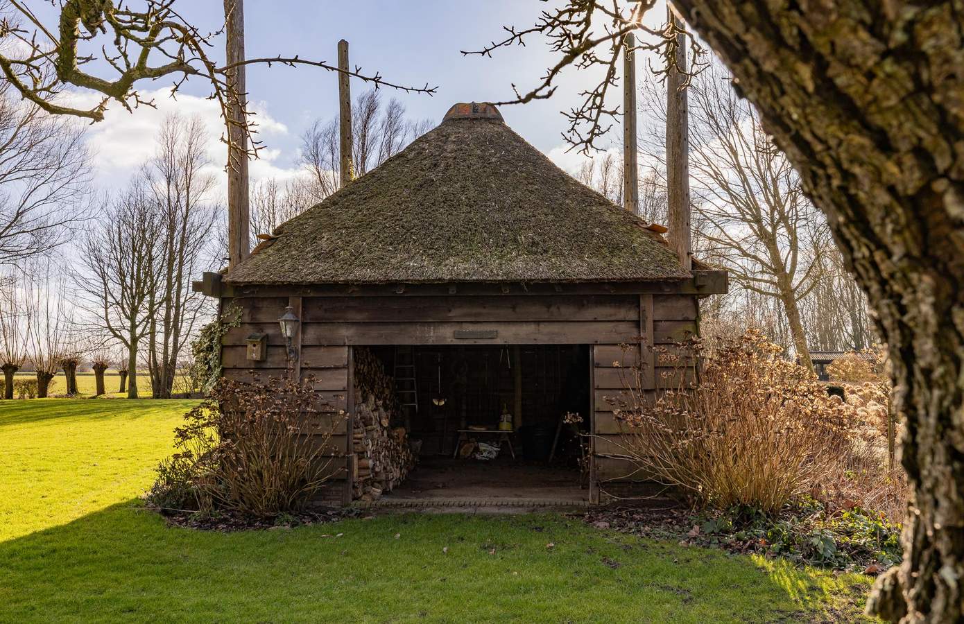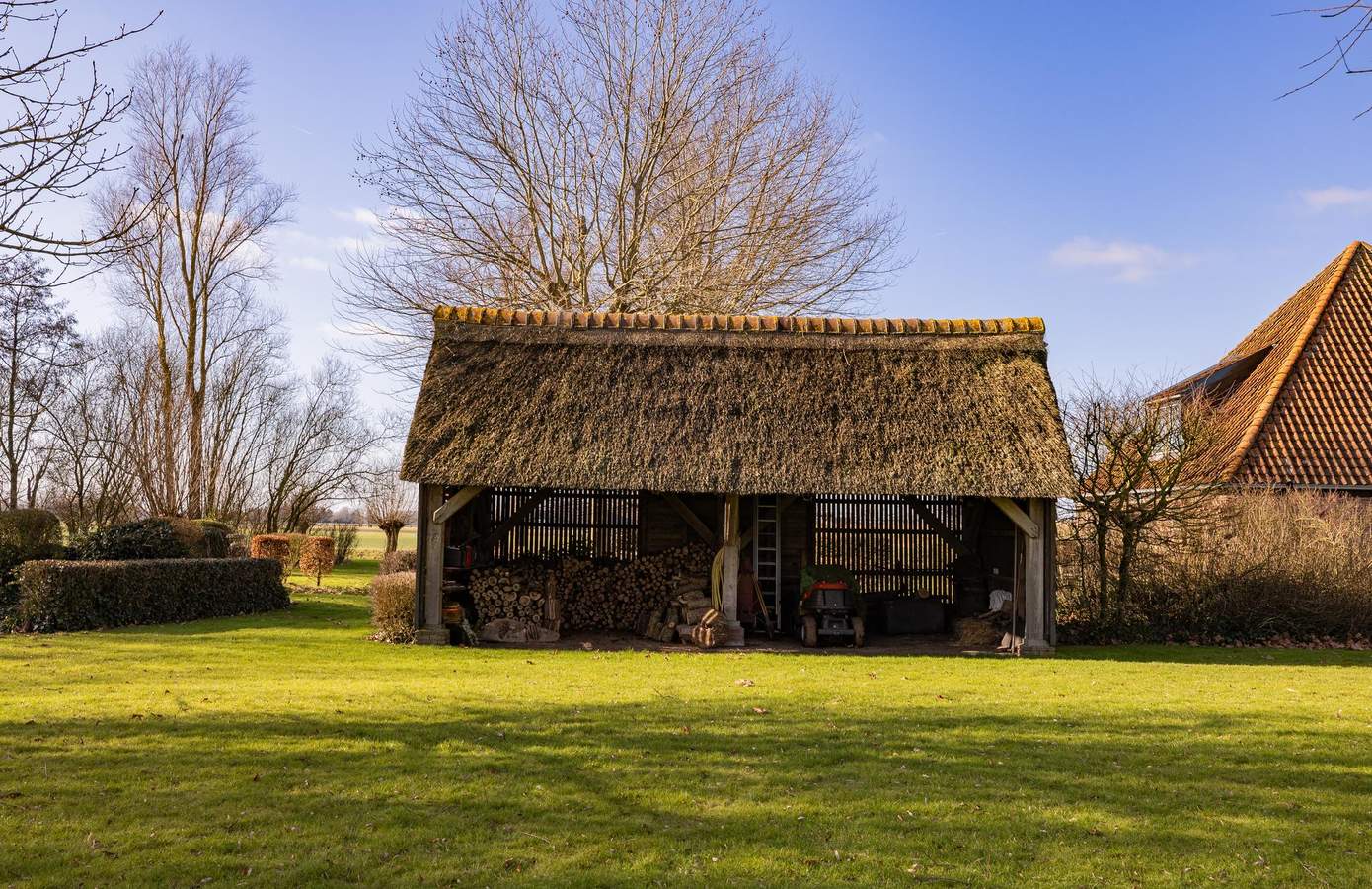 Verscholen op het achterste deel van dit unieke perceel, omringd door groen, water en volwassen bomen, ligt de Rijksmonumentale stolp ’t Heerenhuys. Een plek met een geheel eigen sfeer, waar privacy en rust vanzelfsprekend zijn en het landschap zich rondom u ontvouwt. Deze stolp heeft een eigen identiteit en uitstraling, los van het voorhuis, en biedt daarmee de mogelijkheid tot zelfstandig gebruik. De parkachtige aanleg met glooiende gazons en volwassen beplanting zorgt voor een bijna landgoedachtige beleving. Tegelijkertijd is ook hier het wooncomfort volledig eigentijds: gasloos, voorzien van een warmtepomp en met een energielabel A. Een zeldzame plek waar historie, natuur en vrijheid samenkomen, met alle ruimte om het leven op eigen wijze vorm te geven.