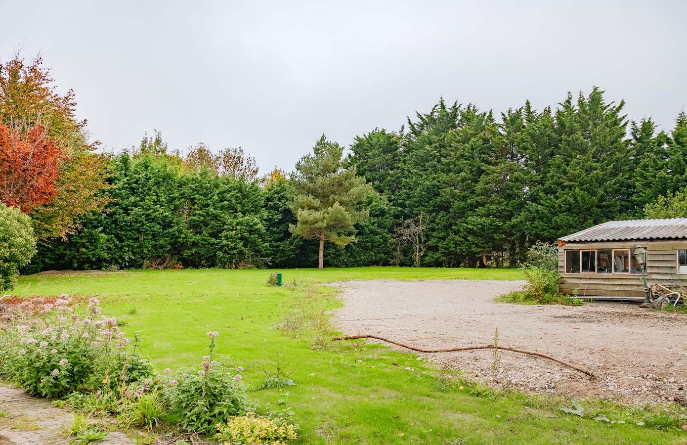 Rondom de stolp ligt nu een open erf. Tot voor kort stonden hier diverse oude schuren, maar zijn inmiddels gesloopt. Daardoor is er een zee aan ruimte ontstaan om een prachtige tuin te realiseren, met eventueel een nieuwe schuur, een veranda, een overkapping of een andere eigentijdse toevoeging die het buitenleven versterkt. De grootte van het perceel maakt uiteenlopende woonwensen mogelijk: van tuinarchitectuur tot een buitenkeuken of atelier. Tussen de stolp en de naastgelegen bouwkavel zal een recht van overpad worden gevestigd vanaf de brug, zodat beide percelen zelfstandig kunnen komen en gaan naar de openbare weg.