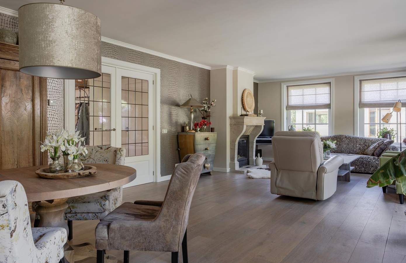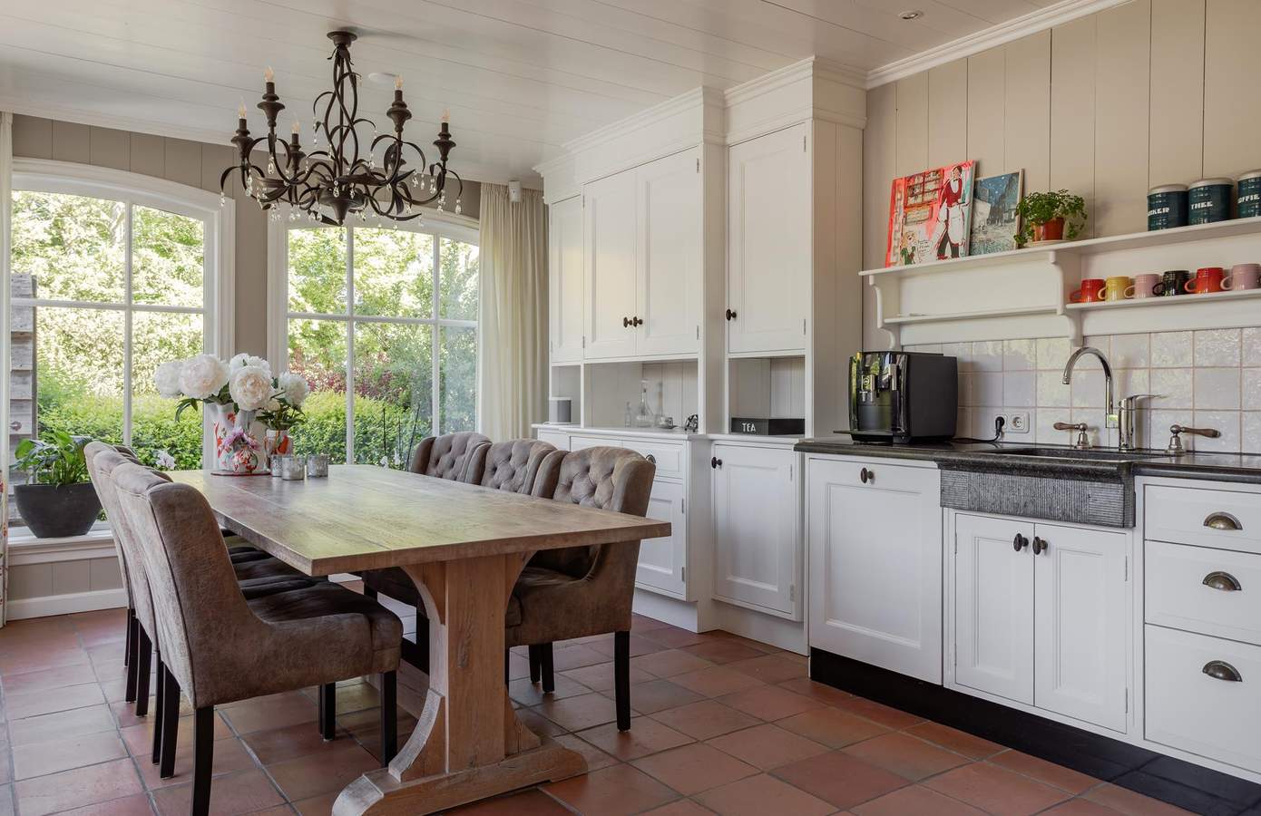 Eenmaal binnen wordt u verwelkomd door een zee aan daglicht die via de hoge boerderijramen en dubbele tuindeuren de woonkamer binnenstroomt. De sfeervolle houtkachel zorgt voor extra gezelligheid op koelere avonden. Aangrenzend bevindt zich de tuingerichte woonkeuken. Deze landelijke keuken is handgemaakt en voorzien van een Belgisch hardstenen werkblad en vloerverwarming. De werkkamer aan de voorzijde biedt volop mogelijkheden voor kantoor aan huis of levensloopbestendig wonen. Op de verdieping van de stolp beschikt u over drie ruime slaapkamers en een stijlvolle badkamer. De bergzolder boven de stolp bereikt u via een vlizotrap. Helemaal bijzonder is de kapberg: hier vindt u naast de dubbele garage op de begane grond, op de eerste verdieping een slaapkamer met eigen badkamer en-suite, een ruime inloopkast en een panoramisch uitzicht over uw parkachtige perceel. De tweede verdieping is in totaal 37 m² groot en biedt de mogelijkheid om nog volledig naar wens te worden ingedeeld.