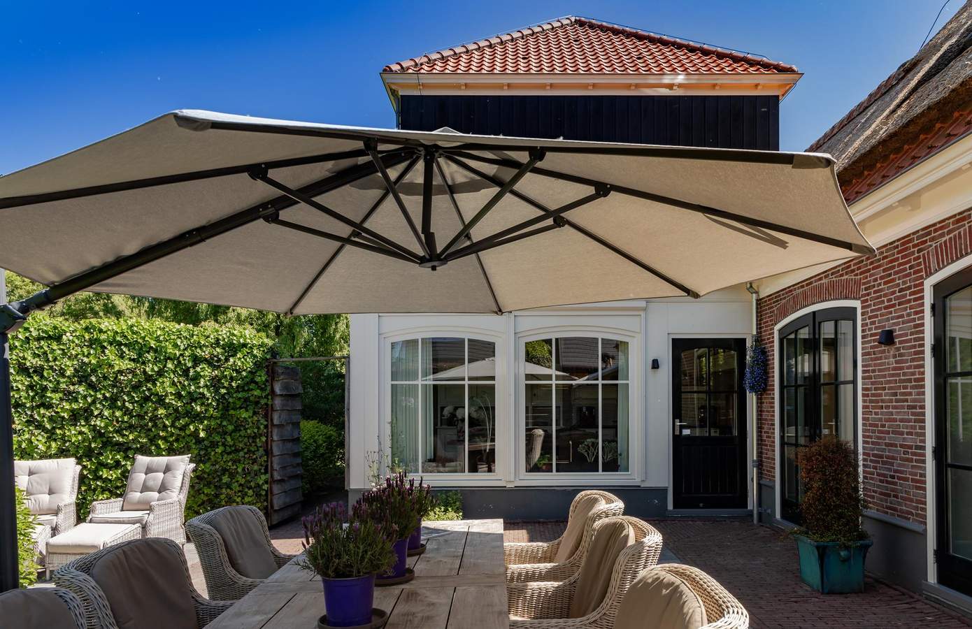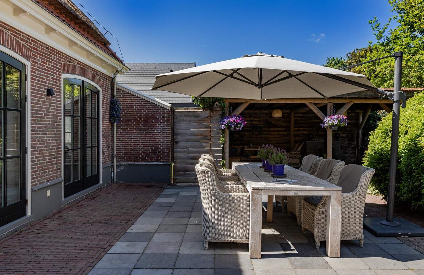 De onder architectuur aangelegde tuin voelt als een privépark. Een volwassen bomensingel omsluit het perceel, terwijl het grote zonneterras, de sfeervolle overkapping en de vijver met waterlelies samen een idyllisch decor vormen voor buitenleven in alle seizoenen. Dankzij een beregeningsinstallatie met sproeiers en diverse elektrapunten onderhoudt u de tuin moeiteloos. Parkeren kan ruim op eigen erf: in de dubbele garage, onder de vrijstaande carport met plek voor twee auto’s of op de sierlijke oprit. Voor tuinliefhebbers is er bovendien een aangebouwde berging: ideaal voor gereedschap en hobby’s.