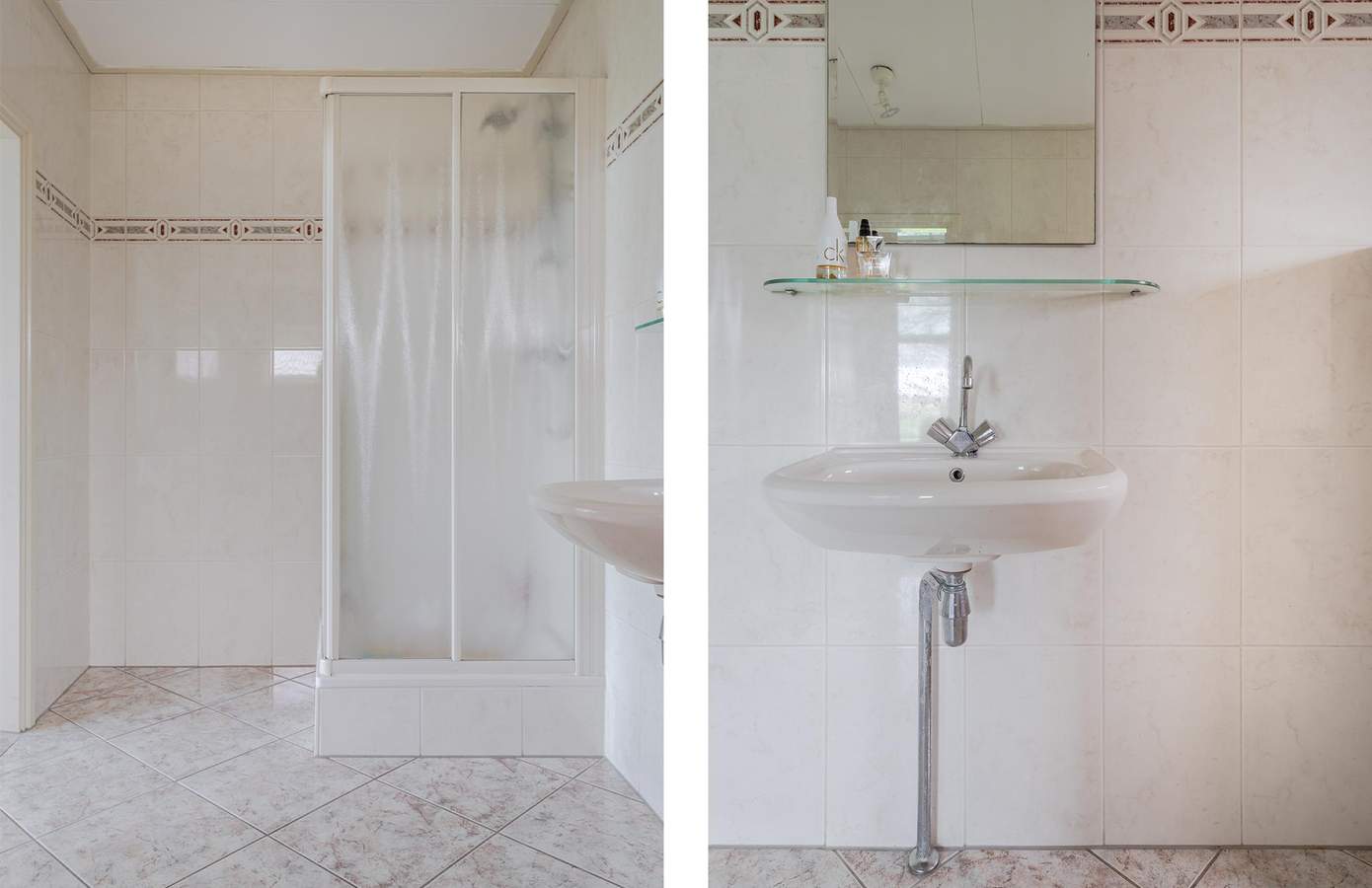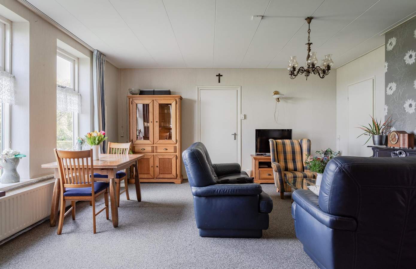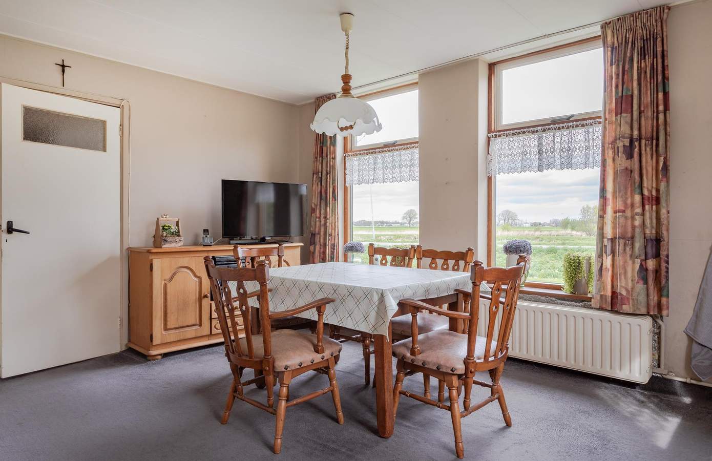 De entree herbergt een bedstee met daaronder een kelder. De woonkamer met een prachtig uitzicht over het polderlandschap bevindt zich aan de rechterzijde van de boerderij. Hier vindt u tevens nog twee originele bedstedes, momenteel in gebruik als kasten en een schouw met een elektrische kachel, die voor extra warmte en sfeer zorgt. Grenzend aan de woonkamer bevindt zich een slaapkamer met een en-suite badkamer, compleet met ligbad, douche, toilet, wastafel en vloerverwarming.