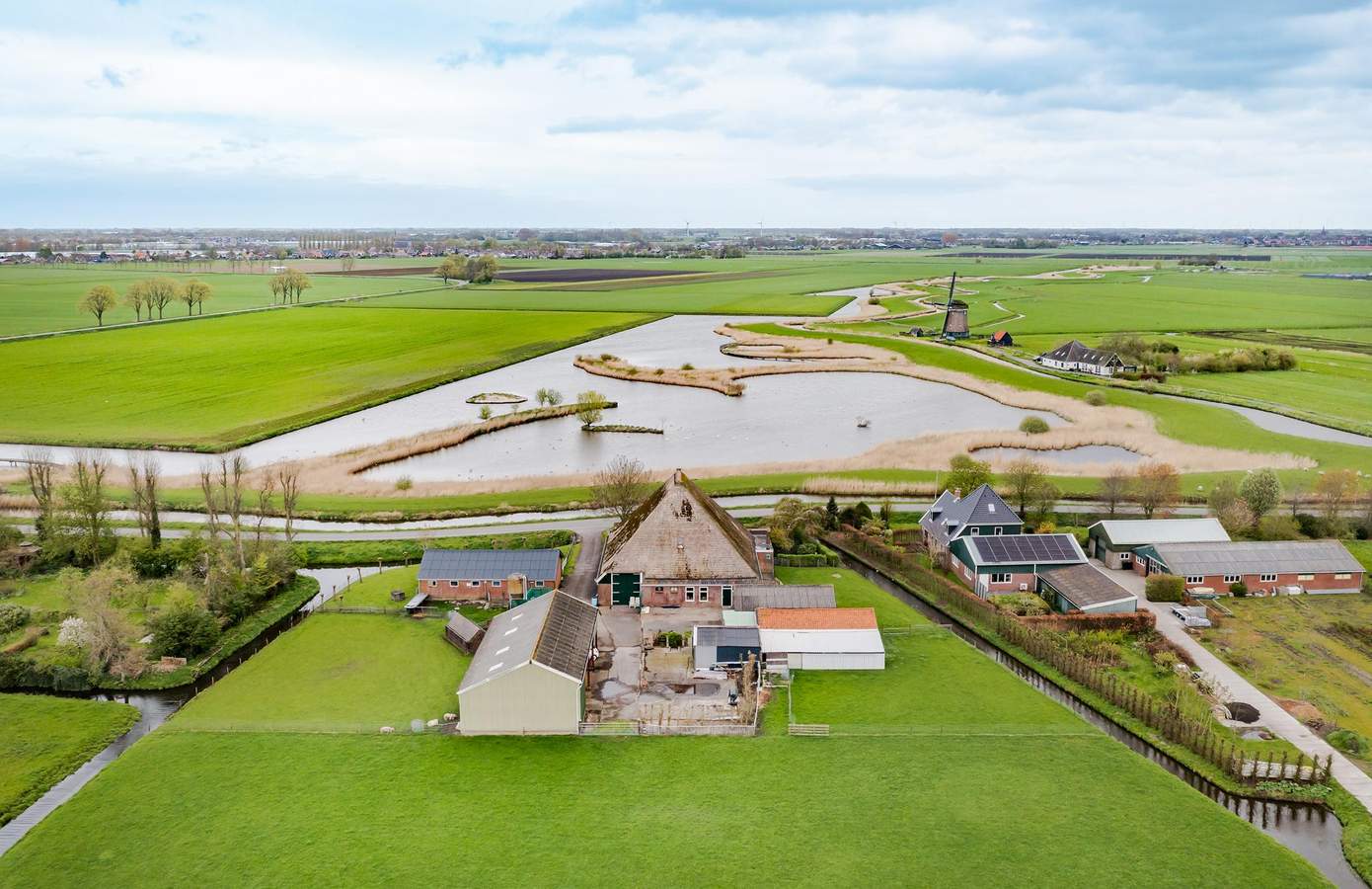 Omringd door de schoonheid van het Hollandse landschap, met bloeiende tulpen voor de deur, grazende schapen en het serene uitzicht op een Oud-Hollandse molen, bevindt zich deze vrijstaande boerderij met een flinke afmeting van circa 20 bij 20 meter op een perceel van ruim 1 hectare. De karakteristieke dakspiegel en de ronde schoorsteen accentueren de authentieke uitstraling, terwijl binnenin de oorspronkelijke details, zoals de originele bedstedes en de stallen in de stolp u mee terugnemen naar een vervlogen tijdperk.