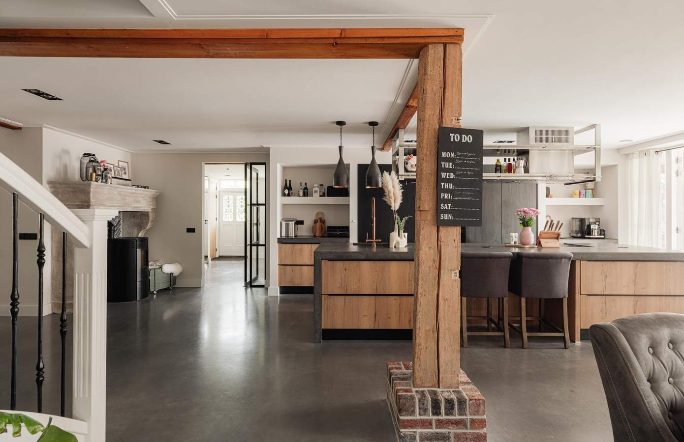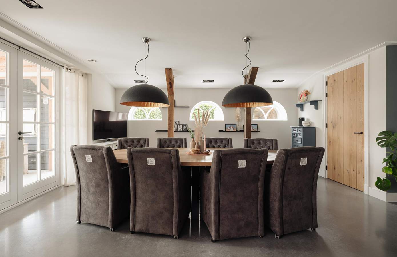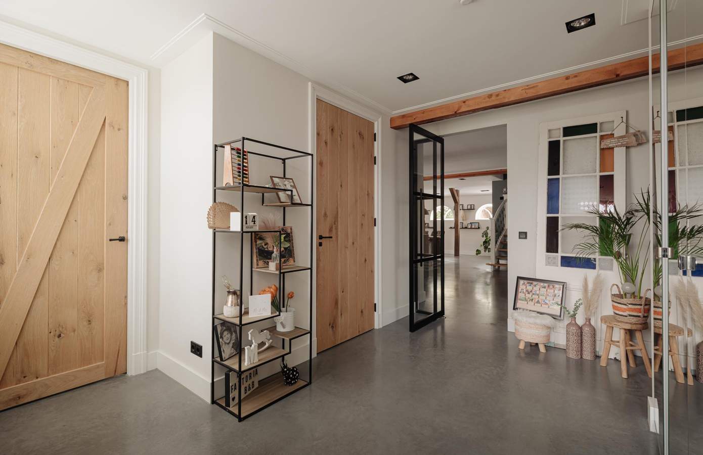 Bij binnenkomst valt direct de stijlvolle afwerking op: een ruime hal met houten deuren en een stalen taatsdeur naar de woonkeuken. Vanuit hier zijn de gym met stoomcabine, het toilet en de sfeervolle leefruimten bereikbaar. De royale woonkeuken vormt zonder twijfel het kloppend hart van de stolp. Hier komen koken en samenzijn op natuurlijke wijze samen. Dankzij de openslaande deuren naar de veranda met aangrenzend de tuin wordt binnen naadloos verbonden met buiten. De sfeervolle woonkamer aan de voorzijde ademt karakter en comfort, met robuuste schouw en de houtkachel, veel lichtinval. Tot slot is er een gezellige speelkamer, deze kamer kan ook natuurlijk ook uitstekend dienst doen als werk-/kantoorruimte. De gym aan de achterzijde heeft een eigen deur naar de veranda.