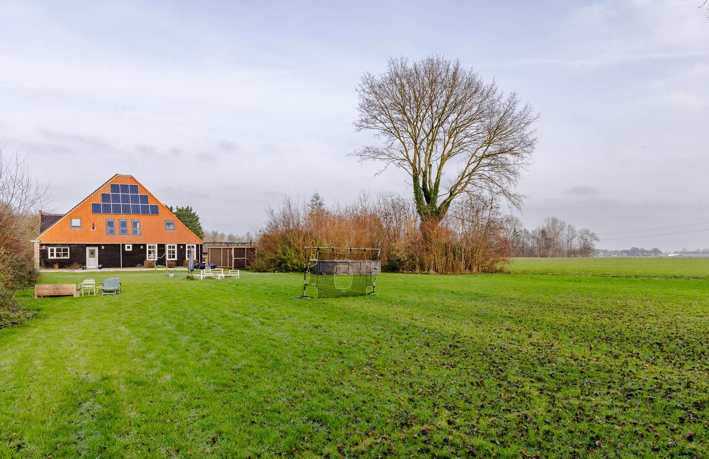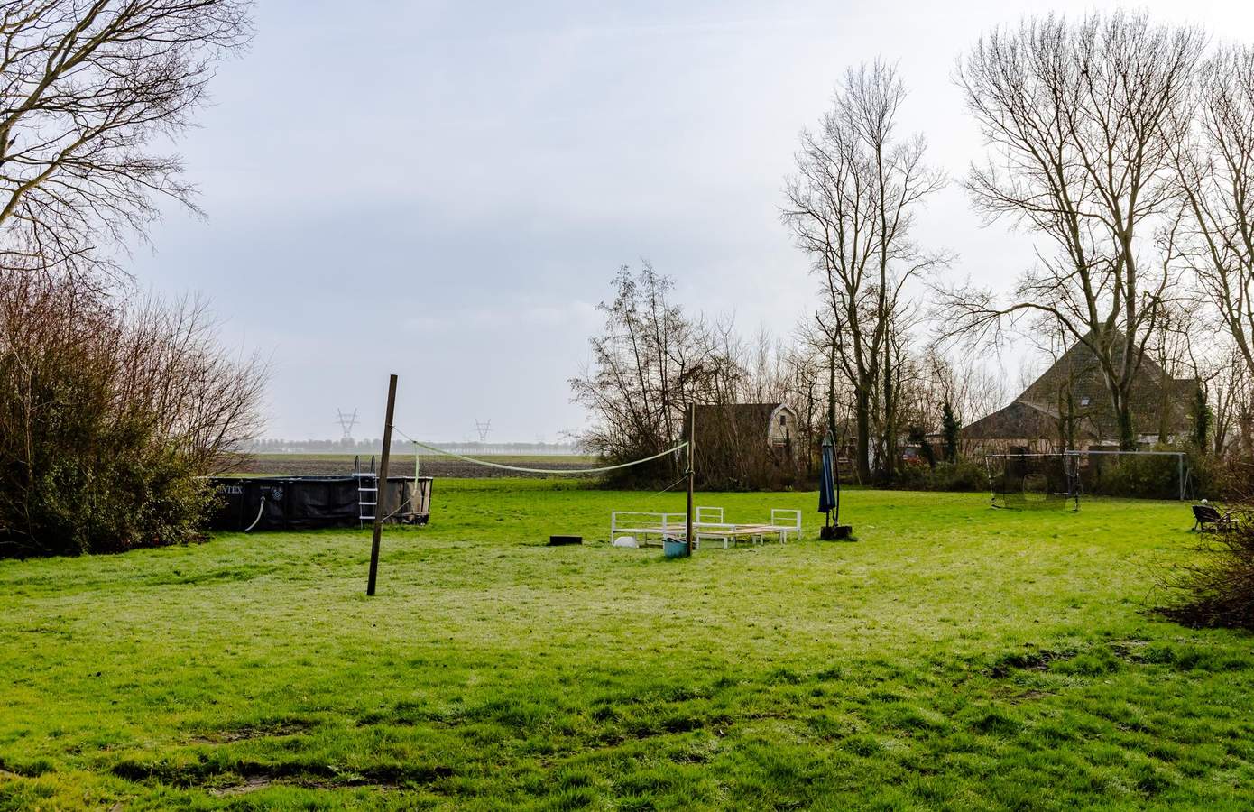 U arriveert op het ruime erf, waar parkeren met meerdere auto’s mogelijk is. Rondom de woonboerderij ontvouwt zich een tuin die u volledige vrijheid biedt, een perceel met meerdere sferen, elk met een eigen beleving. Aan de achterzijde strekt het gazon zich uit richting de polder. Hier kijkt u vrij weg over het open landschap en geniet u van de zon van ’s ochtends vroeg tot in de avond. Aan de noordzijde ligt de boomgaard, met onder andere peer-, appel-, pruimen- en kersenbomen. Deze voegt een natuurlijke, bijna vanzelfsprekende charme toe en maakt het buitenleven hier tastbaar en seizoensgebonden. De oostzijde van het perceel is ingericht als een fijne tuin om te ontspannen met een betegeld terras. Aan de westzijde bevindt zich een langgerekt veld dat volop mogelijkheden biedt. Hier is ruimte voor spelende kinderen, een zwembad, sport en recreatie of wellicht zelfs het realiseren van een kleinschalige invulling, geheel naar eigen wens.