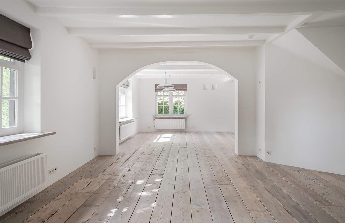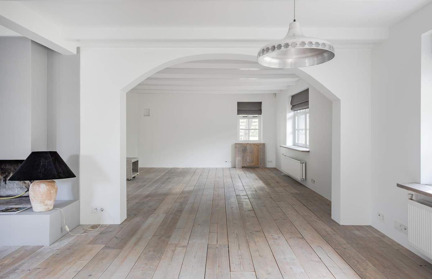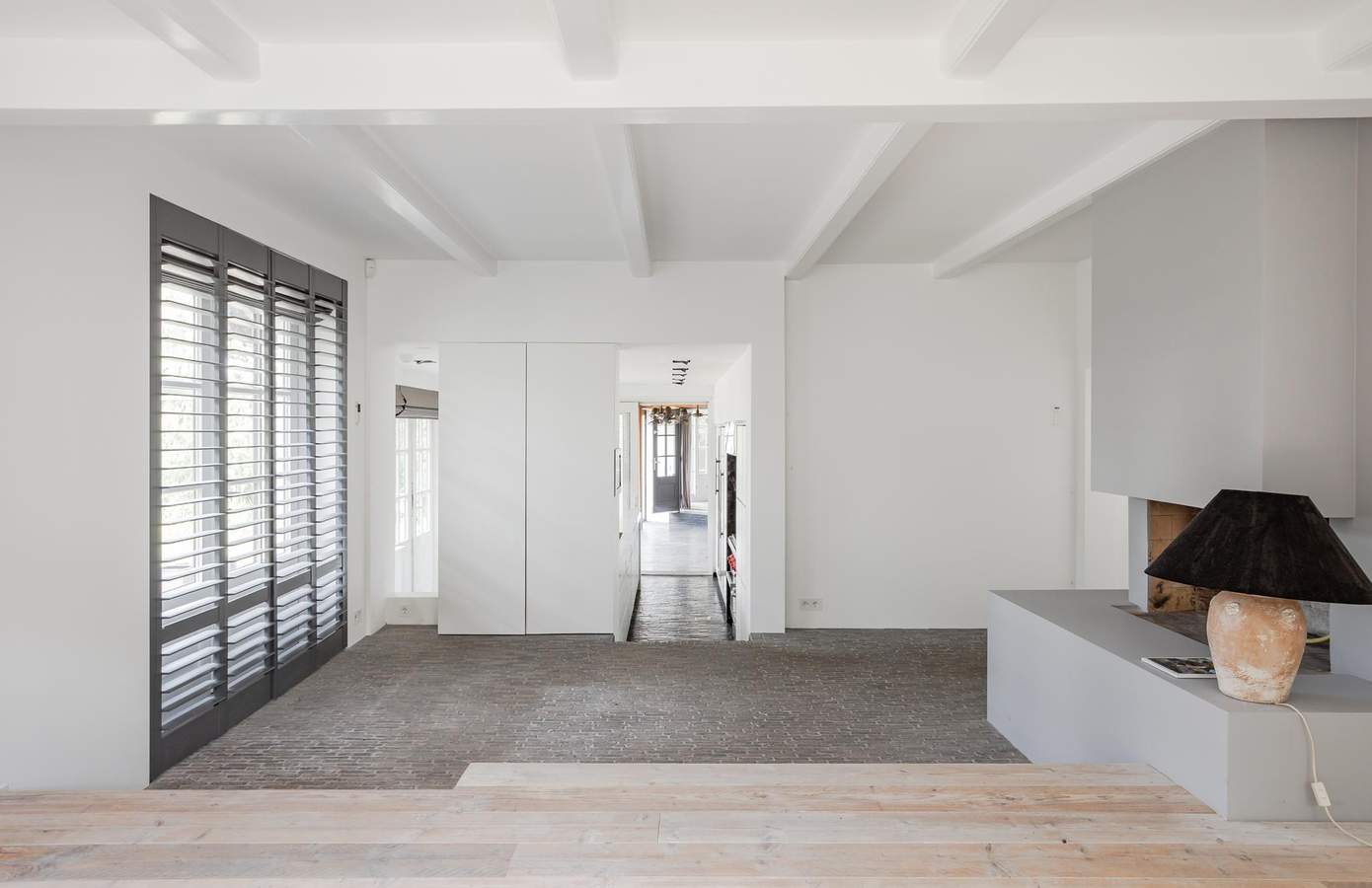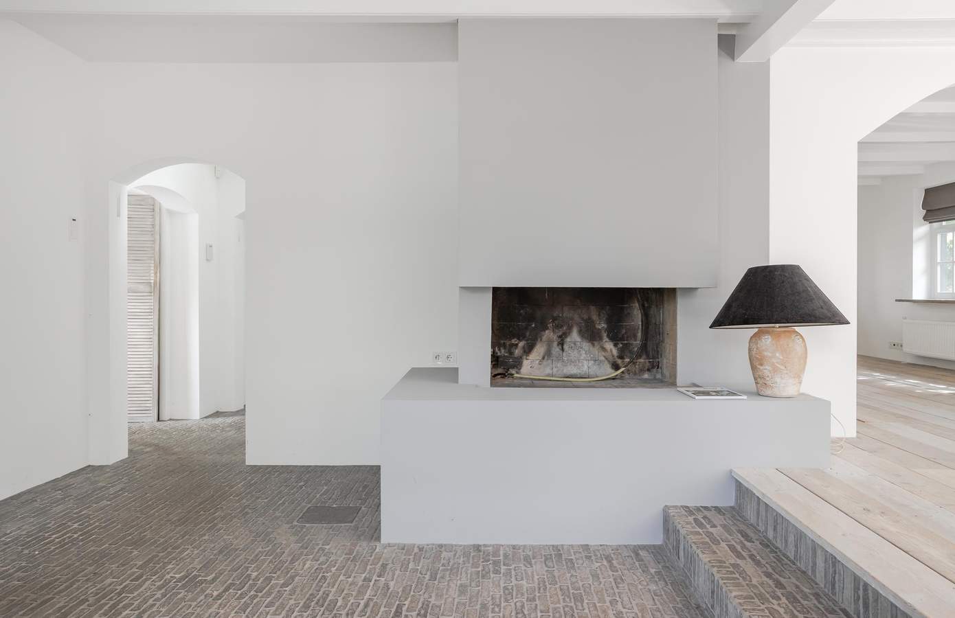 Bij aankomst in de boerderij wordt u direct verwelkomd door de karakteristieke uitstraling van het huis. De landelijke stijl komt duidelijk naar voren in de indeling en afwerking van de woning. Via de ruime entree heeft u toegang tot de slaapkamer op de begane grond, een apart toilet en een stijlvolle betonnen trap die leidt naar de bovenverdieping. Deze ruimte onderscheidt zich door het opmerkelijke hoogteverschil: aan de rechterkant bevindt zich de lagergelegen keuken, terwijl aan de linkerkant de woonkamer zich op een hoger niveau bevindt. Dit zorgt voor een dynamische en unieke ruimtelijke beleving.