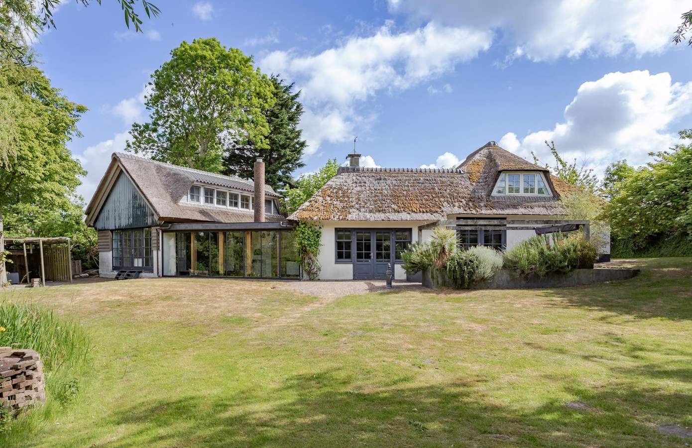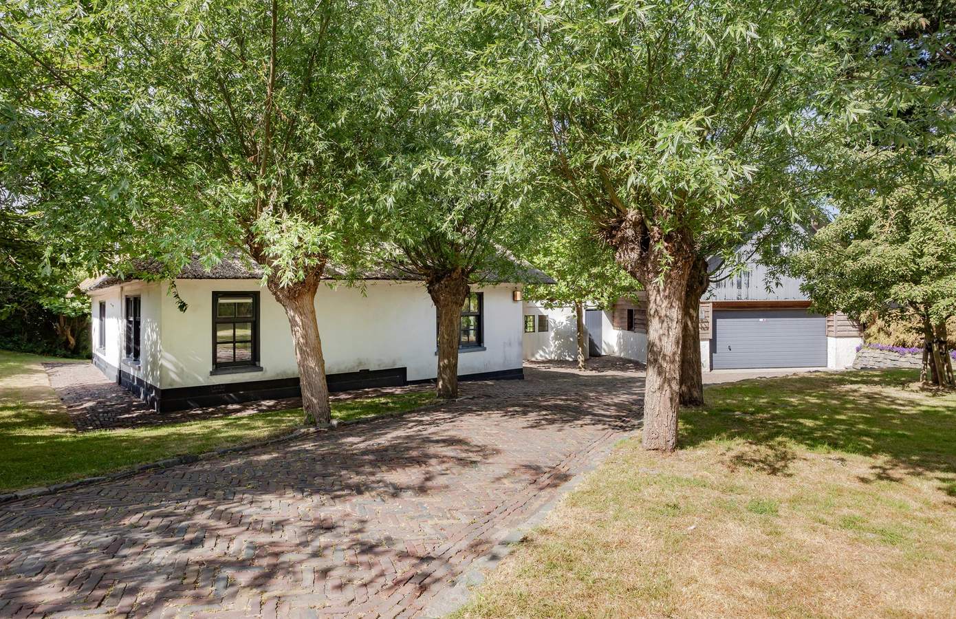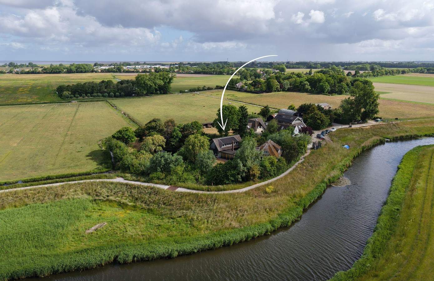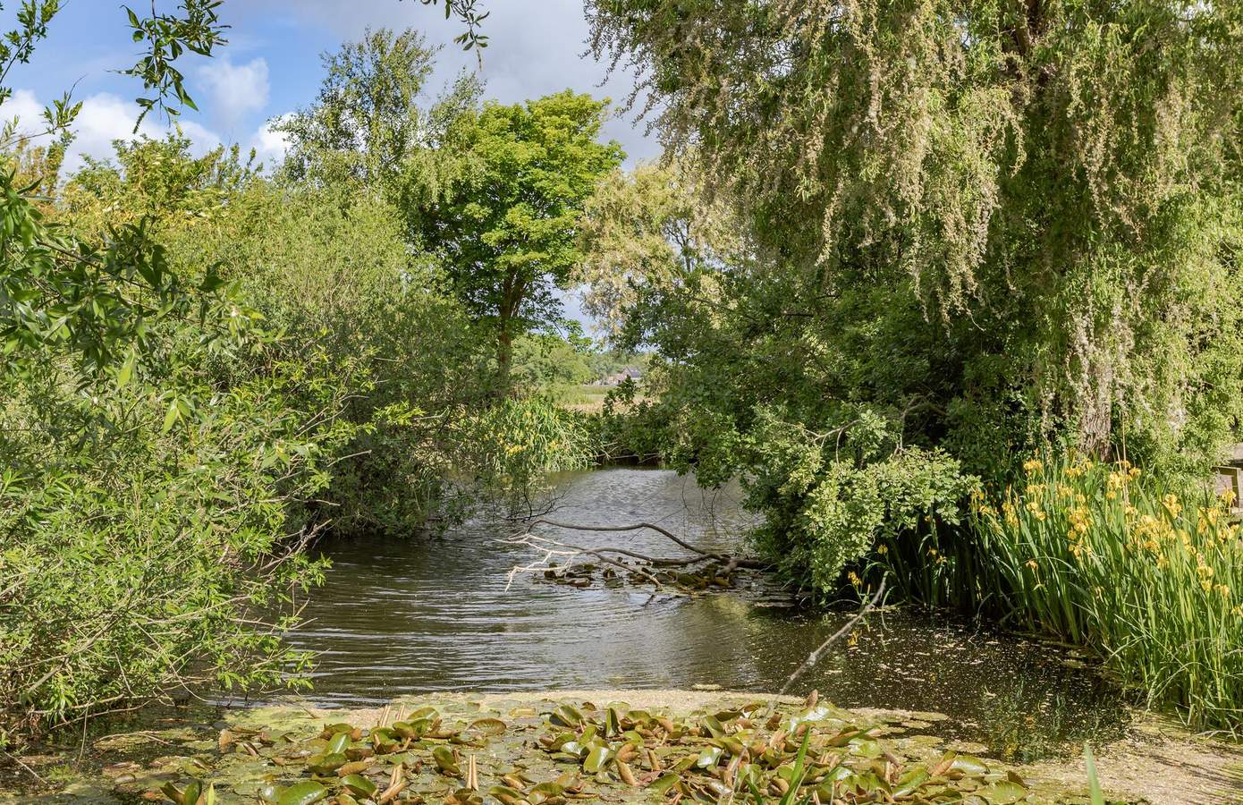 Het buitenleven begint eigenlijk al vóór de poort, waar u kunt genieten van eindeloze vergezichten over de polder. De woning grenst aan een prachtig wandel- en fietspad. Eenmaal door de poort wordt de lange oprijlaan omlijst door fraaie knotwilgen, en vindt u er ook prachtige perenbomen.