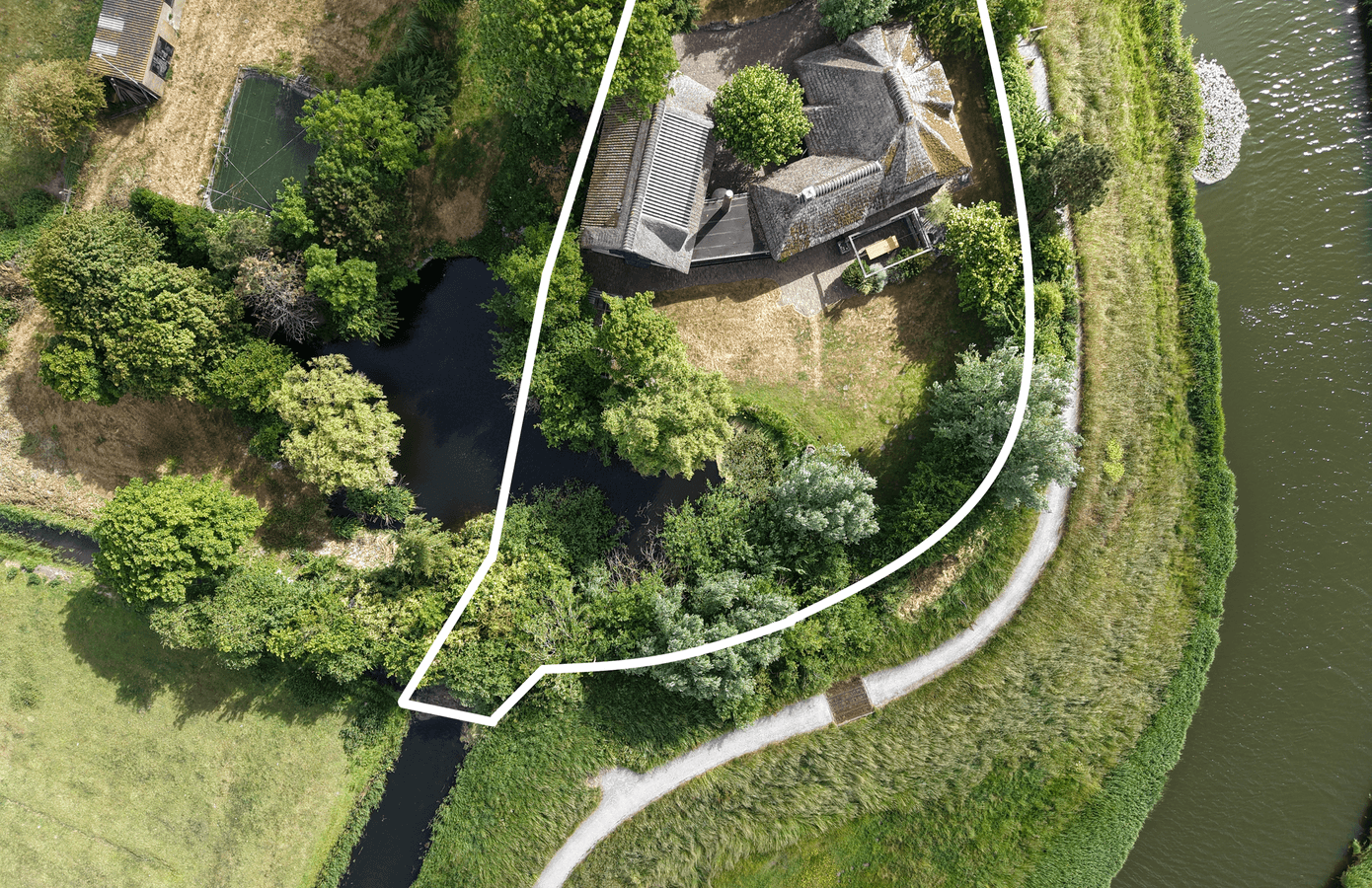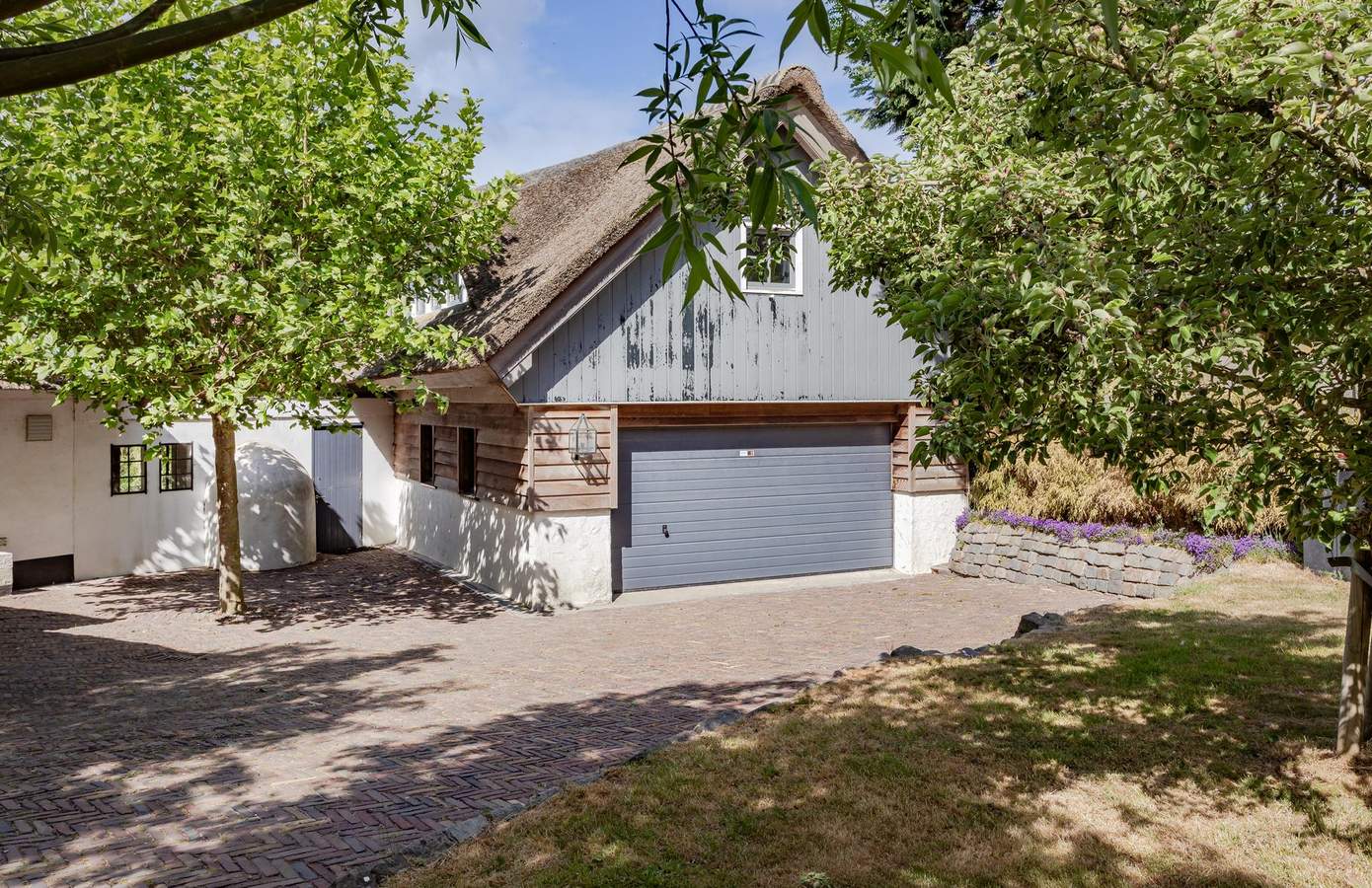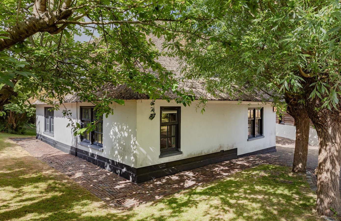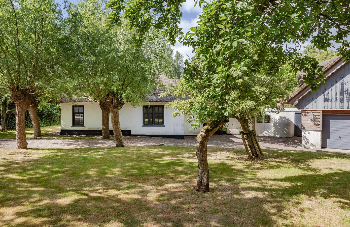 Het buitenleven begint eigenlijk al vóór de poort, waar u kunt genieten van eindeloze vergezichten over de polder. De woning grenst aan een prachtig wandel- en fietspad. Eenmaal door de poort wordt de lange oprijlaan omlijst door fraaie knotwilgen, en vindt u er ook prachtige perenbomen.