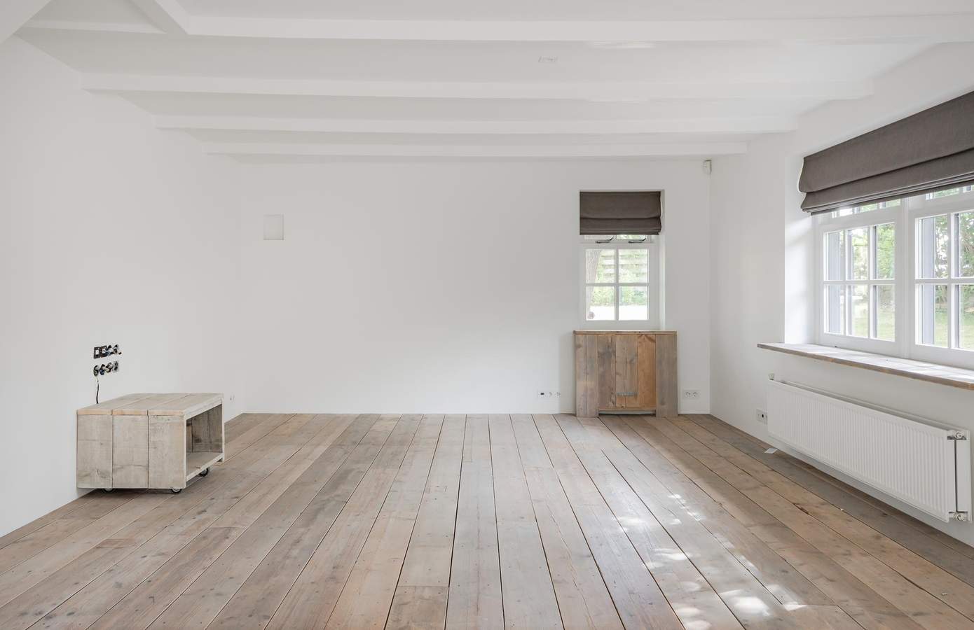 Aan de andere zijde van het gebouw bevindt zich op de begane grond een dubbele garage met roldeur, geschikt voor twee auto’s. Deze ruimte is bij uitstek ideaal voor hobbyisten die graag klussen. De veelzijdigheid, het comfort en de functionaliteit maken het bijgebouw tot een waardevolle aanvulling op de woning.