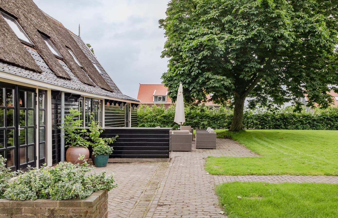 De tuin van ‘Oôs Thuis’ biedt een prachtig uitzicht en wordt omringd door volwassen bomen, met een terras bij de woning en een grote kastanjeboom voor schaduw. Deze ruime buitenruimte biedt tal van mogelijkheden, van een speelhoek met trampoline voor de kinderen tot een veranda met buitenkeuken. Bovendien is er voldoende ruimte voor een bijgebouw. Deze kan voorzien worden van zonnepanelen, wat extra duurzaamheid toevoegt aan uw nieuwe thuis.