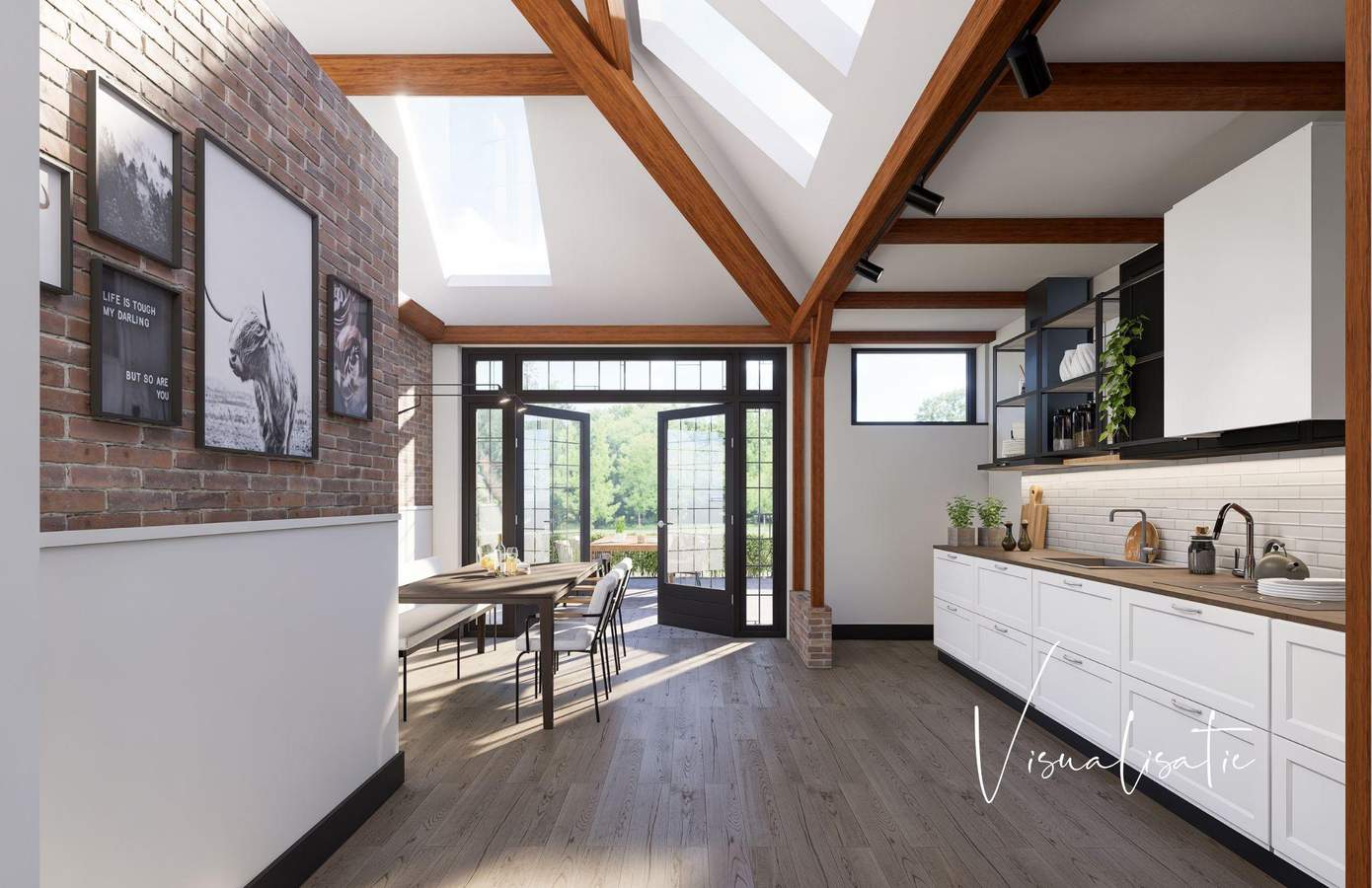 Authentiek en idyllisch – zodra u over de drempel stapt, voelt u het. De sfeer van vroeger, de warmte van een thuis waar generaties lang met liefde is gewoond. In het voormalige voorhuis vindt u een sfeervolle woonkamer en keuken, waar het gezin samenkwam. Met vier slaapkamers en een badkamer is er volop plek voor het hele gezin. De karakteristieke dars vormt de verbinding tussen het woongedeelte en de aangrenzende schuren. De open zolder biedt talloze mogelijkheden om extra kamers te realiseren – een atelier, werkruimte of extra slaapkamers, wat uw droom ook is.