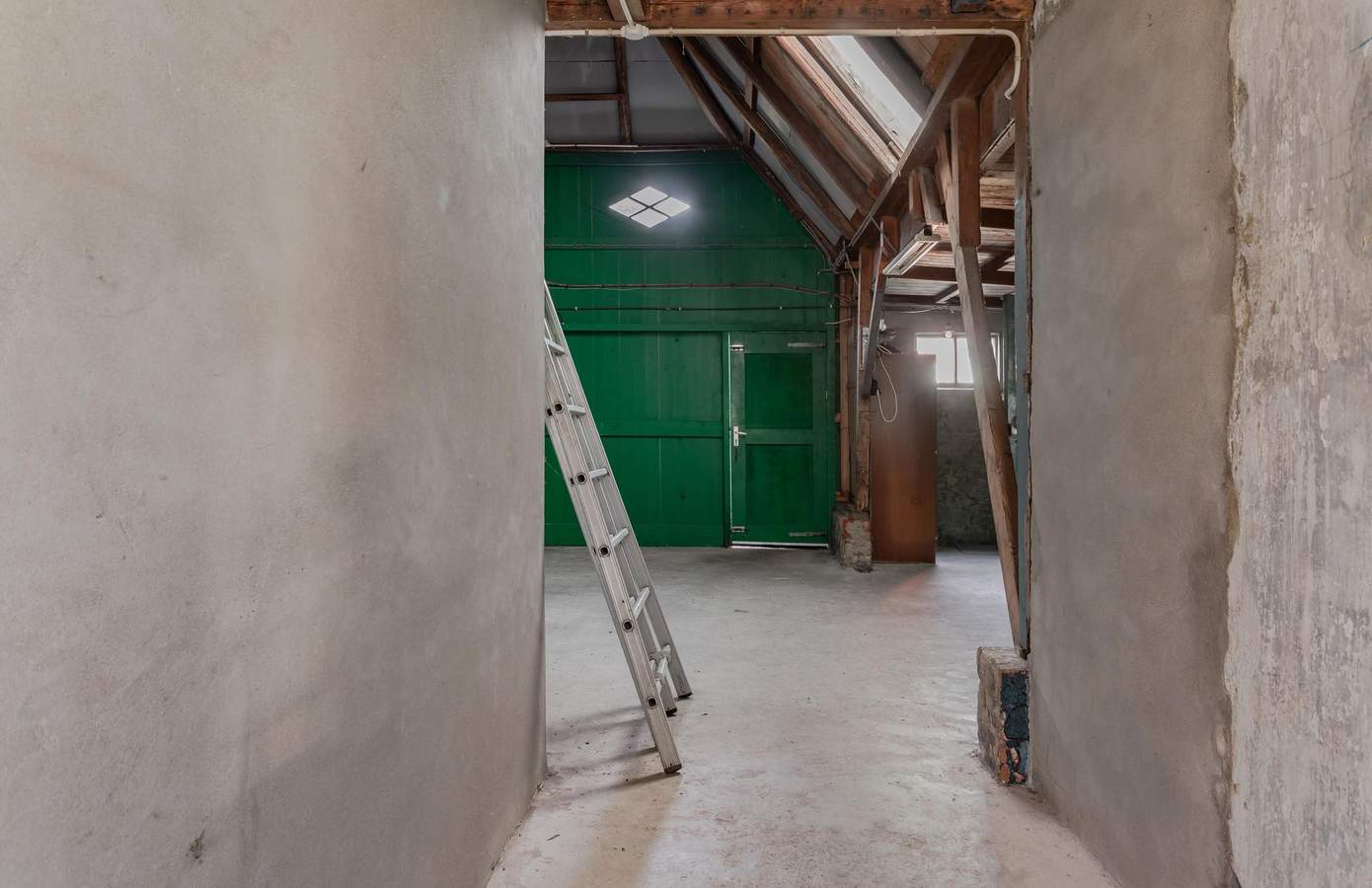 De uitzonderlijke netheid. Geen druppel olie op de grond, geen spinnenwebben aan het plafond – alles is tot in de puntjes verzorgd. Een droom voor de klusser, hobbyist of liefhebber die ruimte zoekt voor een eigen werkplaats.