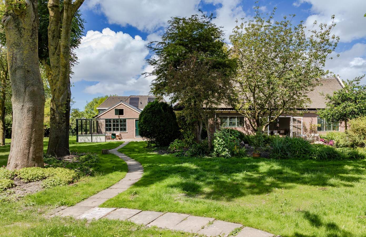 Volledig wonen op de begane grond met vier slaapkamers, een badkamer en een (voormalige) garage verbouwd tot kantoor. Daarbij nog een praktisch bijgebouw en een fantastische tuin.