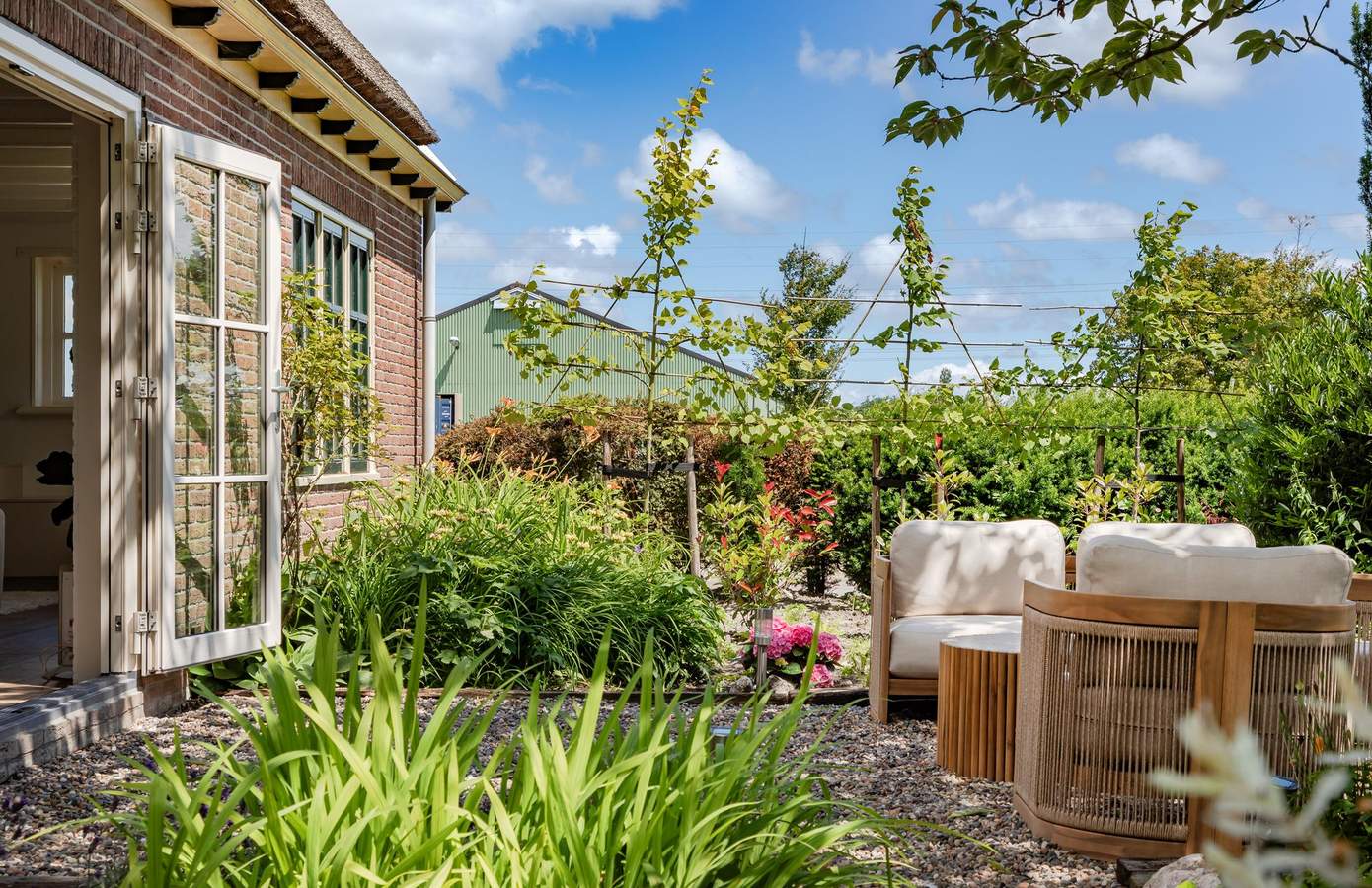 komt uit 2023 en is van vele gemakken voorzien. De openstaande deuren staan de hele dag open, de connectie met buiten is hierdoor heerlijk. Op de verdieping treft u een grote open ruimte van maar liefst 150 m². Hier kunnen uw dromen nog verwezenlijkt worden.