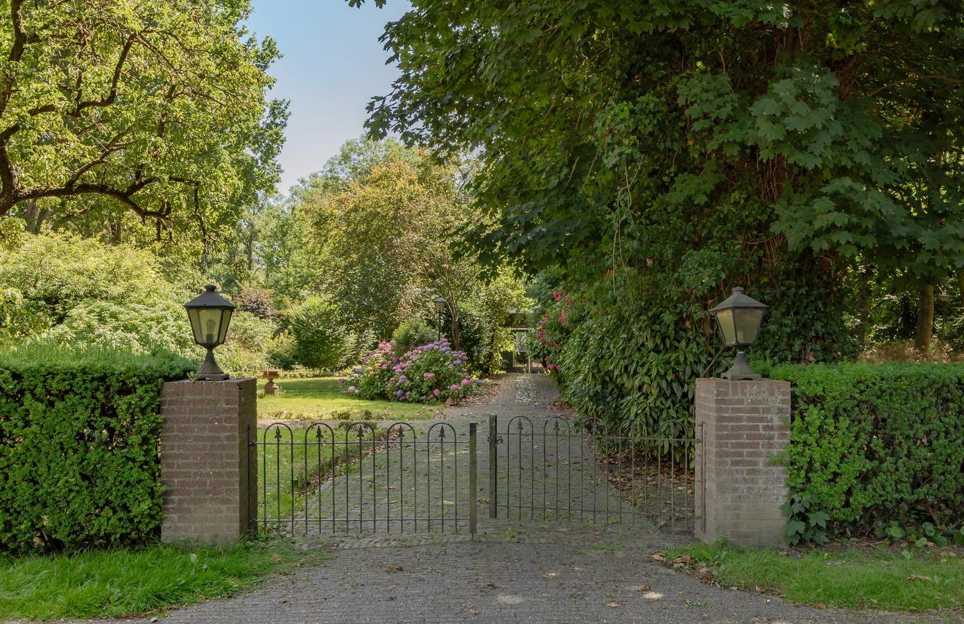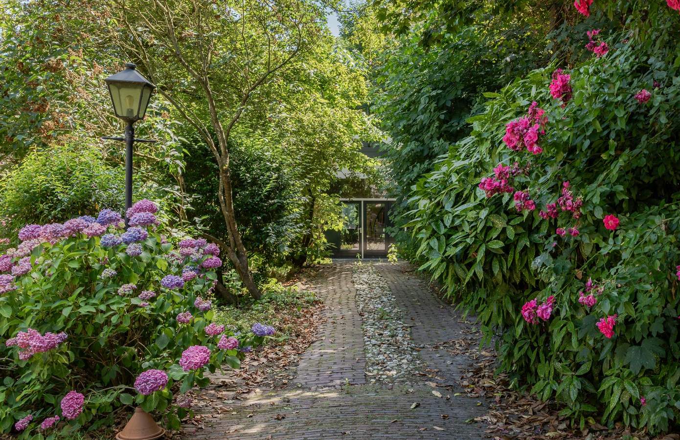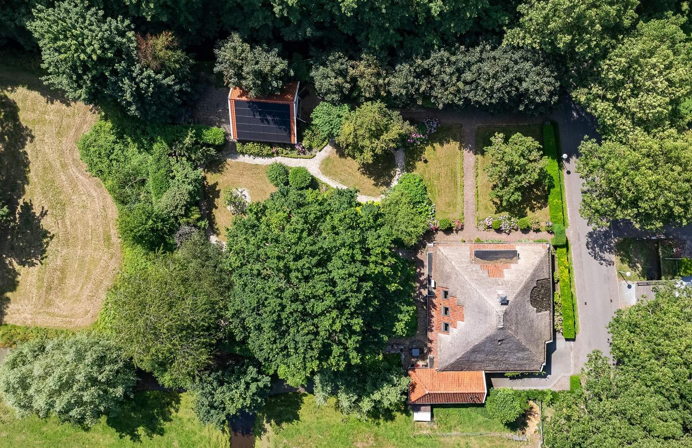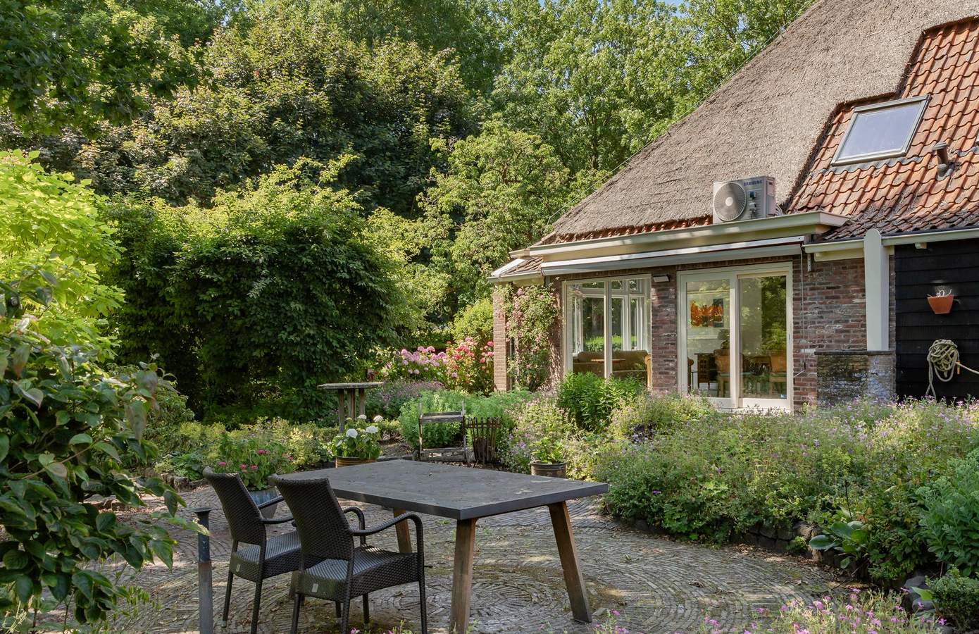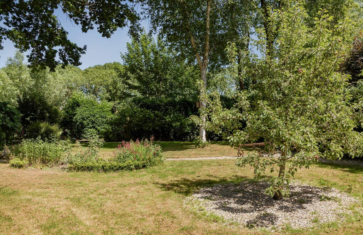 Rondom de boerderij ligt een schitterend aangelegde en goed onderhouden tuin. U waant zich in een park vol oude bomen, rozen, hortensiastruiken, kleurrijke borders en een diversiteit aan beplanting die het hele jaar door voor een sfeervol en levendig beeld zorgt. Meerdere terrassen, slim geplaatst op verschillende plekken in de tuin, maken het mogelijk om op elk moment van de dag van de zon of juist de schaduw te genieten, terwijl u uitkijkt over het groen en de vogels hoort fluiten. De verrassend diepe tuin grenst direct aan een park, waardoor de natuur letterlijk in uw achtertuin begint en het gevoel van vrijheid en ruimte versterkt.