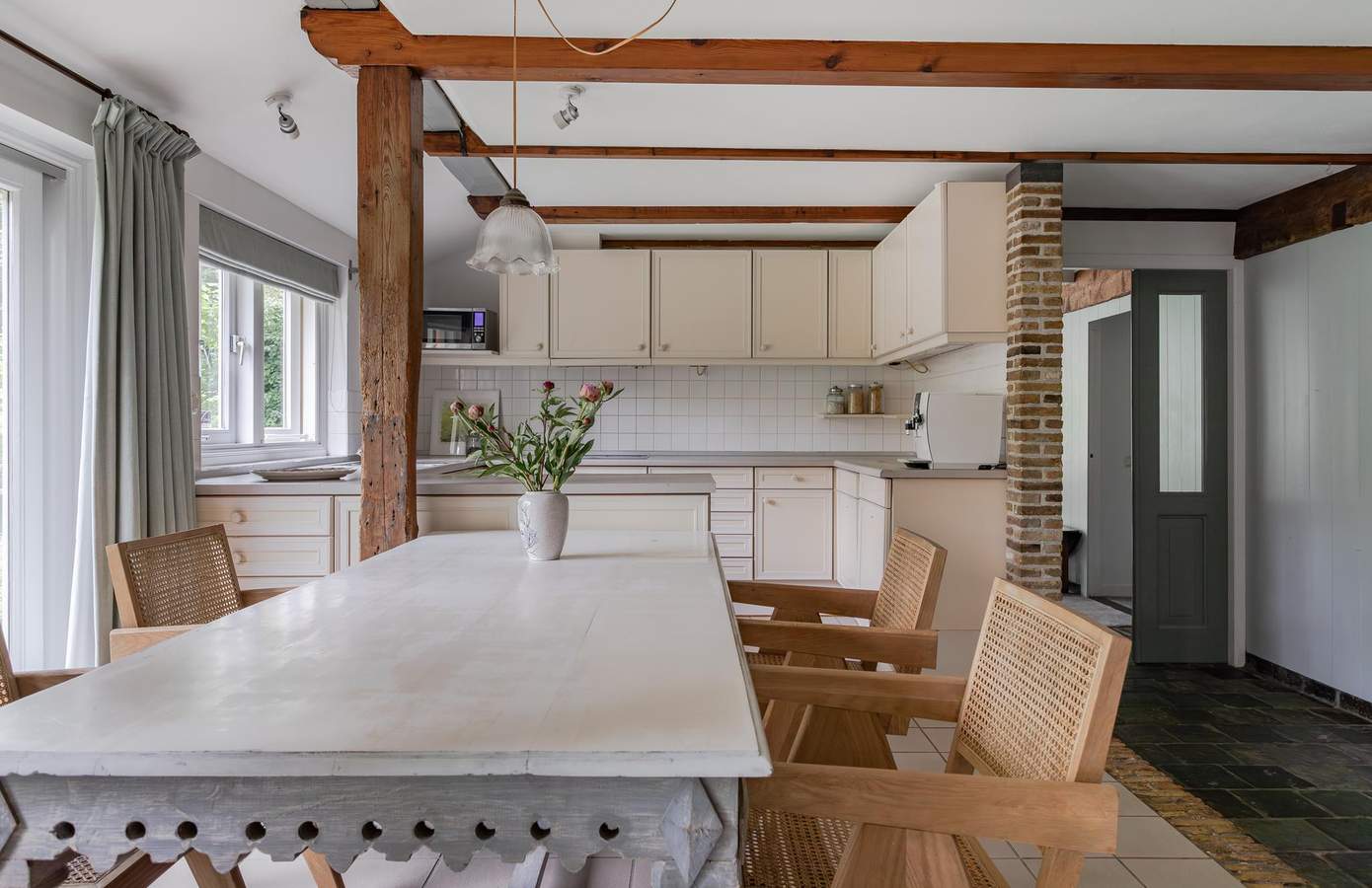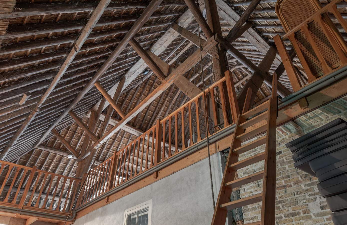 Leuk detail, zijn de subtiele slijtageplekken aan de houten pilaren in de keuken: stille getuigen van de koeien die hier vroeger hun flanken zacht tegenaan schuurden, waardoor een klein stukje boerenleven van toen zichtbaar is gebleven. Het zijn precies dit soort details die deze boerderij zo bijzonder maken – kleine verhalen uit het verleden, zichtbaar gebleven in het hout en voelbaar in de sfeer van het huis.