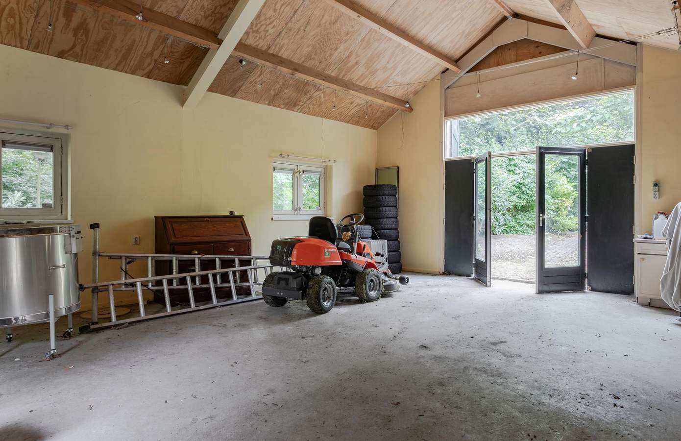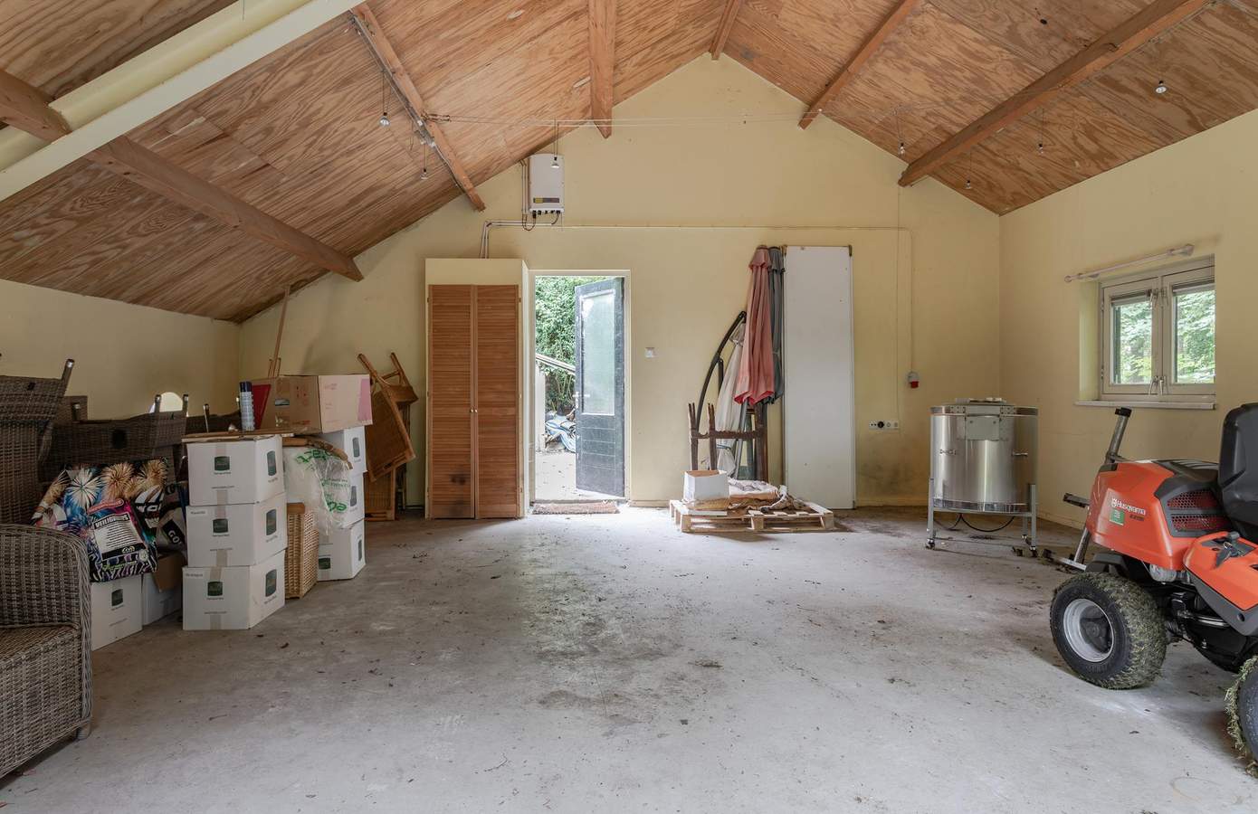Via de oprijlaan bereikt u het multifunctionele en solide bijgebouw van 61 m², dat volledig is voorzien van water, elektra en isolatie. Dit bijgebouw is perfect te gebruiken als atelier, kantoor, gastenverblijf of praktijkruimte aan huis, waardoor het u veel flexibiliteit biedt om wonen en werken op één locatie te combineren.