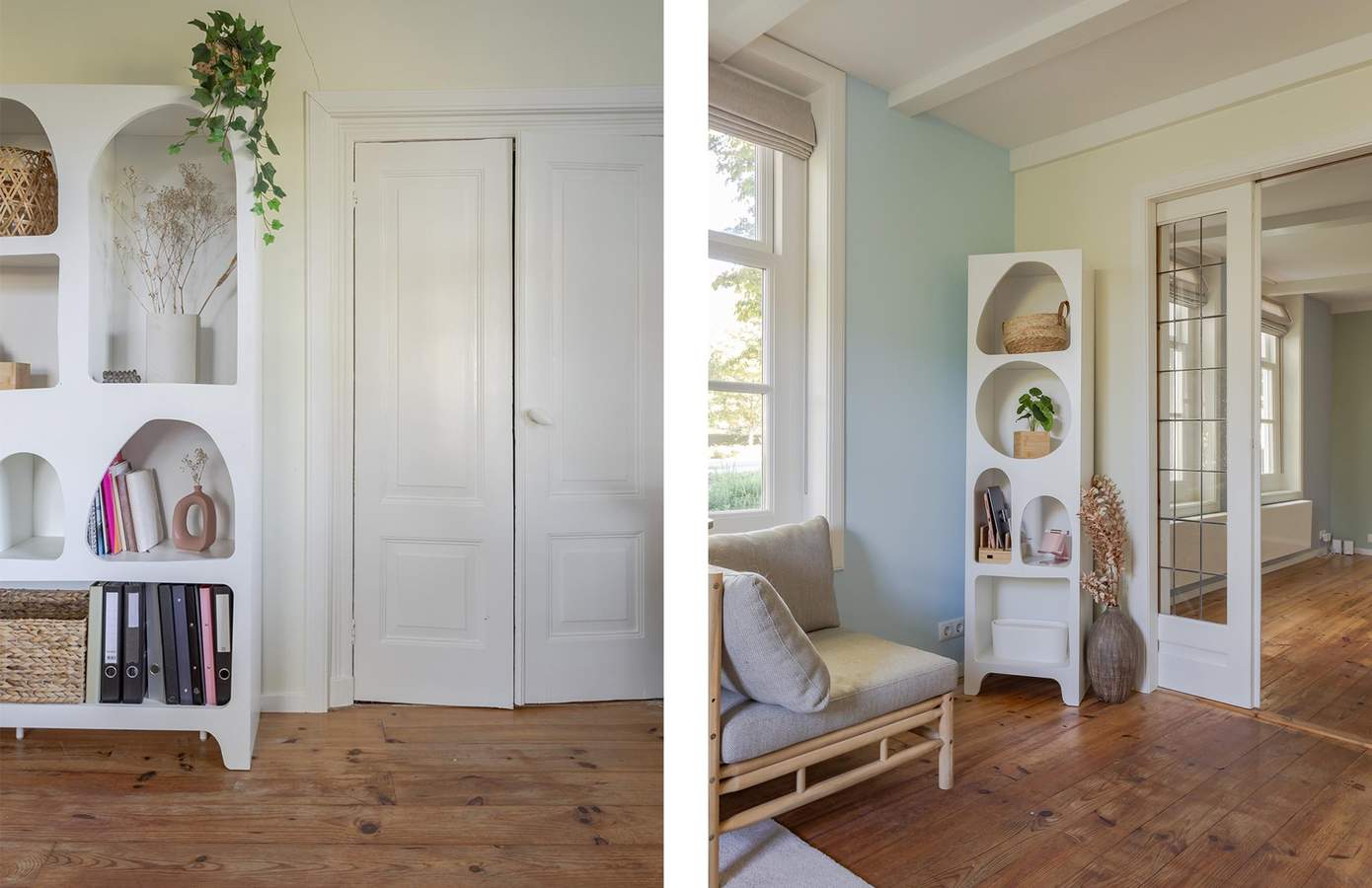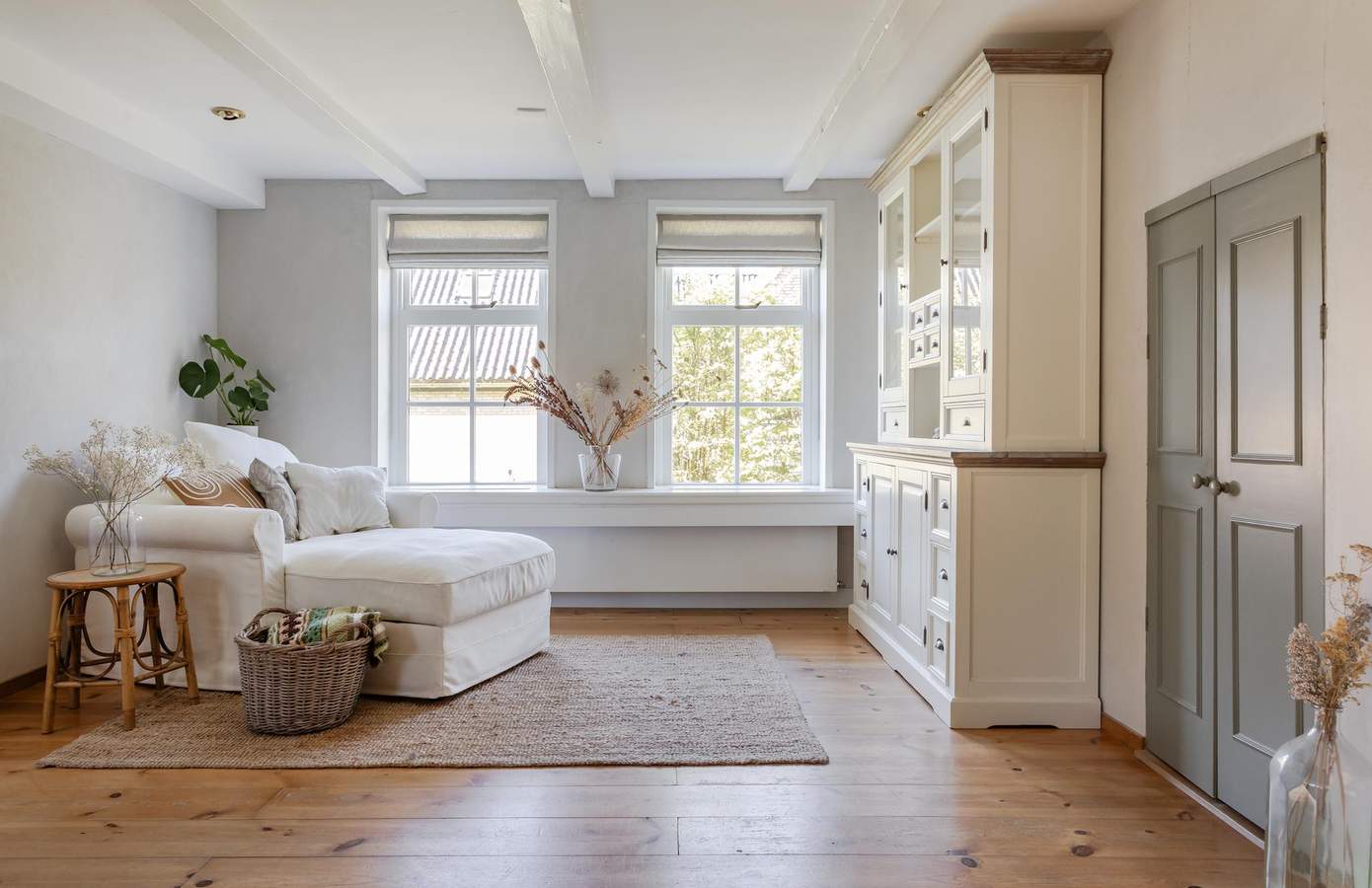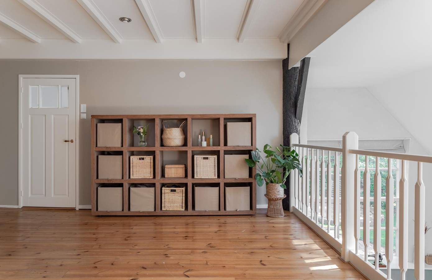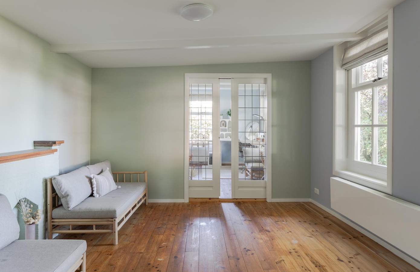 Bij het betreden van de woonkamer wordt u verwelkomd door een schat aan bijzondere details die de ruimte een uniek karakter geven. Grote ramen domineren de kamer, waardoor er overvloedig natuurlijk licht naar binnen valt en een gevoel van ruimte en lichtheid creëert. Deze ramen bieden bovendien een prachtig uitzicht op de tuin. In 2022 is het rookkanaal geheel vernieuwd, hierdoor is er de mogelijkheid om een houtkachel in zowel de woonkamer als de voorkamer te installeren. Een opvallend kenmerk van de woonkamer is de bedstee, die momenteel dienst doet als bergruimte. Nog een opvallend detail zijn de authentieke vierkantspalen die prachtig in het zicht zijn gebleven. Zij geven de ruimte bijzonder veel sfeer. Met klassieke en stijlvolle details is de keuken de perfecte omgeving om te koken, waarbij dit dagelijkse ritueel verandert in een hobby. De woonkamer heeft een hoog plafond dat open is naar de overloop op de eerste verdieping, waardoor een gevoel van ruimtelijkheid en verbondenheid ontstaat tussen de verschillende niveaus van het huis. Naast de woonkamer bevindt zich de wasruimte, wat zorgt voor extra gemak en functionaliteit. Aan de voorzijde van de woning vindt u twee ruimtes, waarvan er één momenteel wordt gebruikt als kantoor, waardoor er mogelijkheden zijn voor werk of studie vanuit huis. De eerste verdieping telt drie royale slaapkamers en twee badkamers. De tweede verdieping is een nette ruimte welke veel mogelijkheden heeft. Het is zelfs mogelijk om hier twee extra slaapkamers te creëren. Aan ruimte niet te kort in deze woning!