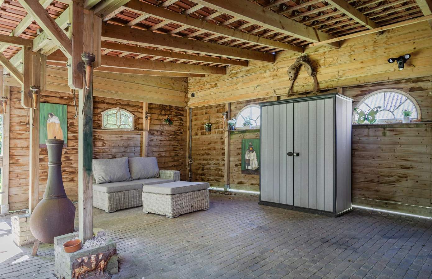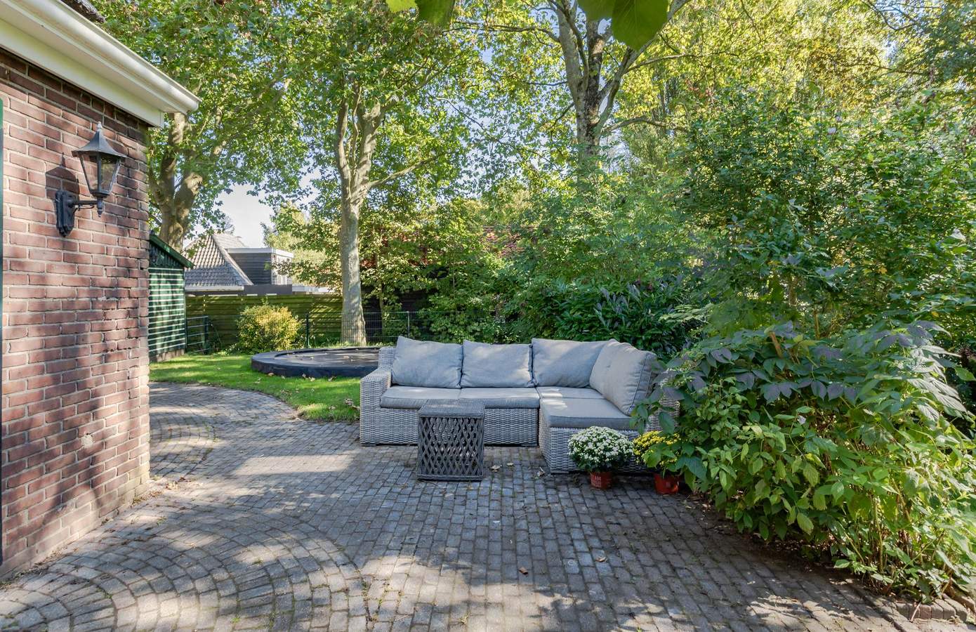 De achtertuin is een ware oase van rust. Alle seizoen zijn hier mooi! Met een overkapping welke is voorzien van een buitenkeuken is het hier op zomerse dagen heerlijk vertoeven. Met een speeltoestel en trampoline is het ook voor de kinderen een waar paradijs. Aan de zijkant van de tuin heeft u de mogelijkheid om uw eigen boot neer te leggen en daarmee een rondje te varen. De tuin is voorzien van een kleine schuur welke nu dient als berging. De schuur is voorzien van een dubbele deur, waardoor u hier grotere spullen zou kunnen opbergen.